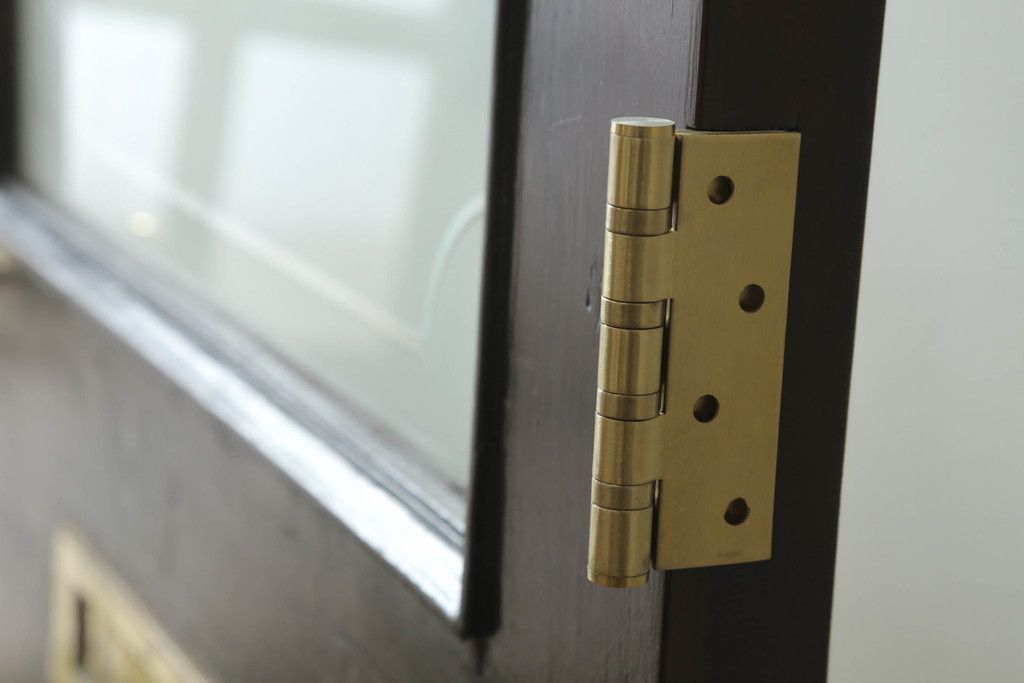 ペイントドアをリペア&カスタム!設置場所に合わせて仕様を変更し、戸枠を新たに製作。表面は茶色・裏面は白でペイント仕上げ。エッチングガラス、彫刻ガラス、切子ガラス、英国、玄関ドア、玄関扉、建具)