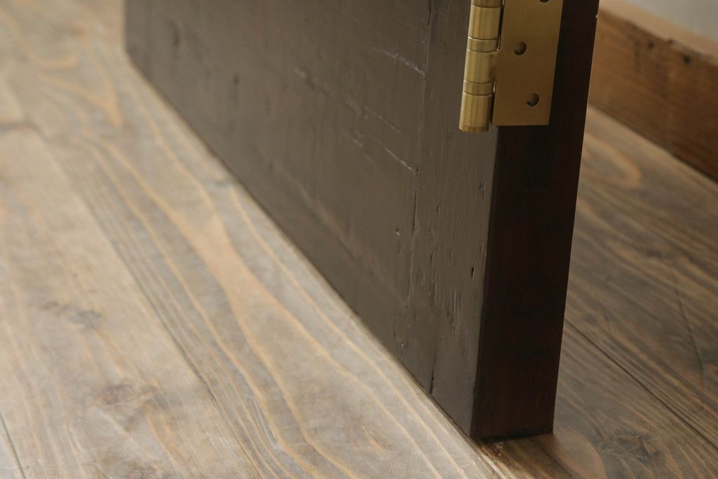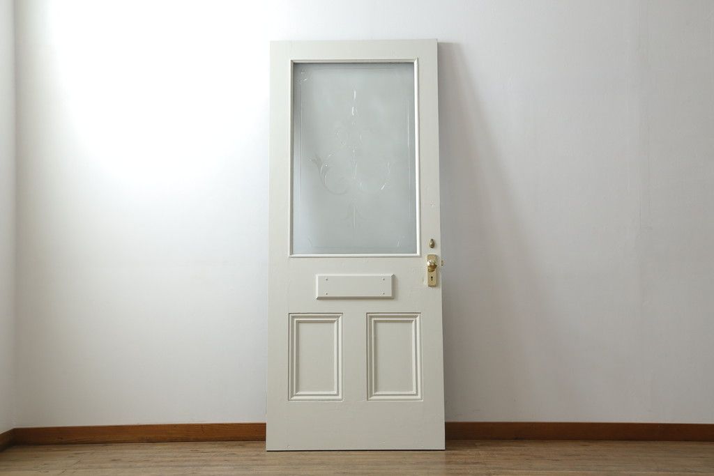 ドア・建具> ドア・扉 > ペイントドアをリペア&カスタム!設置場所に合わせて仕様を変更し、戸枠を新たに製作。表面は茶色・裏面は白でペイント仕上げ。エッチングガラス、彫刻ガラス、切子ガラス、英国、玄関ドア、玄関扉、建具)