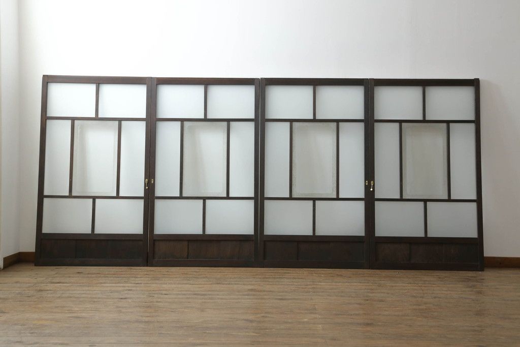 ドア・建具> 4枚〜セット > 昭和初期のガラス窓の見た目を変えずに綺麗にリペア!元の色味を活かした着色仕上げ。(引き戸、ガラス戸、建具)
