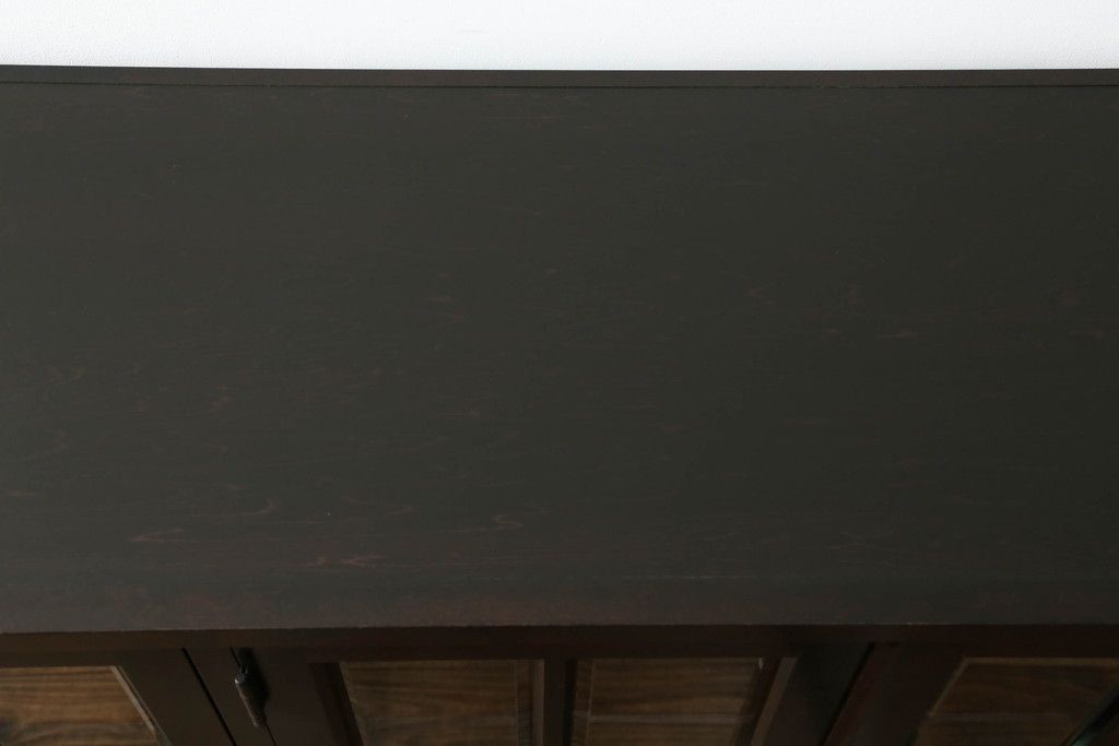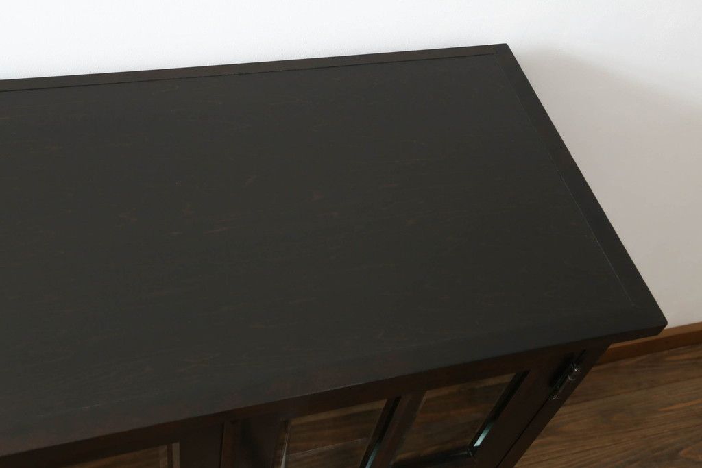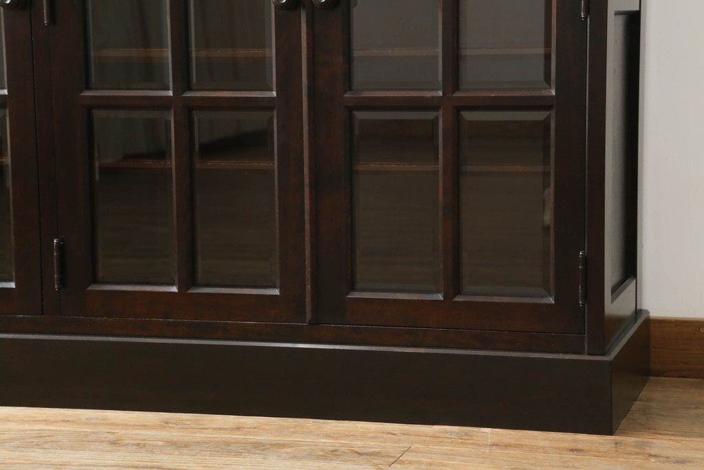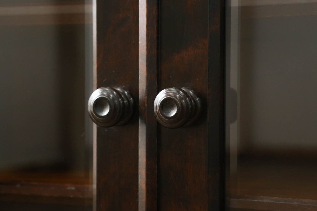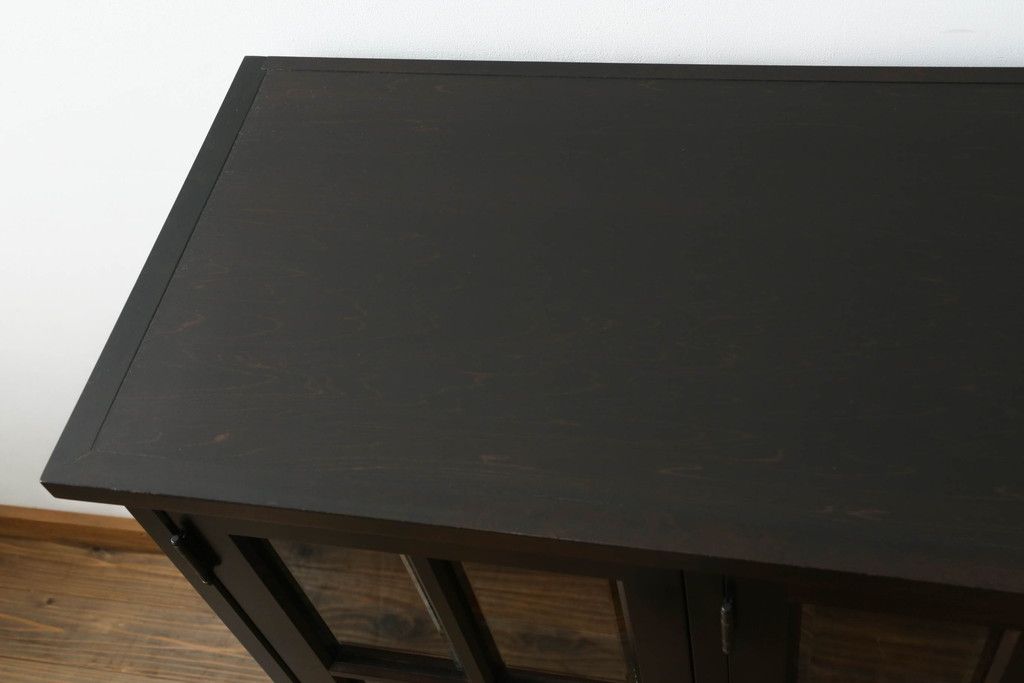 キャビネット・戸棚> 食器棚・カップボード > 北海道民芸家具のキャビネットをリペア&カスタム!高品質リペアを施し、新たに台輪を取り付け。1トーン落ち着いた色味に着色仕上げ。(食器棚、飾り棚、収納棚、本箱、ブックケース、サイドボード、サイドキャビネット)