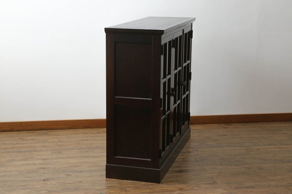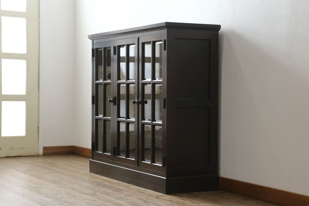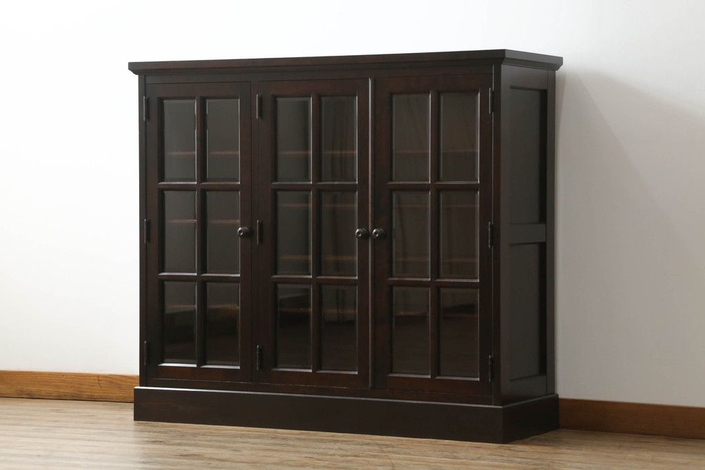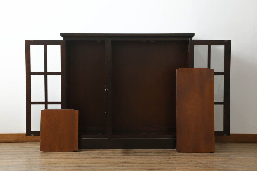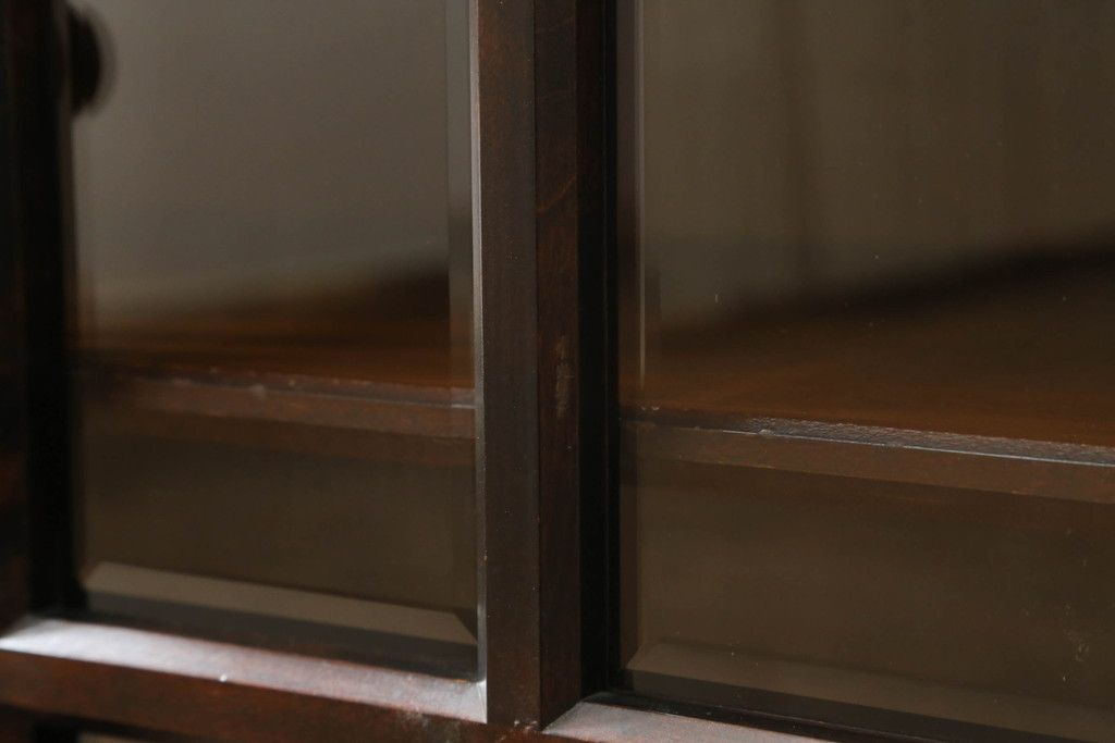キャビネット・戸棚> 食器棚・カップボード > 北海道民芸家具のキャビネットをリペア&カスタム!高品質リペアを施し、新たに台輪を取り付け。1トーン落ち着いた色味に着色仕上げ。(食器棚、飾り棚、収納棚、本箱、ブックケース、サイドボード、サイドキャビネット)