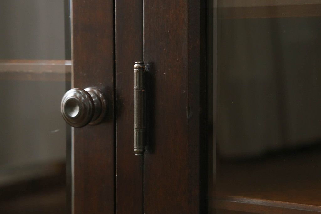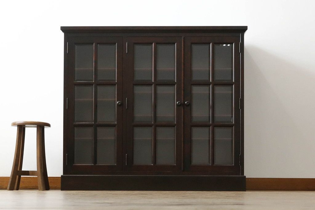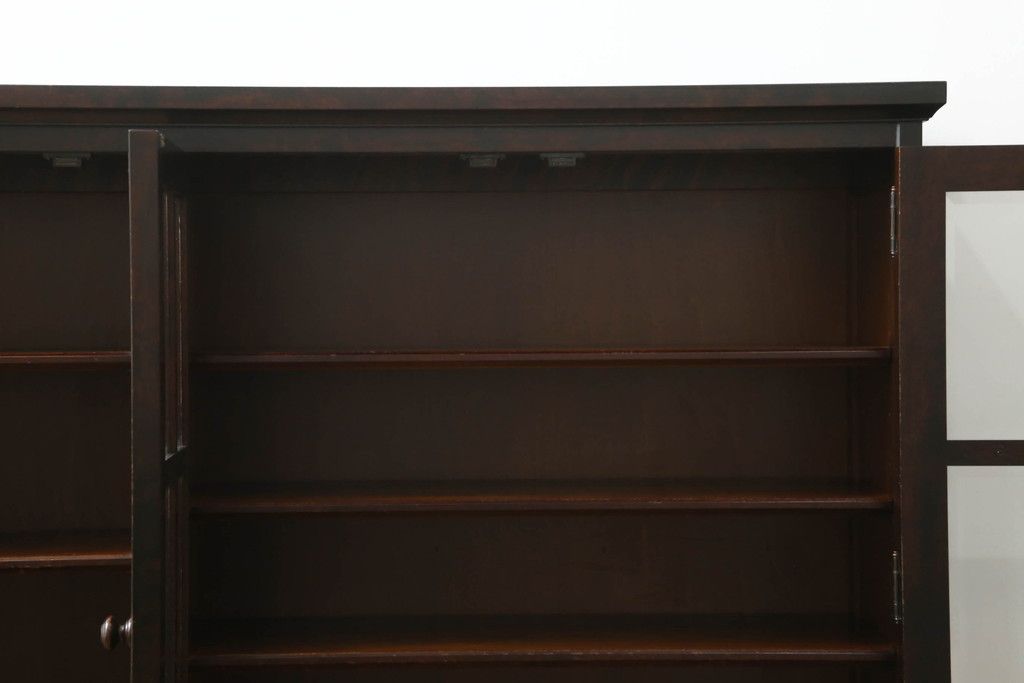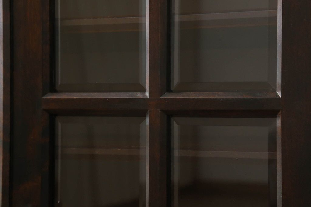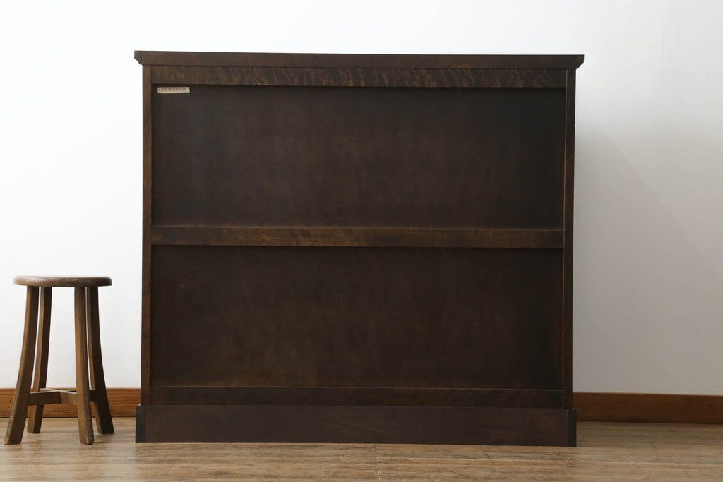 キャビネット・戸棚> 本箱 > 北海道民芸家具のキャビネットをリペア&カスタム!高品質リペアを施し、新たに台輪を取り付け。1トーン落ち着いた色味に着色仕上げ。(食器棚、飾り棚、収納棚、本箱、ブックケース、サイドボード、サイドキャビネット)