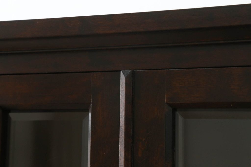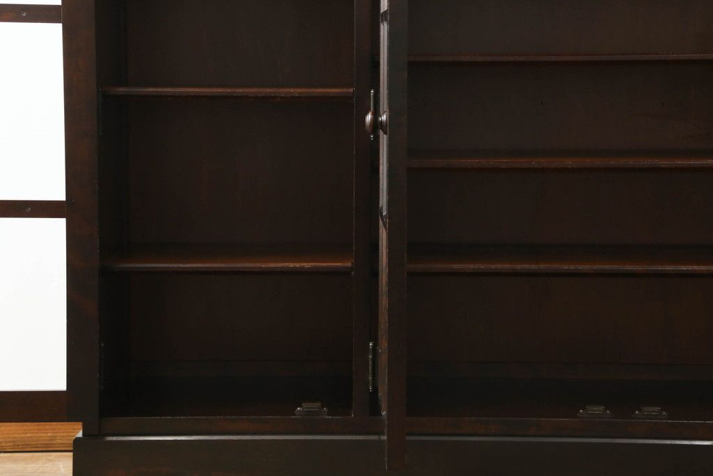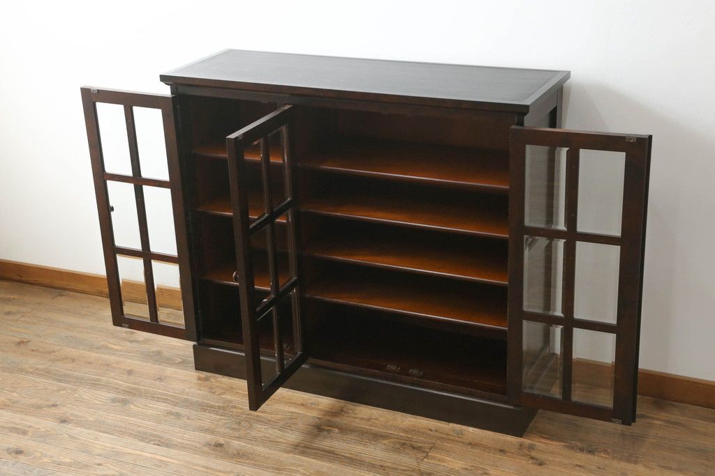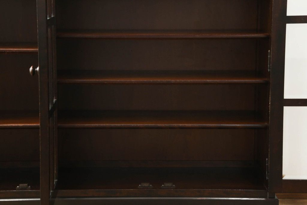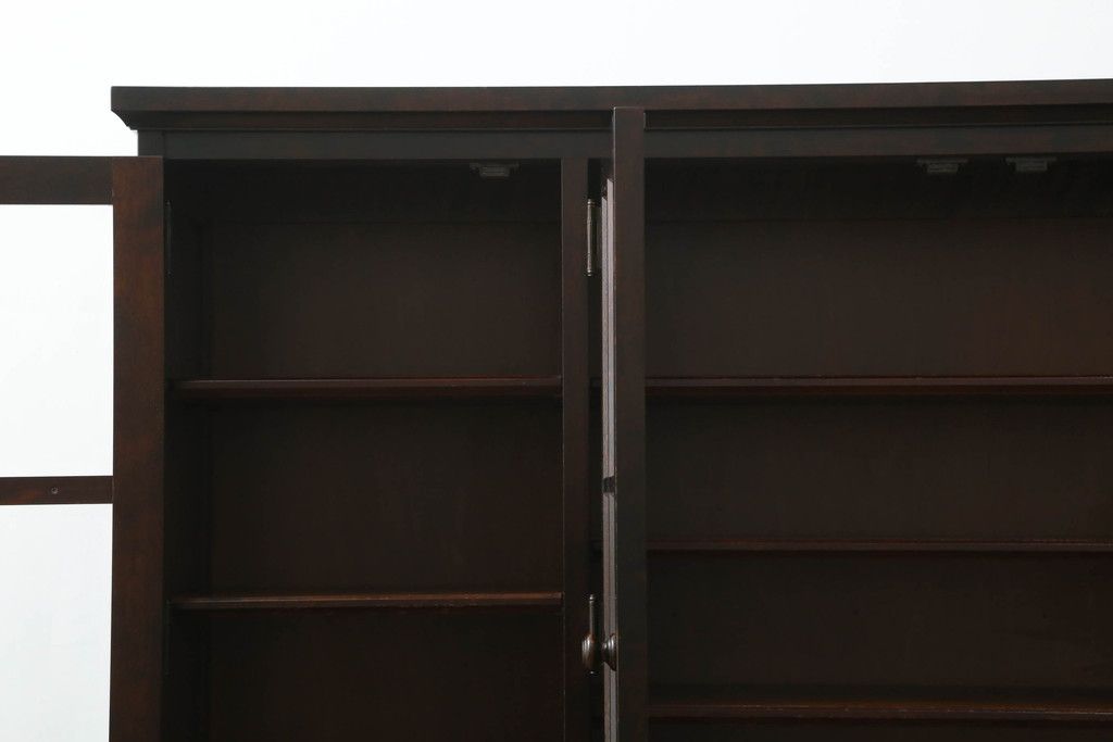 キャビネット・戸棚> 本箱 > 北海道民芸家具のキャビネットをリペア&カスタム!高品質リペアを施し、新たに台輪を取り付け。1トーン落ち着いた色味に着色仕上げ。(食器棚、飾り棚、収納棚、本箱、ブックケース、サイドボード、サイドキャビネット)