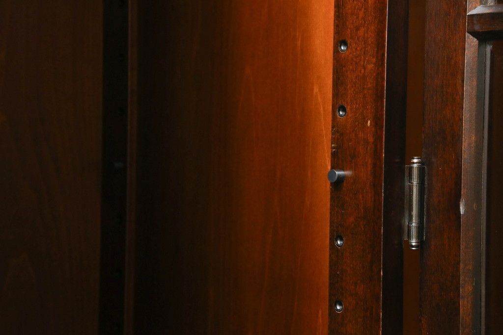 北海道民芸家具のキャビネットをリペア&カスタム!高品質リペアを施し、新たに台輪を取り付け。1トーン落ち着いた色味に着色仕上げ。(食器棚、飾り棚、収納棚、本箱、ブックケース、サイドボード、サイドキャビネット)