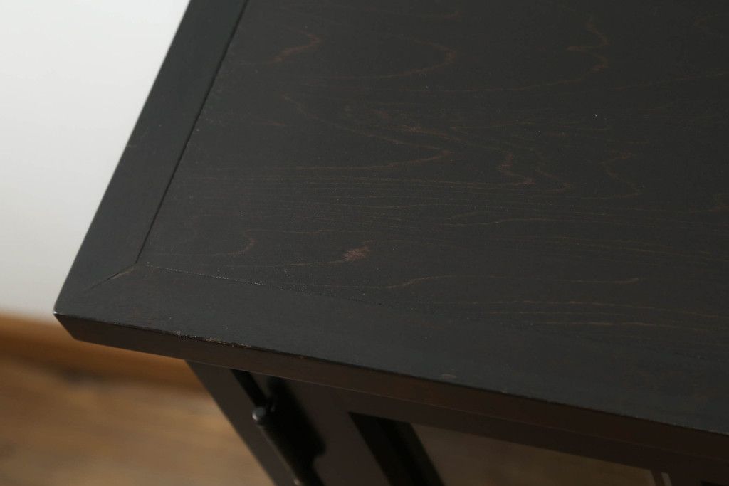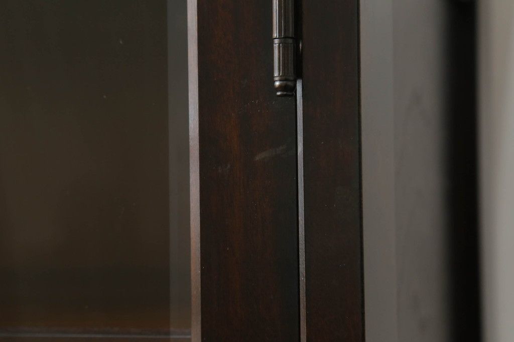 民芸家具 > 北海道民芸家具のキャビネットをリペア&カスタム!高品質リペアを施し、新たに台輪を取り付け。1トーン落ち着いた色味に着色仕上げ。(食器棚、飾り棚、収納棚、本箱、ブックケース、サイドボード、サイドキャビネット)