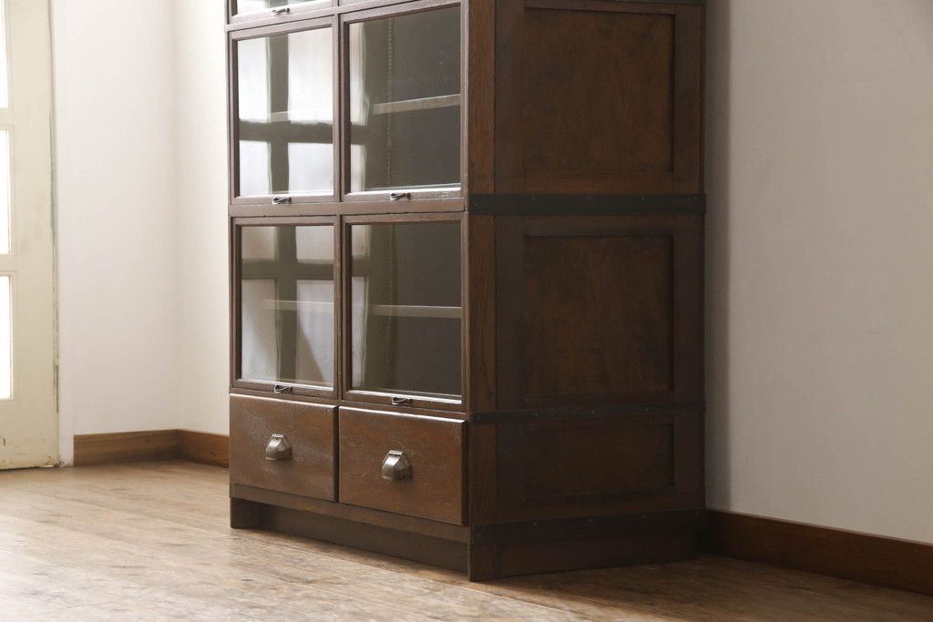 スタッキングシャツケースをリペア&カスタム!高品質リペアを施し、茶色で着色仕上げ。本体と合わせたデザインのお盆を新規製作。(キャビネット、収納棚、戸棚、引き出し、店舗什器)