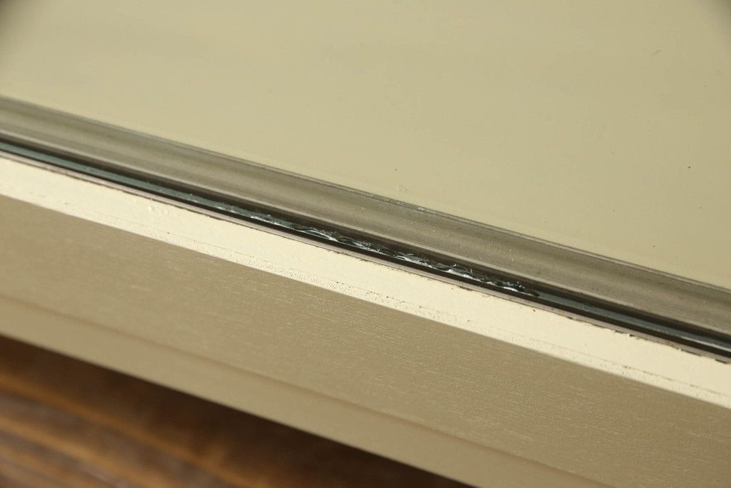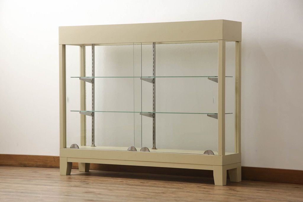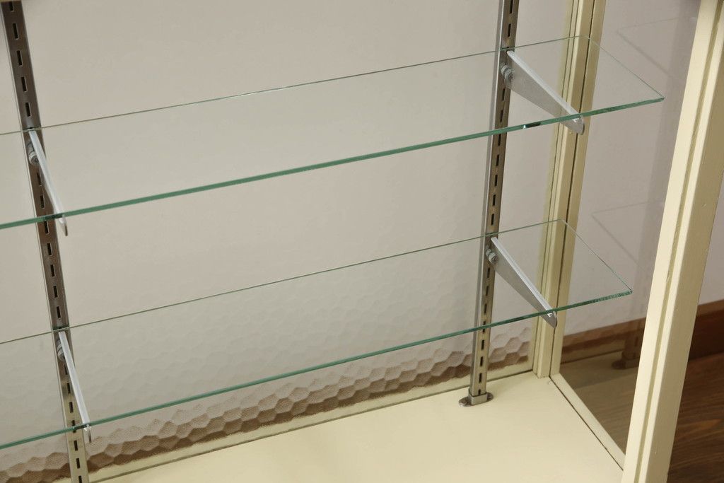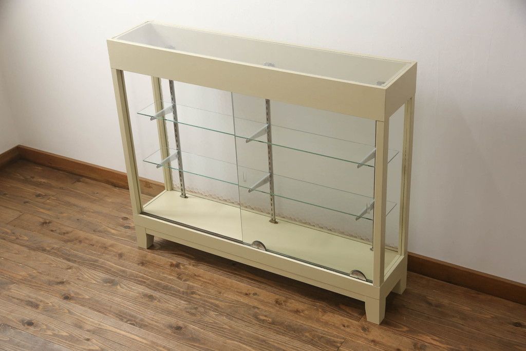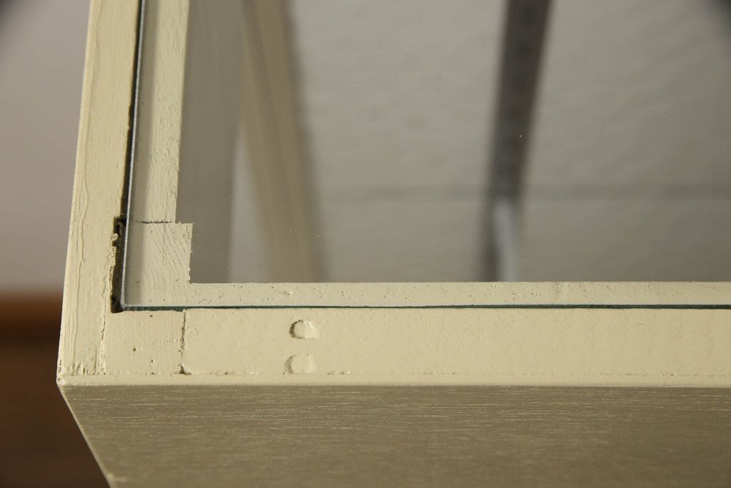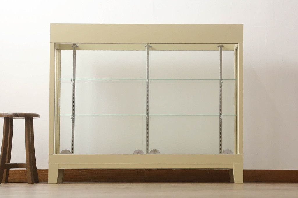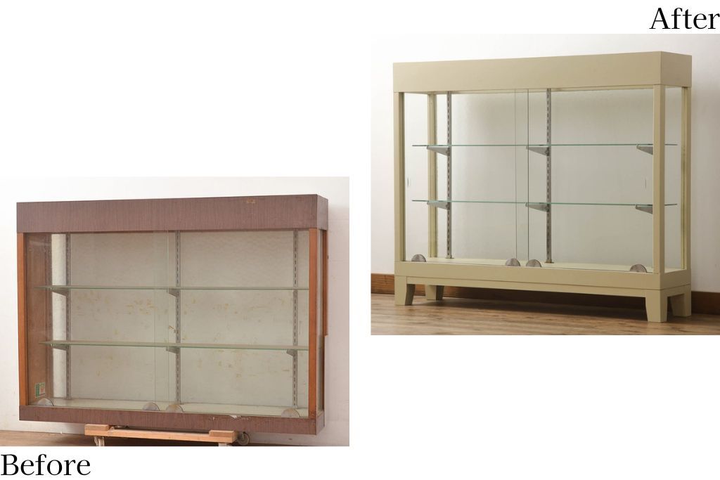ガラスケース・ショーケース > ガラスケースをリペア&カスタム!天板と側面板をクリアガラスに変更し、木部はモカベージュでペイント仕上げ。(ショーケース、陳列棚、飾り棚、店舗什器)