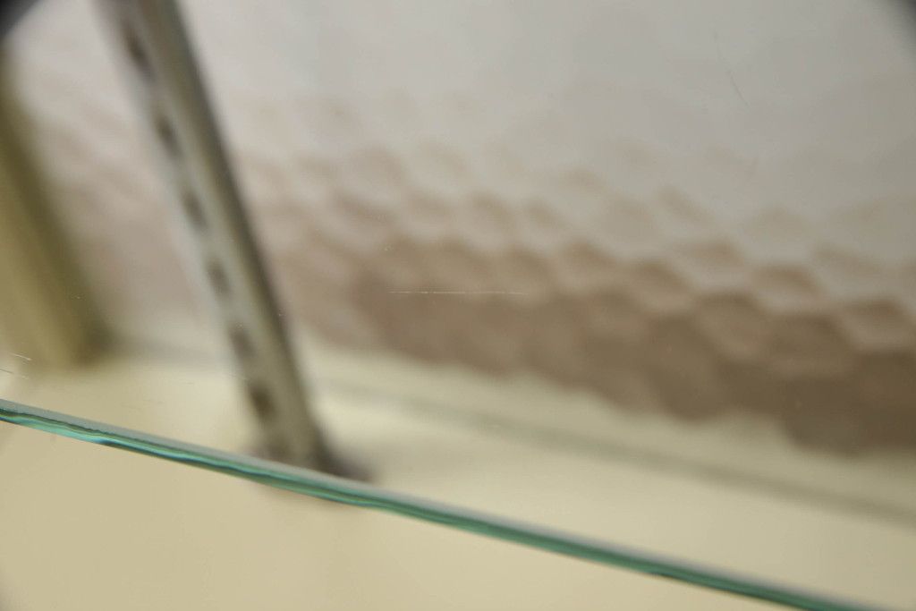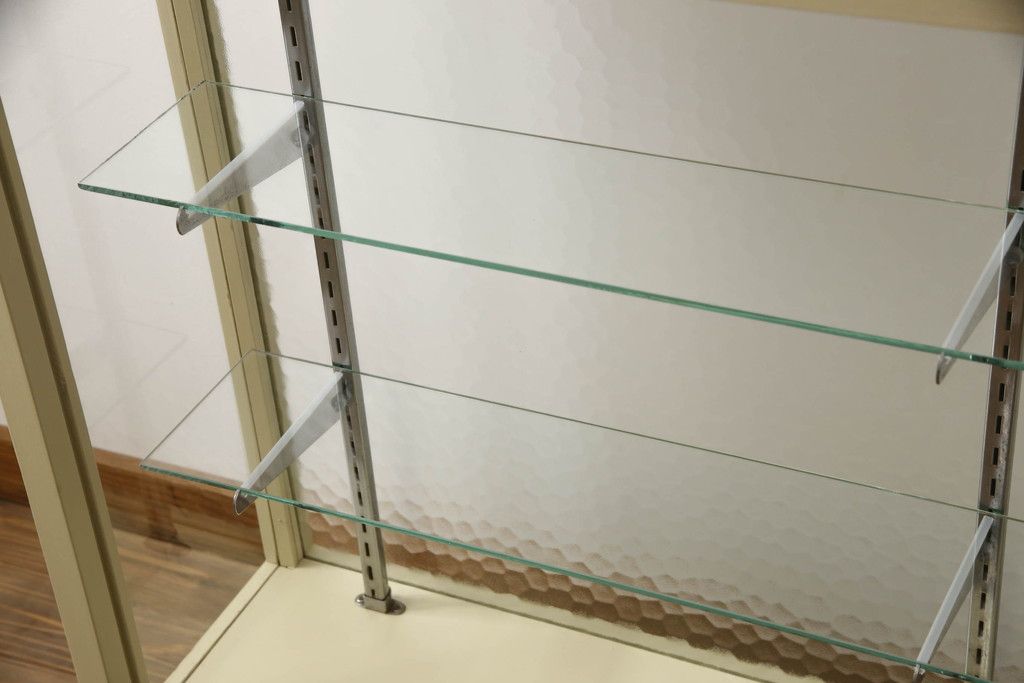 セミオーダー家具実績 > ガラスケースをリペア&カスタム!天板と側面板をクリアガラスに変更し、木部はモカベージュでペイント仕上げ。(ショーケース、陳列棚、飾り棚、店舗什器)