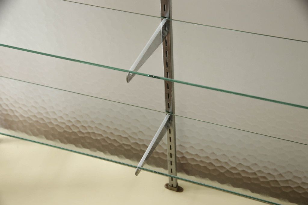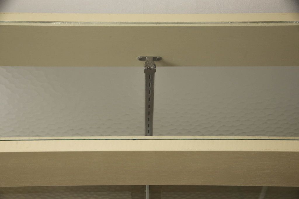 店舗什器 > ガラスケースをリペア&カスタム!天板と側面板をクリアガラスに変更し、木部はモカベージュでペイント仕上げ。(ショーケース、陳列棚、飾り棚、店舗什器)