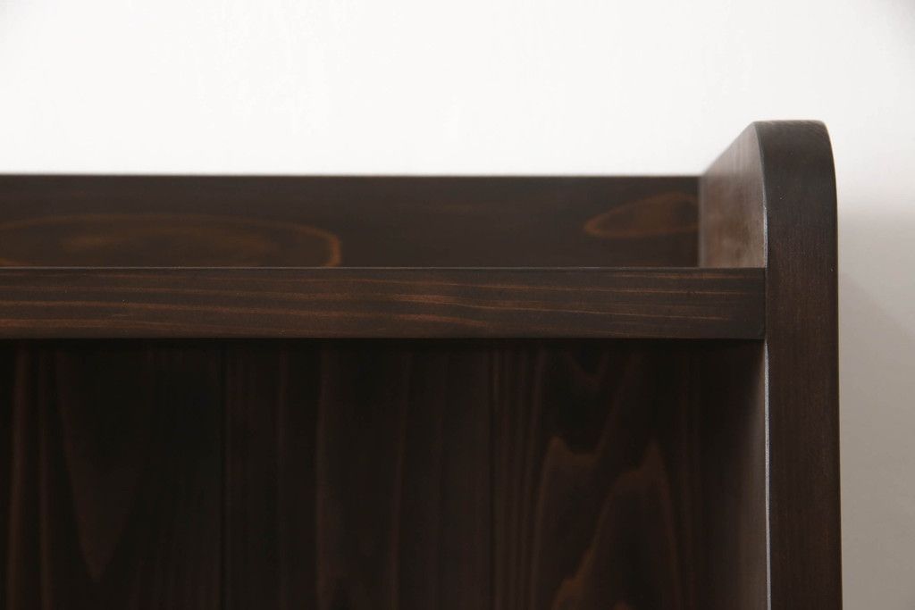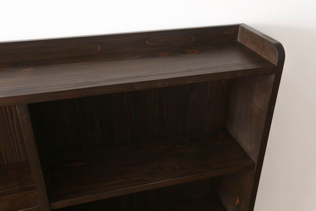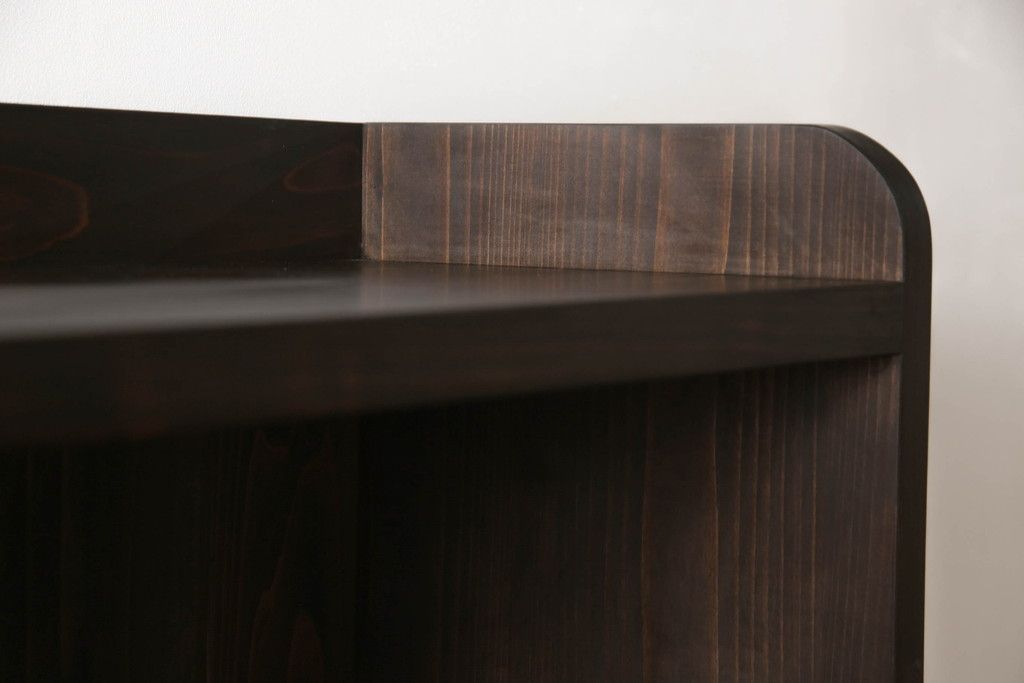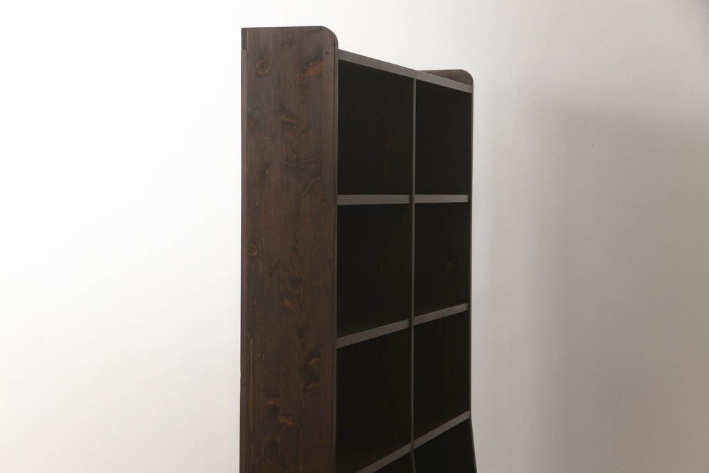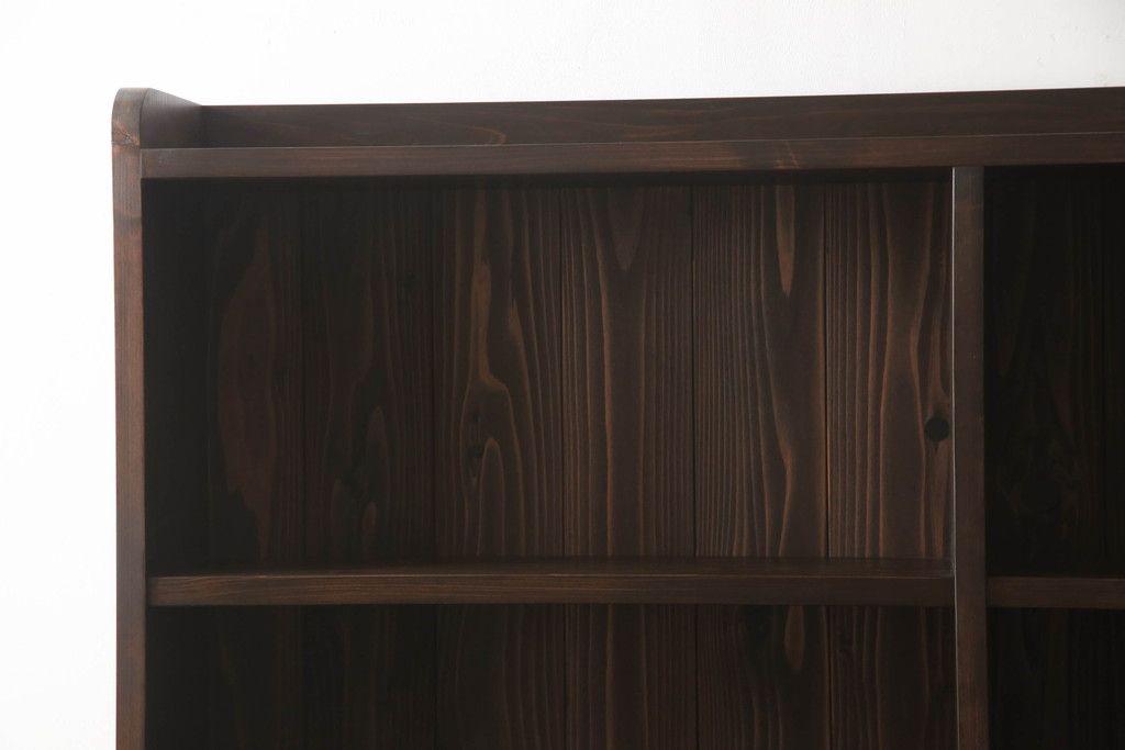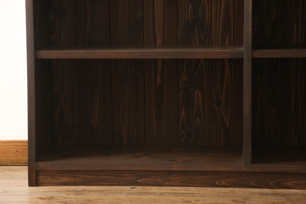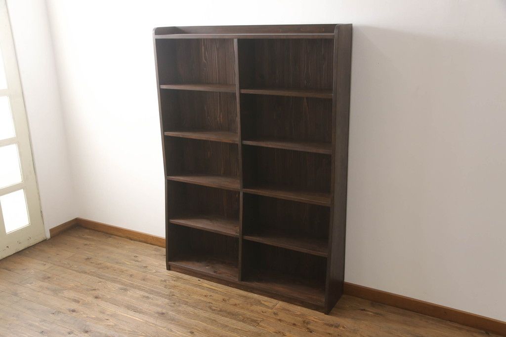 オープンラック・シェルフ> ディスプレイラック > 本棚を新規製作!希望のサイズ、棚5段のデザインで。背板側下方に巾木用の切り欠き加工を施し、当店商品を参考に着色。(ブックシェルフ、収納棚、ウッドシェルフ、オープンラック、飾り棚、陳列棚)
