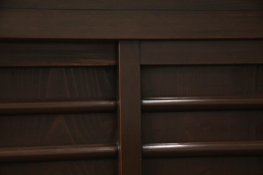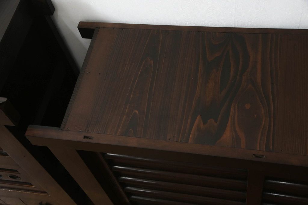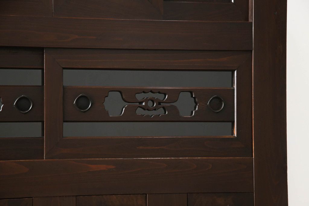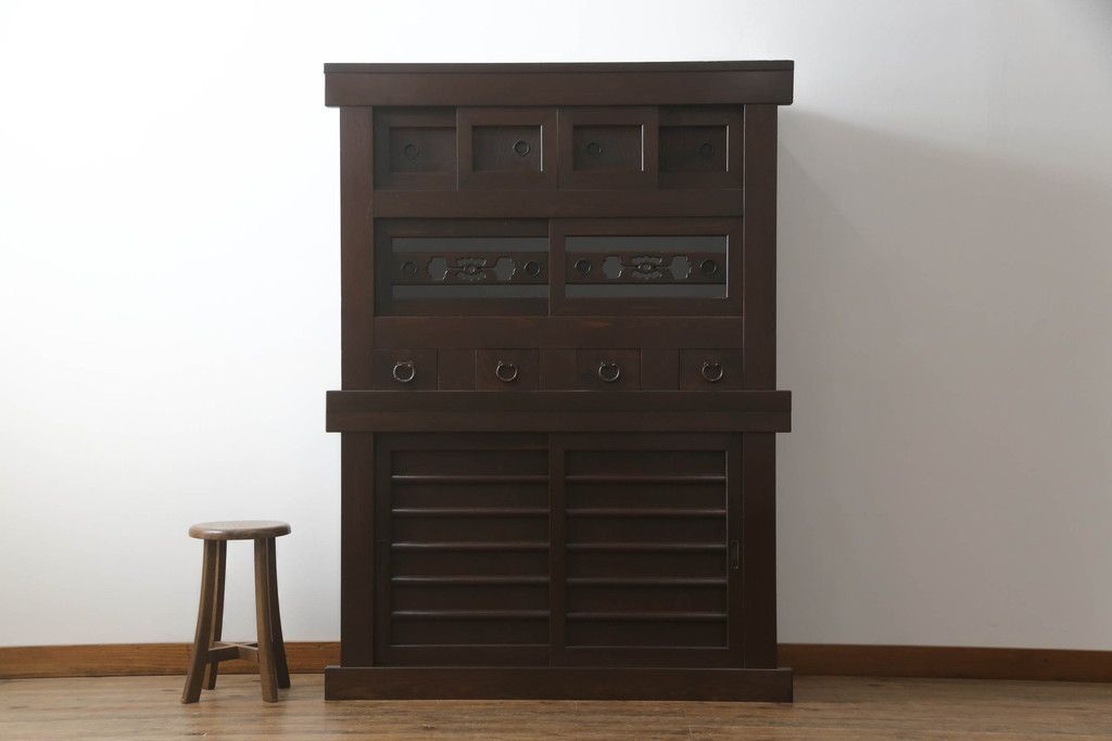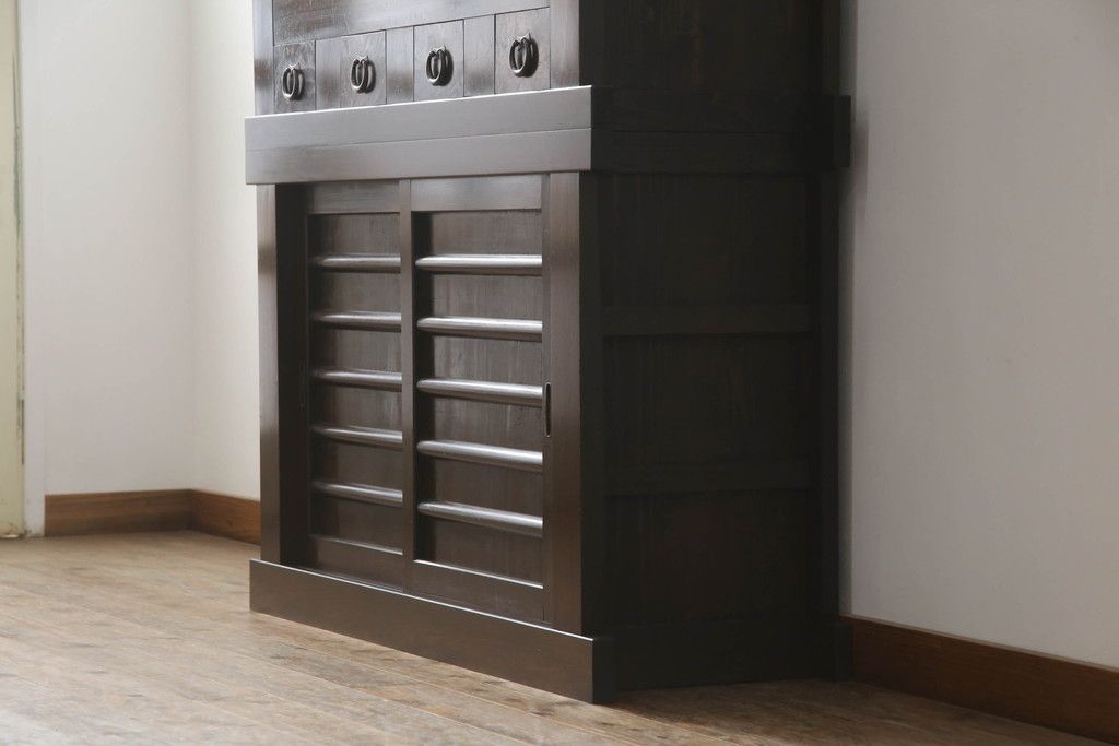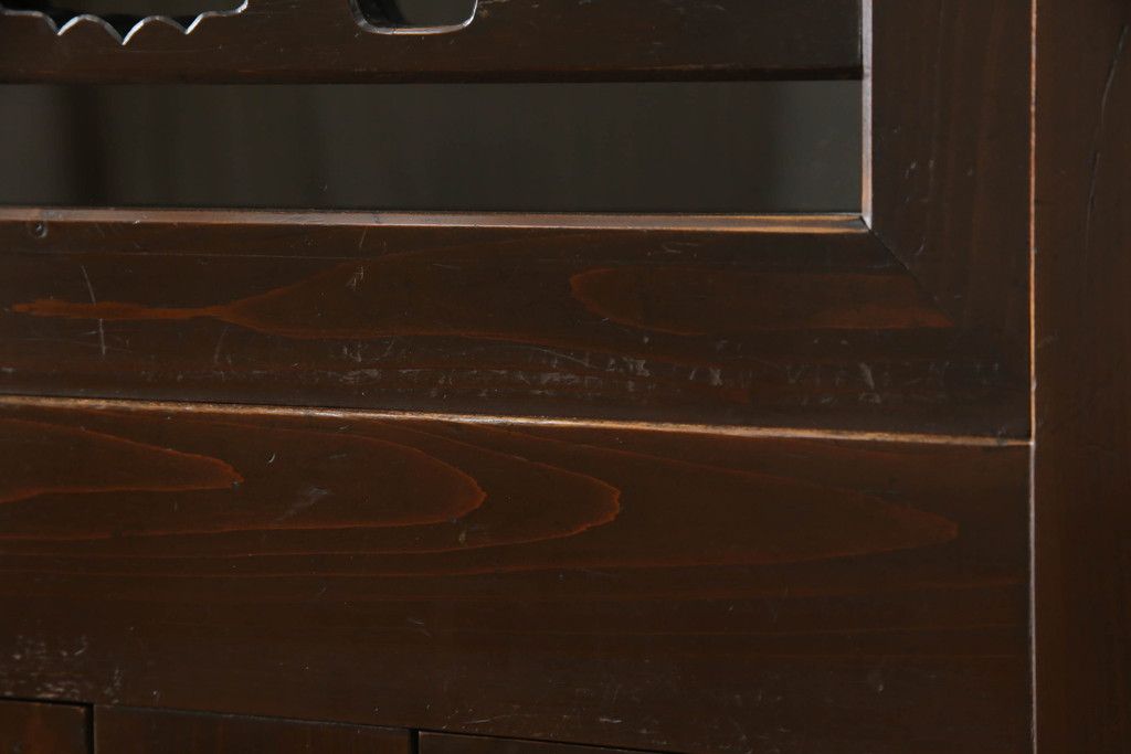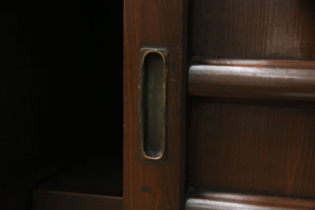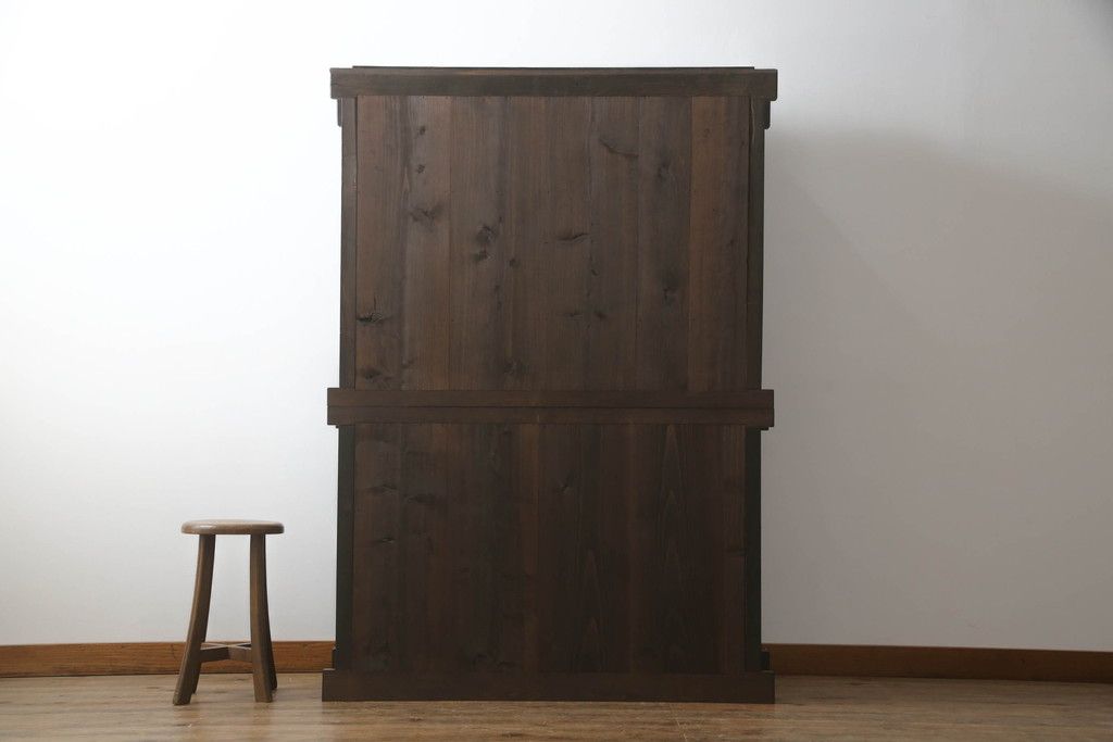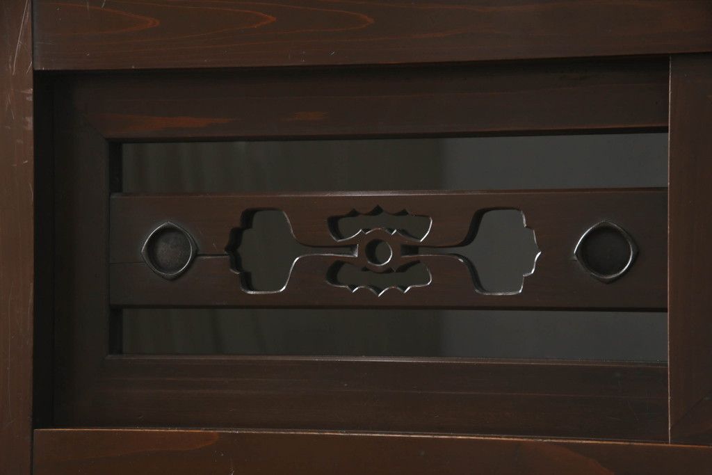 和箪笥> 水屋箪笥 > 水屋箪笥をリペア&カスタム!下段に棚板を製作し追加。網部分をクリアガラスに変更。1トーン落ち着いた色味に着色仕上げ。(キャビネット、食器棚、収納棚、戸棚)