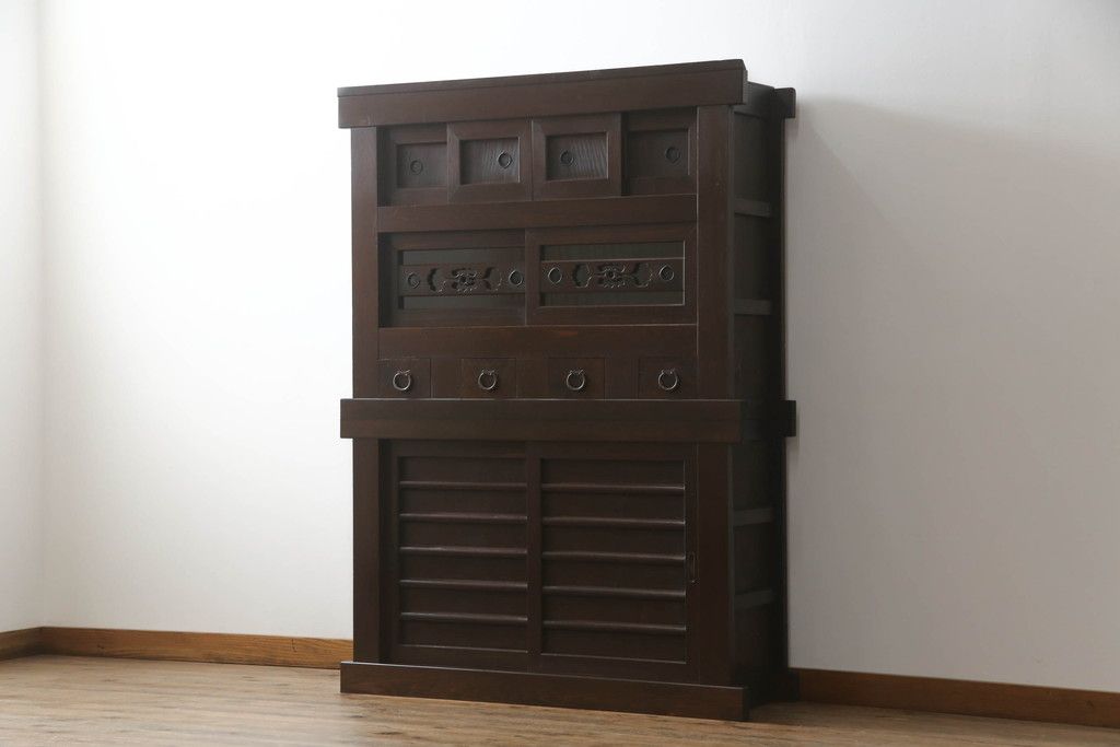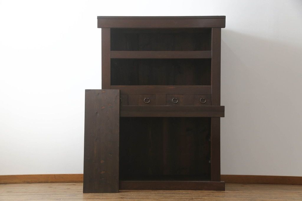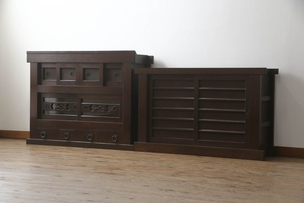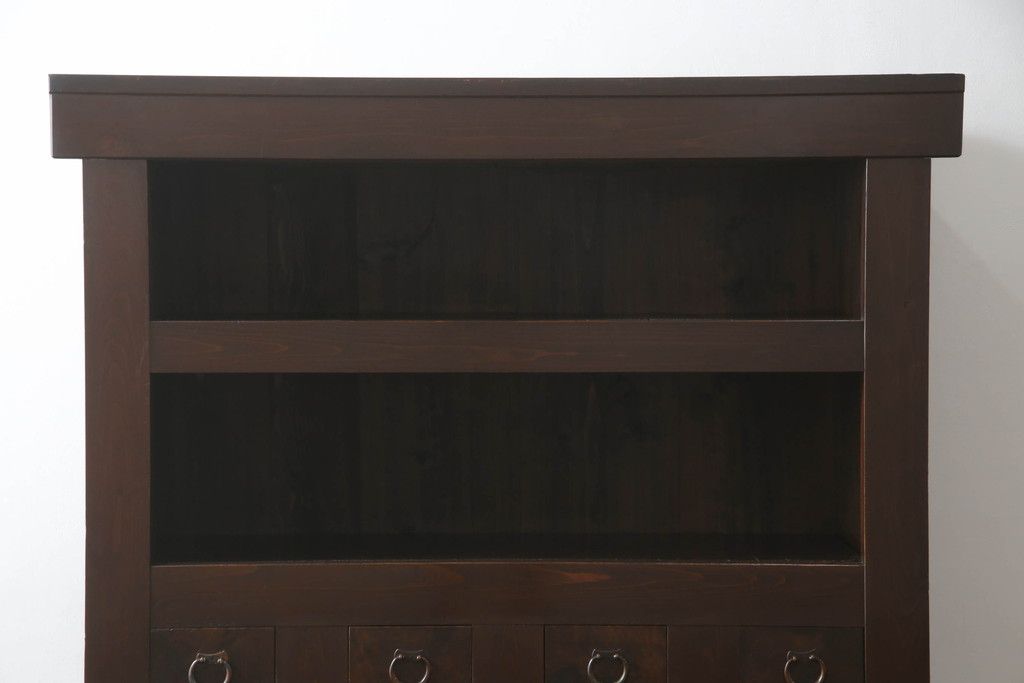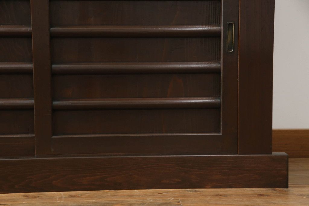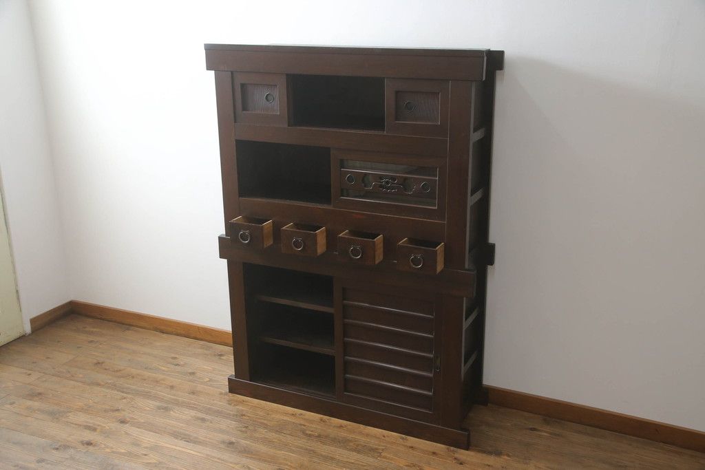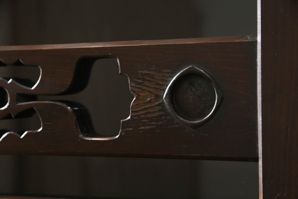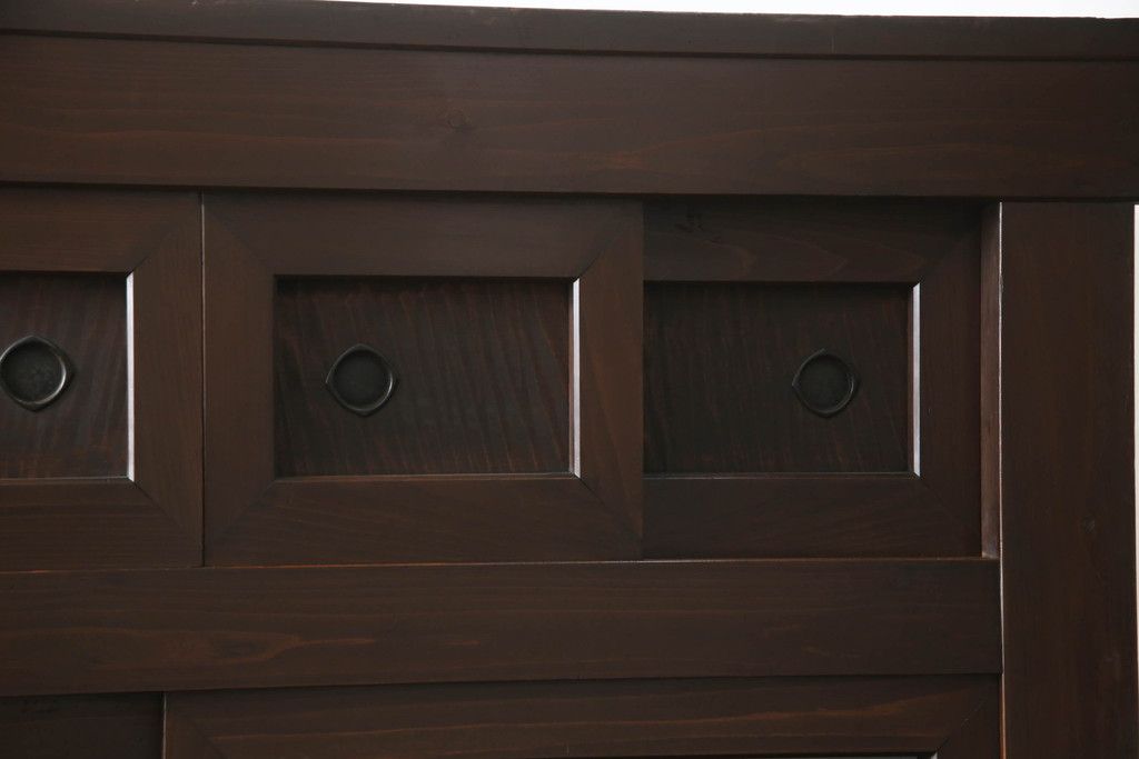 和箪笥> 水屋箪笥 > 水屋箪笥をリペア&カスタム!下段に棚板を製作し追加。網部分をクリアガラスに変更。1トーン落ち着いた色味に着色仕上げ。(キャビネット、食器棚、収納棚、戸棚)