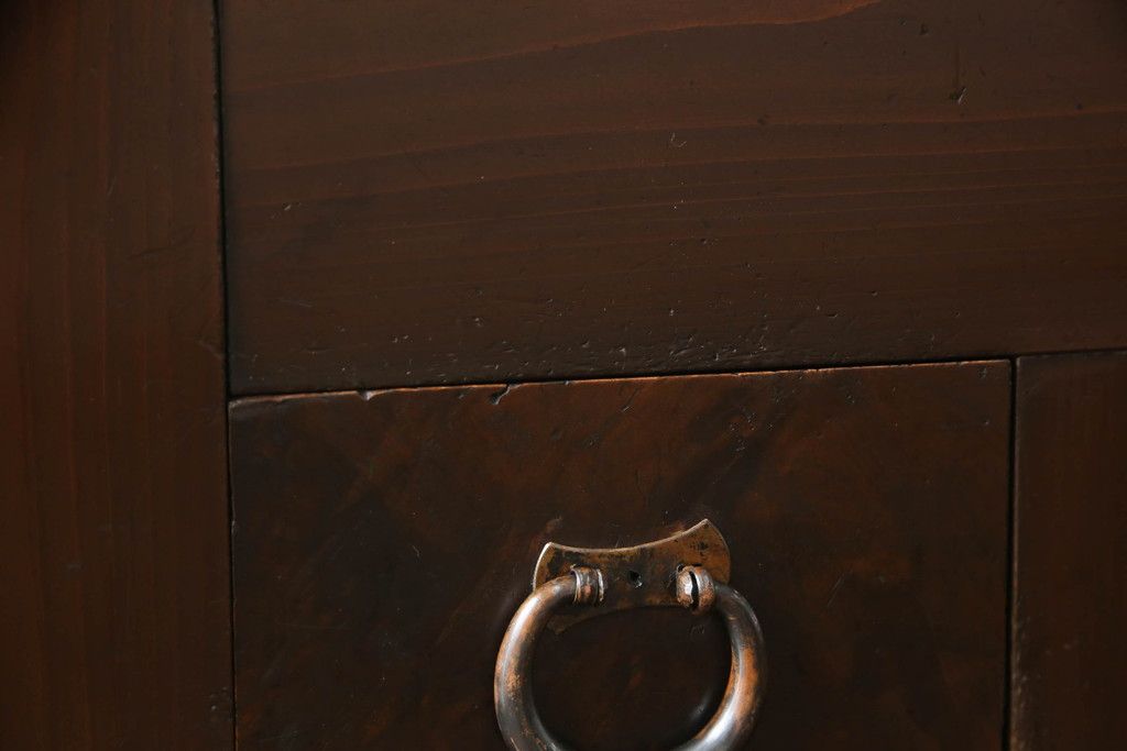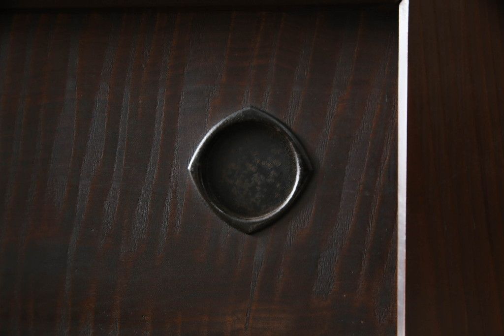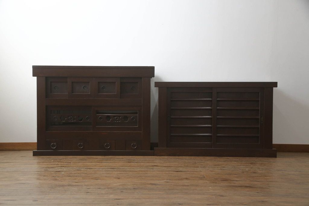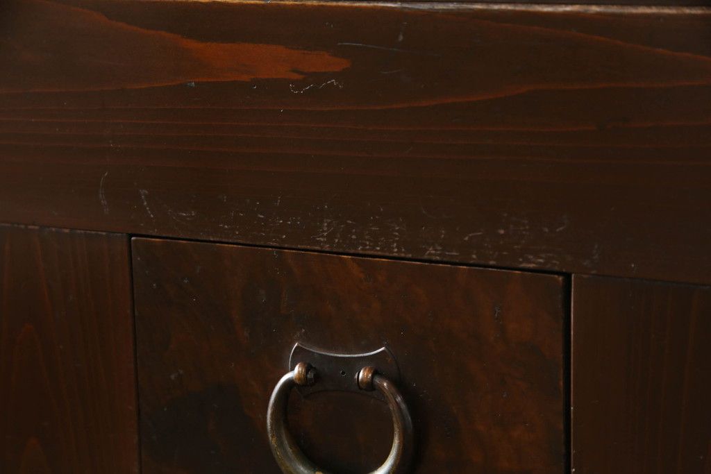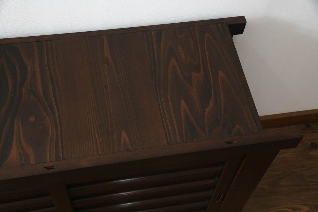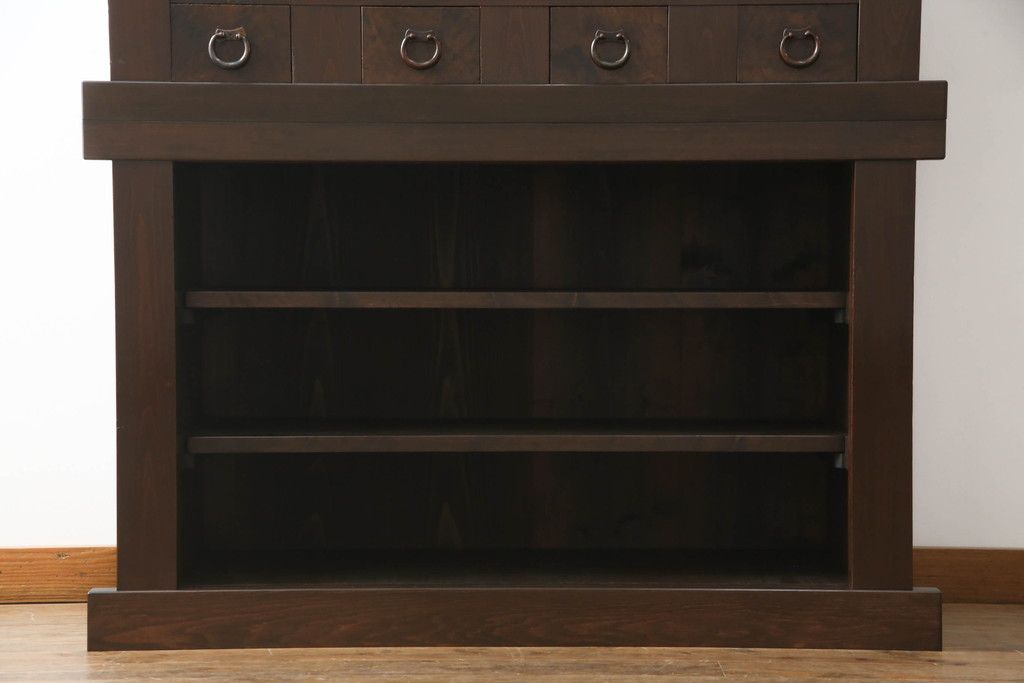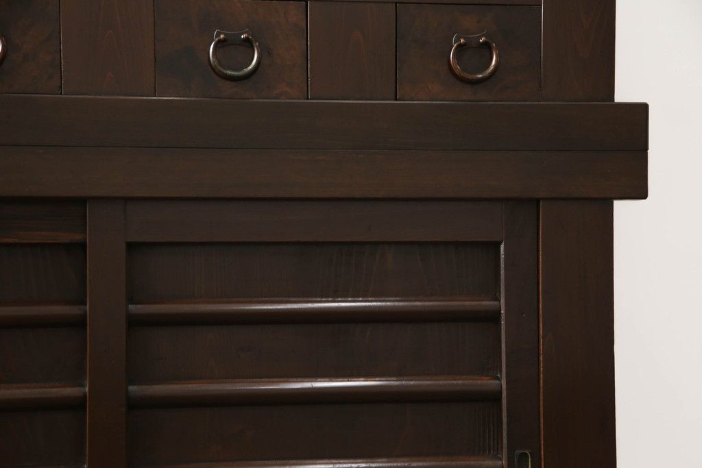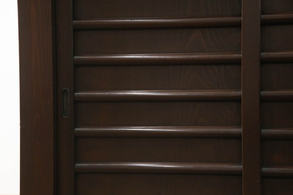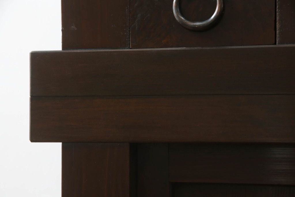 和箪笥> 水屋箪笥 > 水屋箪笥をリペア&カスタム!下段に棚板を製作し追加。網部分をクリアガラスに変更。1トーン落ち着いた色味に着色仕上げ。(キャビネット、食器棚、収納棚、戸棚)