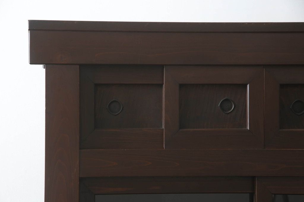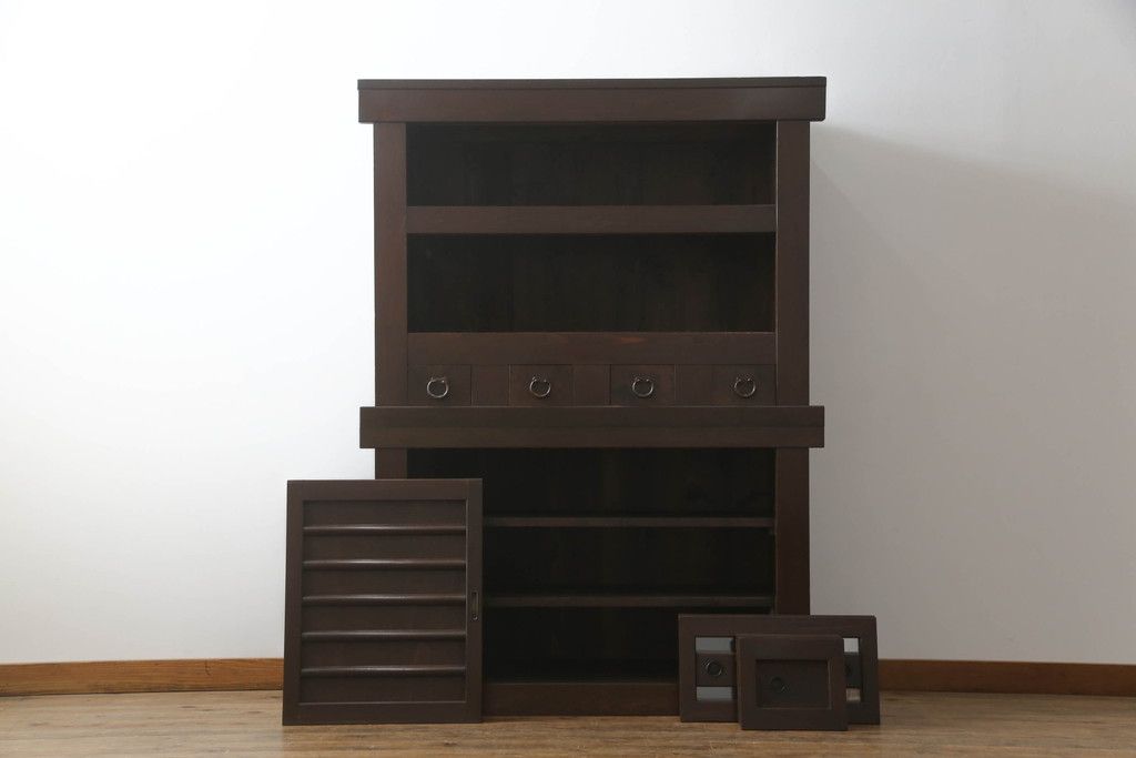 水屋箪笥をリペア&カスタム!下段に棚板を製作し追加。網部分をクリアガラスに変更。1トーン落ち着いた色味に着色仕上げ。(キャビネット、食器棚、収納棚、戸棚)