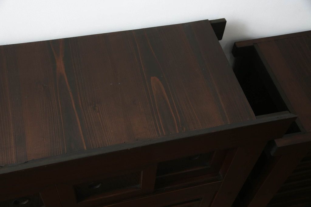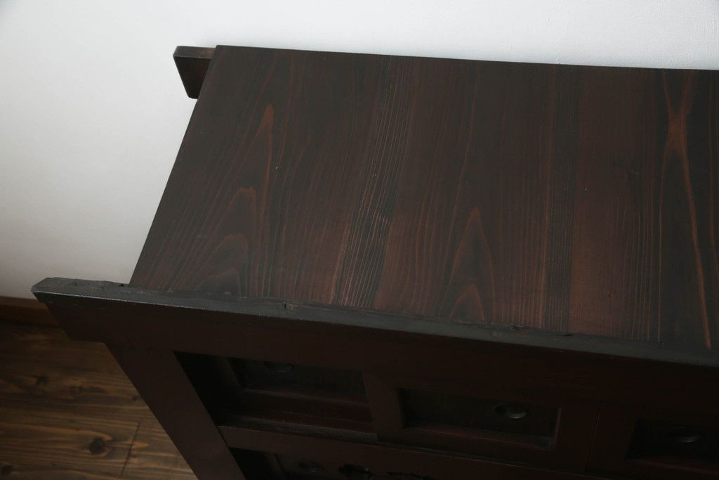 和箪笥 > 水屋箪笥をリペア&カスタム!下段に棚板を製作し追加。網部分をクリアガラスに変更。1トーン落ち着いた色味に着色仕上げ。(キャビネット、食器棚、収納棚、戸棚)