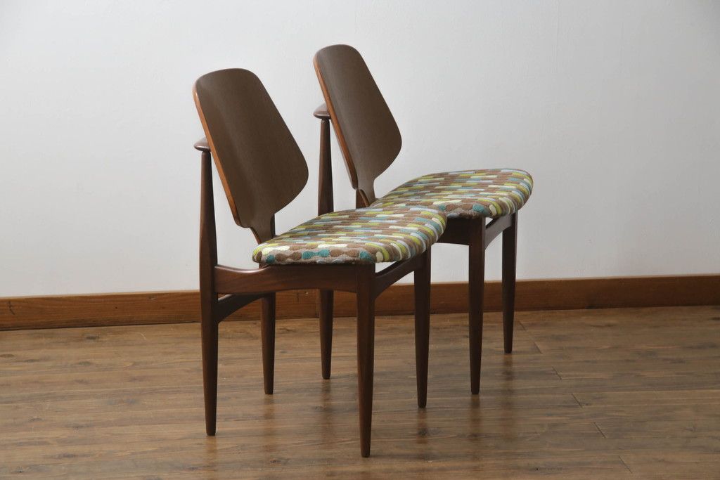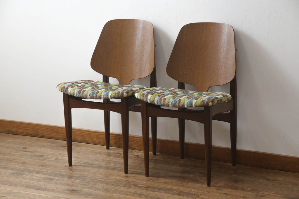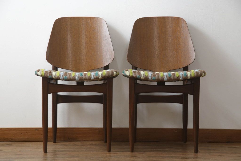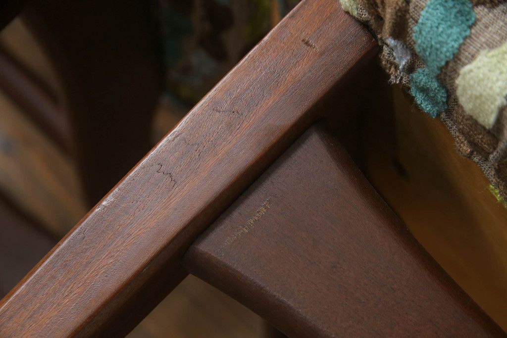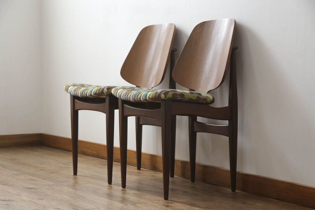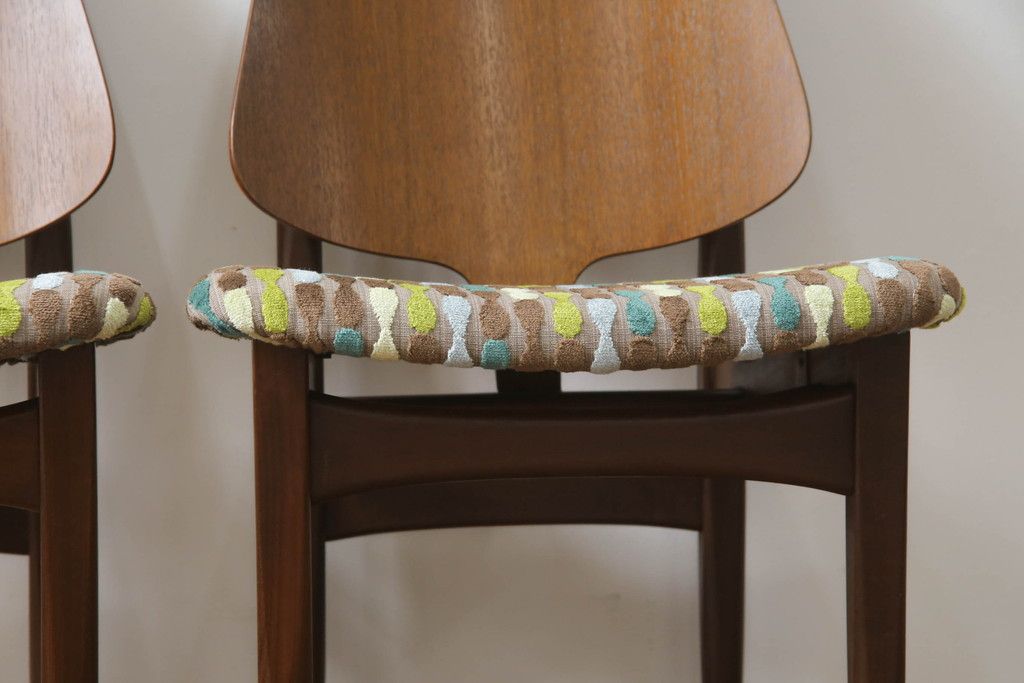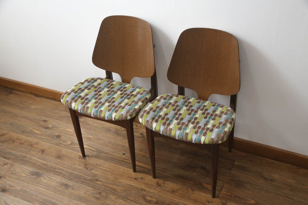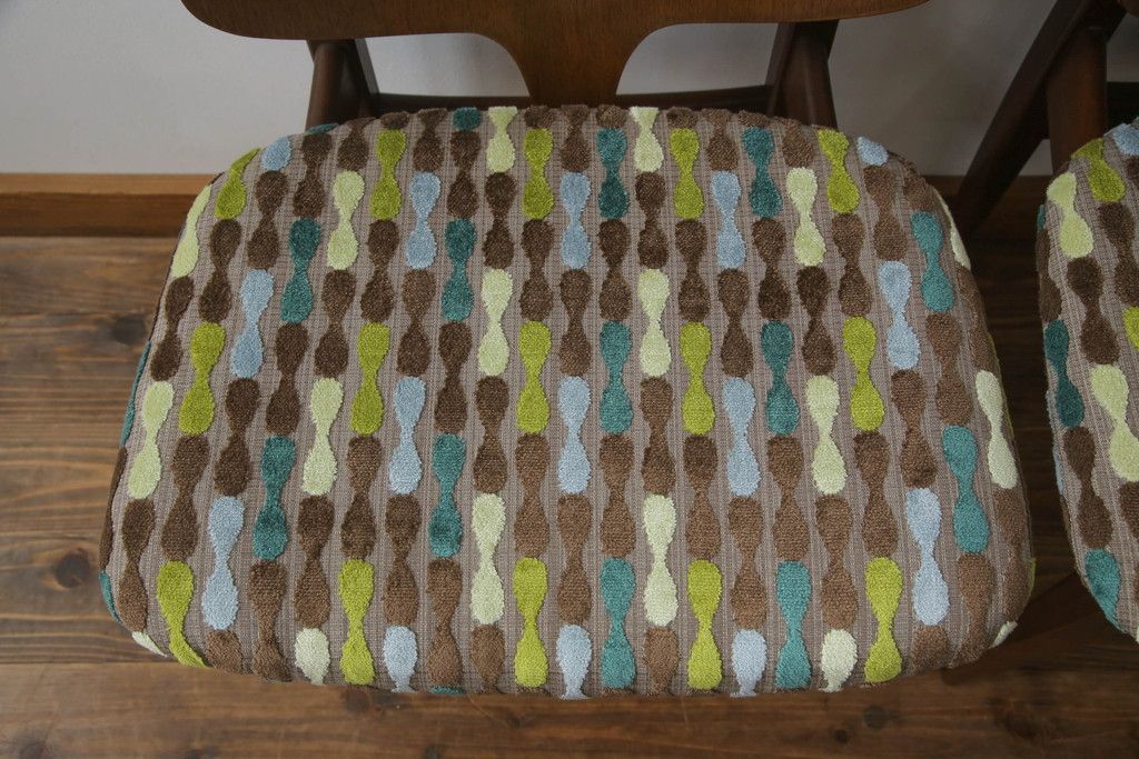 椅子・ベンチ> ダイニングチェア > ダイニングチェアをリペア&カスタム!座面の生地を張替え、背もたれは木製に変更。1トーン落ち着いた色味に着色仕上げ。(椅子、イス、イギリス、英国)