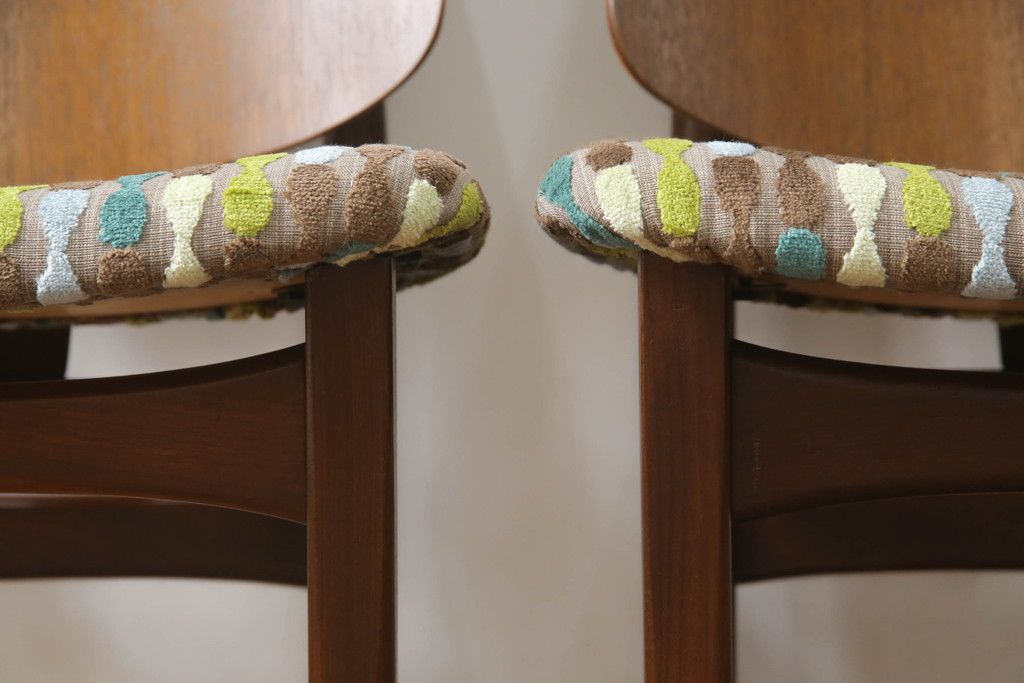 ダイニングチェアをリペア&カスタム!座面の生地を張替え、背もたれは木製に変更。1トーン落ち着いた色味に着色仕上げ。(椅子、イス、イギリス、英国)