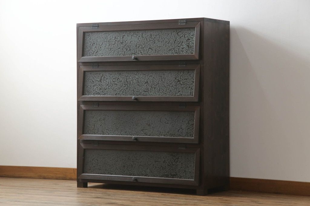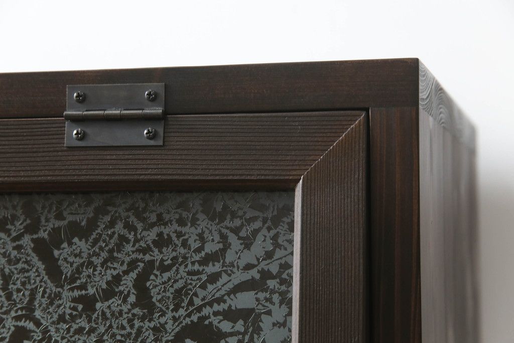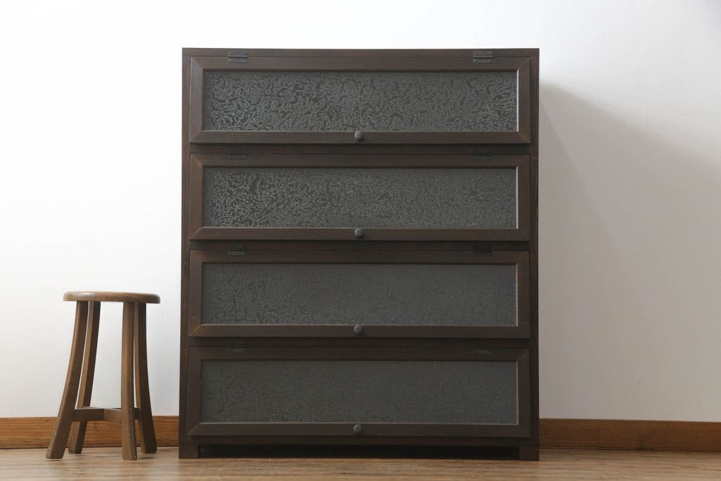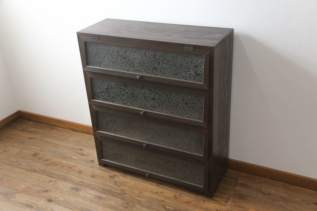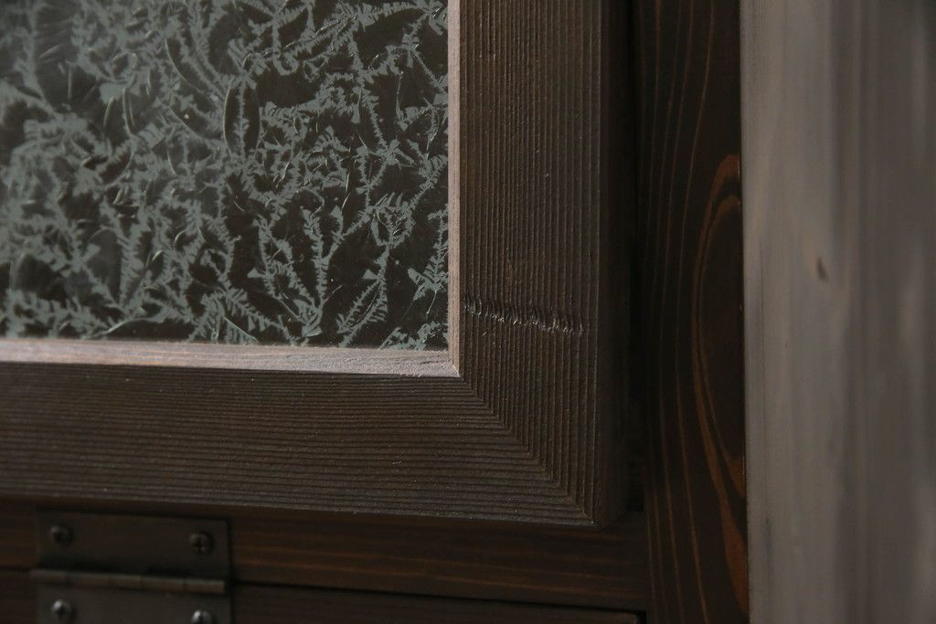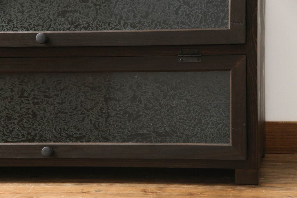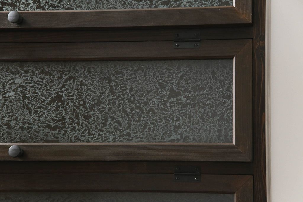 パタパタ扉の下駄箱を新規製作!扉にはアンティーク結霜ガラスを使用。(収納棚、戸棚、ロッカー)