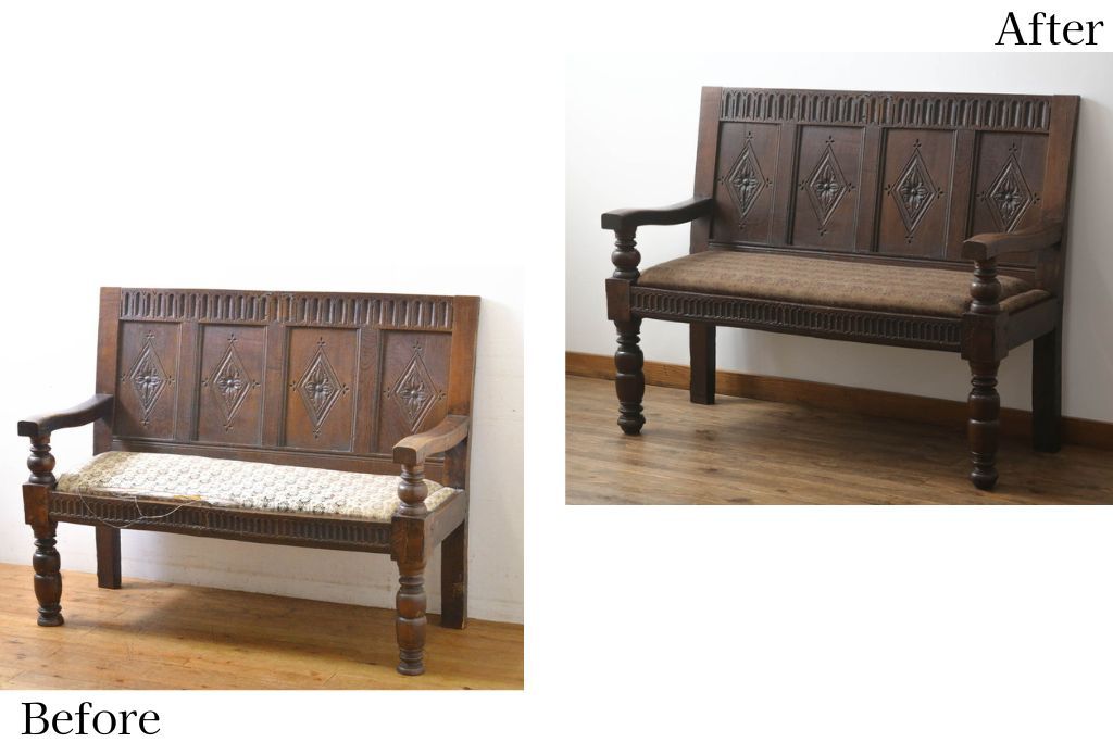 ソファ> 2人掛けソファ > 2人掛けアームベンチをリペア&カスタム!脚の高さを足し、座面を張替え。(2人掛けソファ、二人掛け、2P、ソファベンチ)