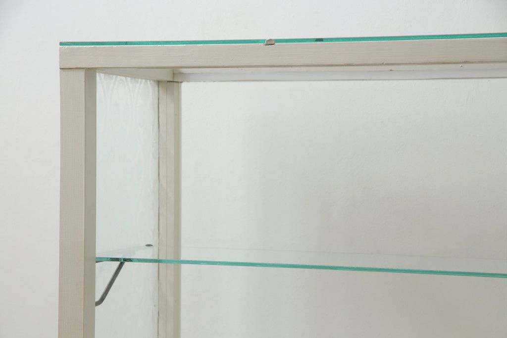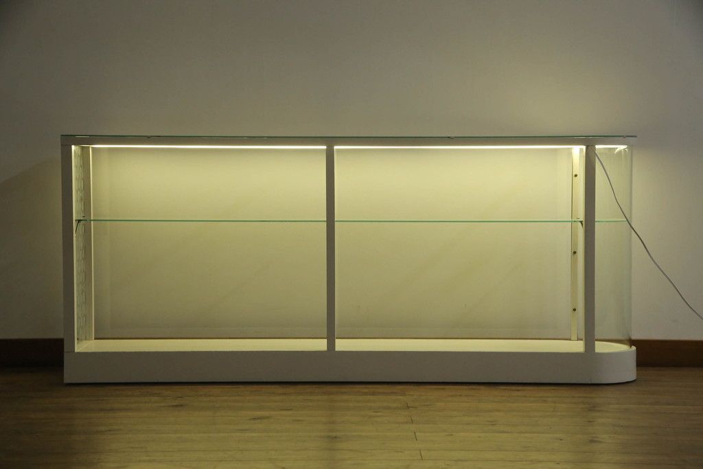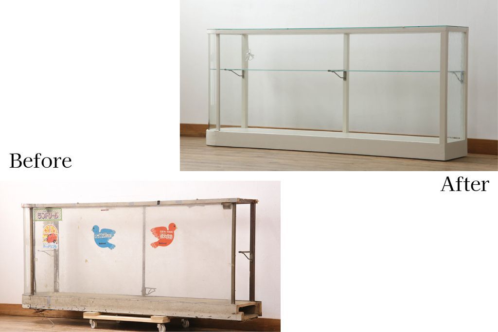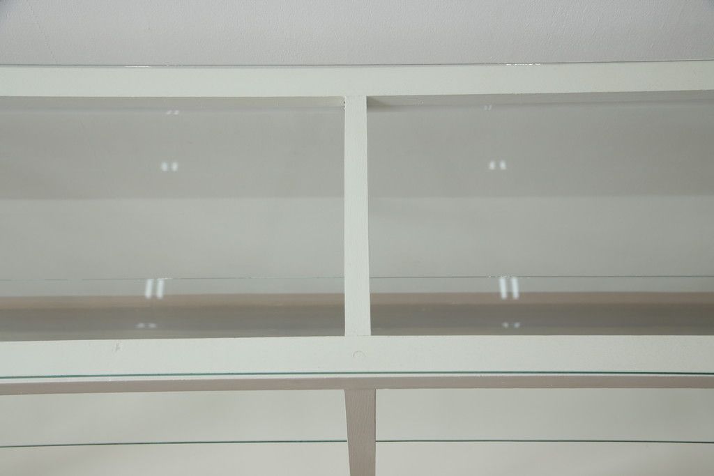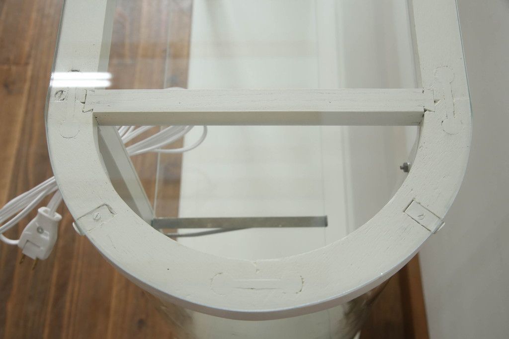 店舗什器 > 昭和中期のオーバルガラスケースをリペア&カスタム!LED照明とクリアキャスターを取り付け、アンティークホワイトでペイント仕上げ。(ショーケース、陳列棚、飾り棚、店舗什器)