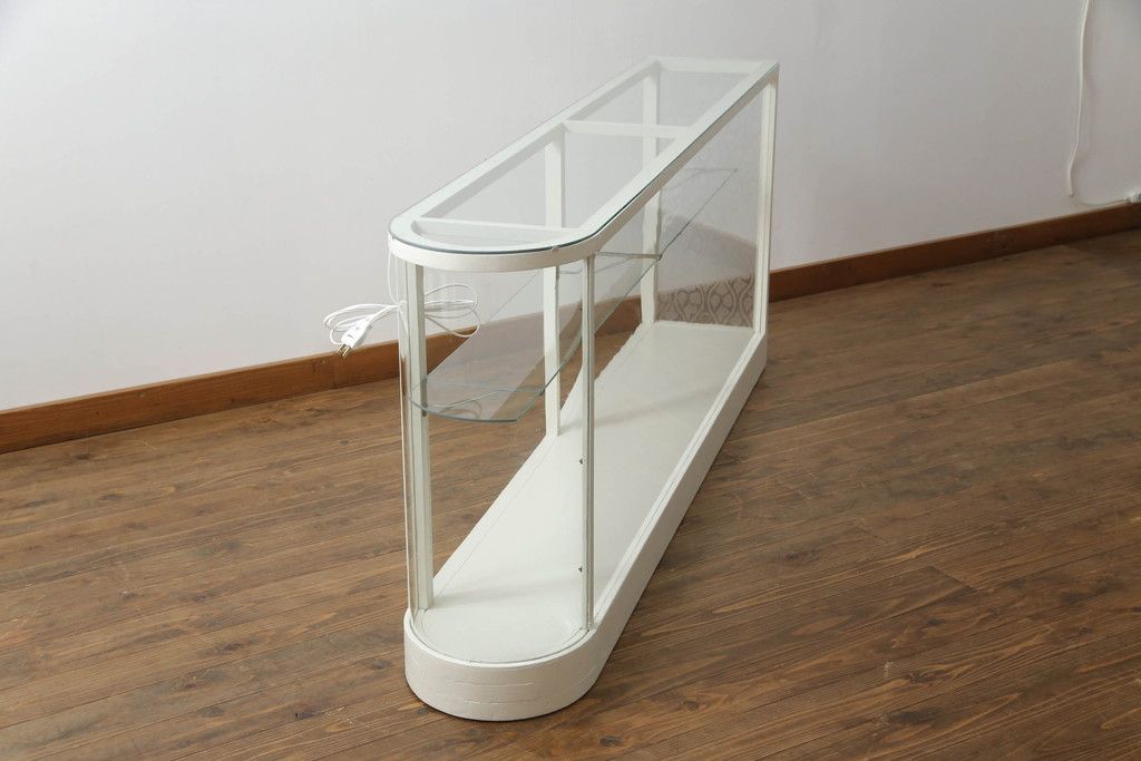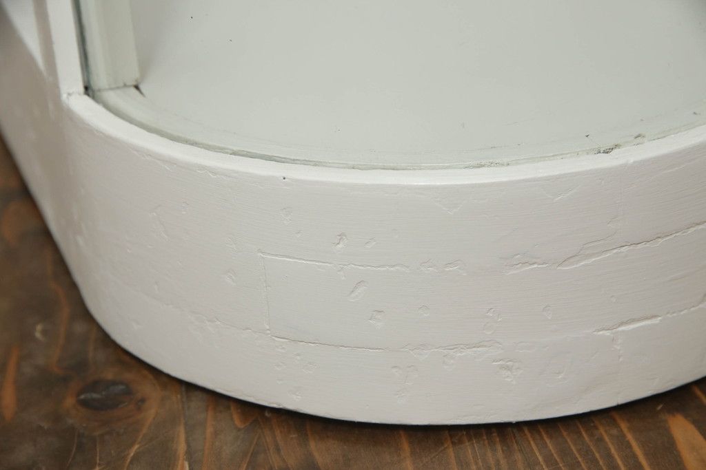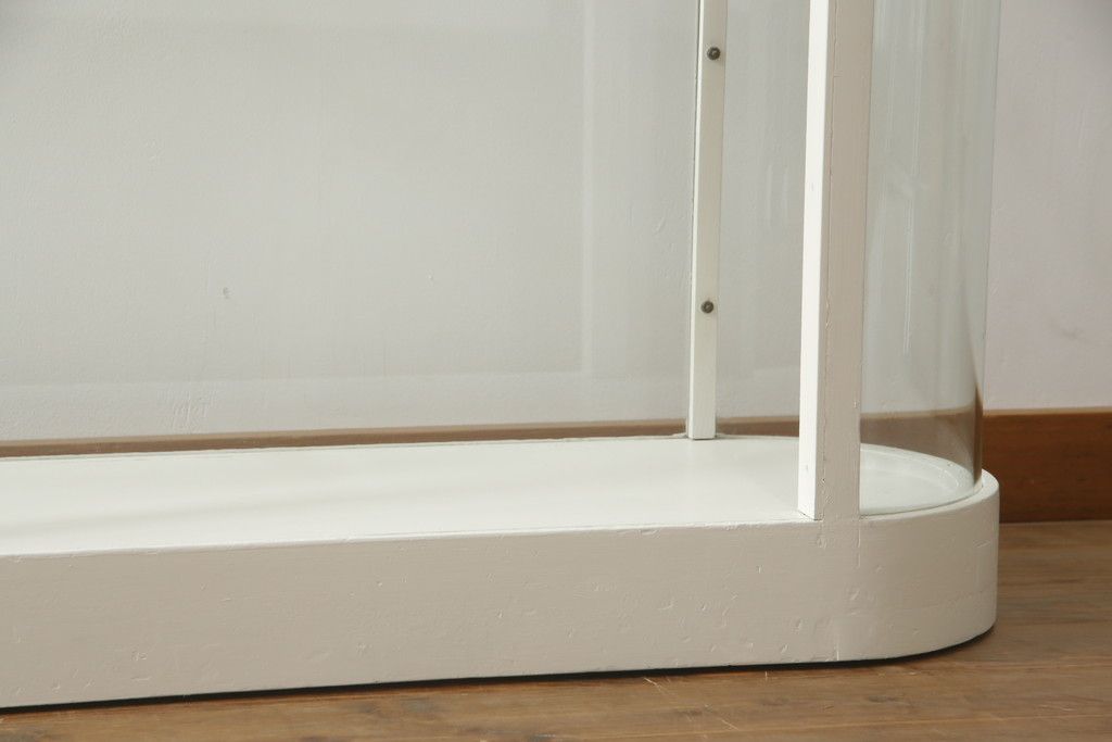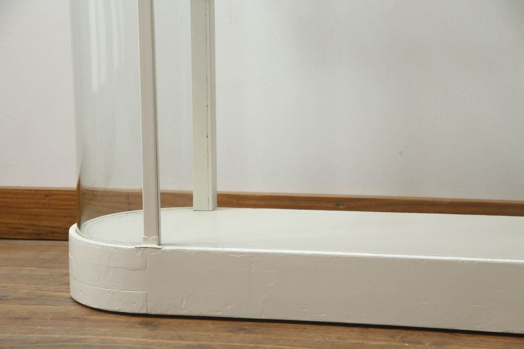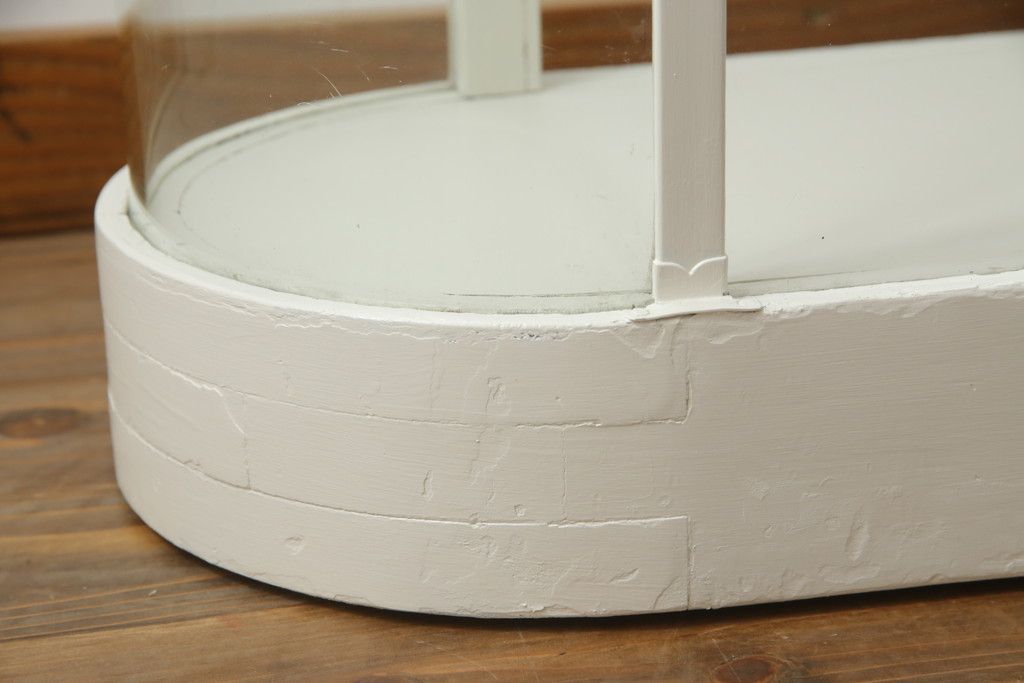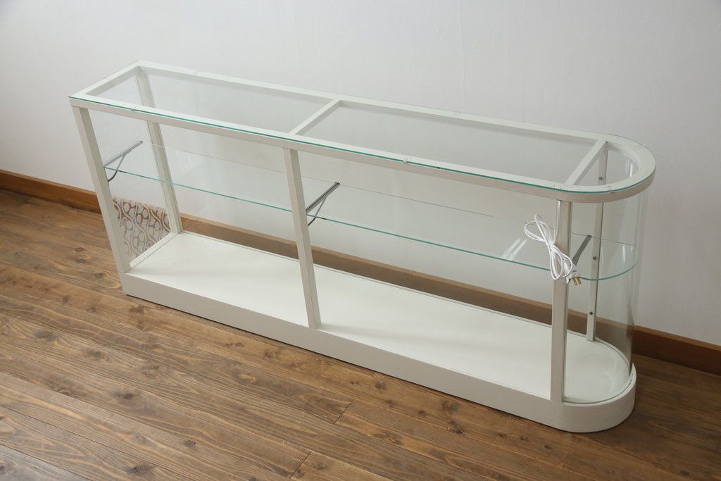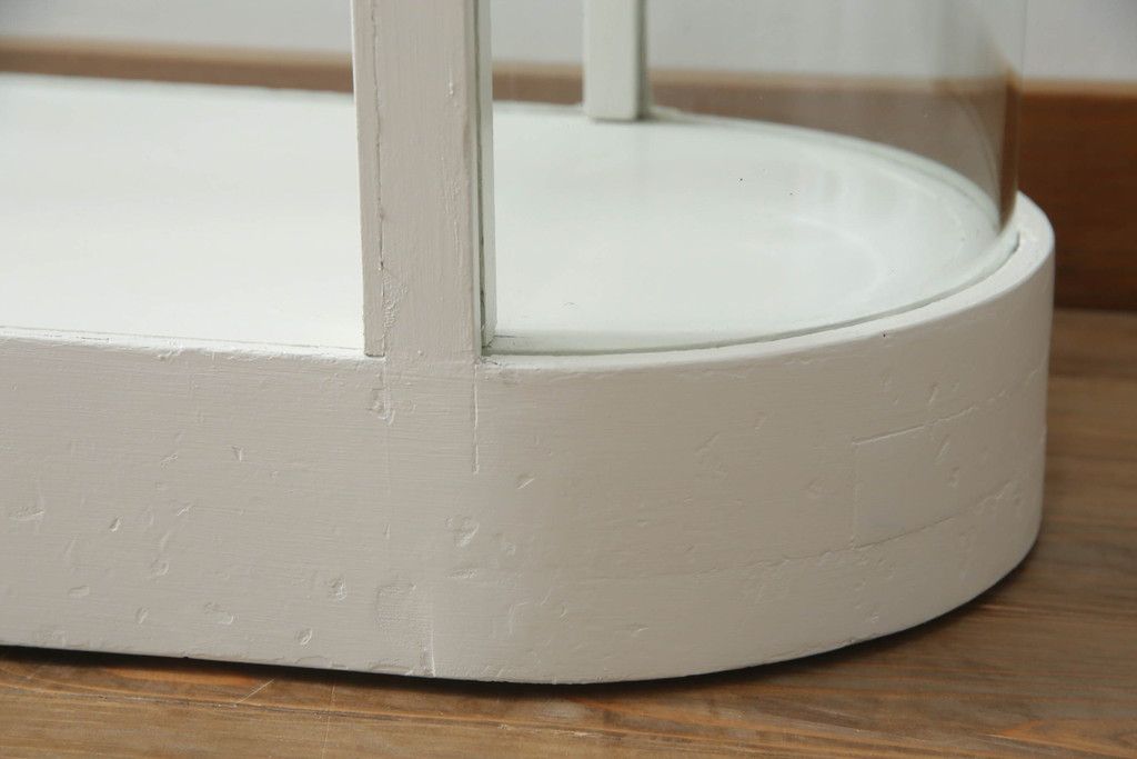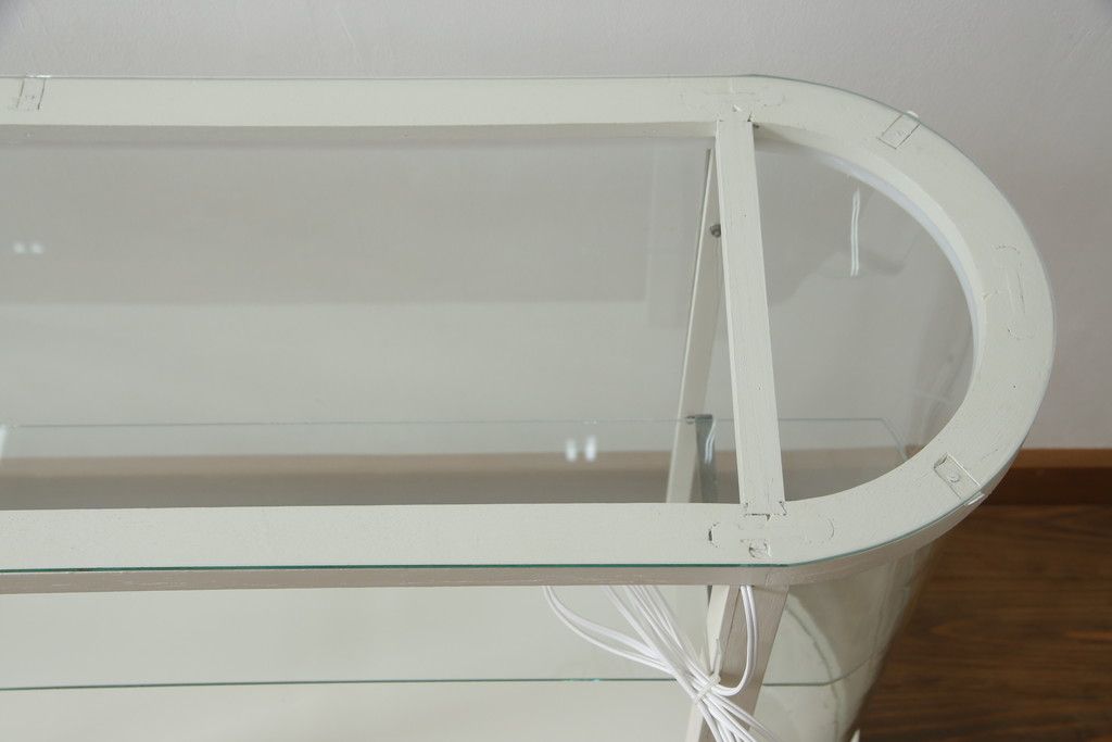 ガラスケース・ショーケース> カウンターショーケース > 昭和中期のオーバルガラスケースをリペア&カスタム!LED照明とクリアキャスターを取り付け、アンティークホワイトでペイント仕上げ。(ショーケース、陳列棚、飾り棚、店舗什器)