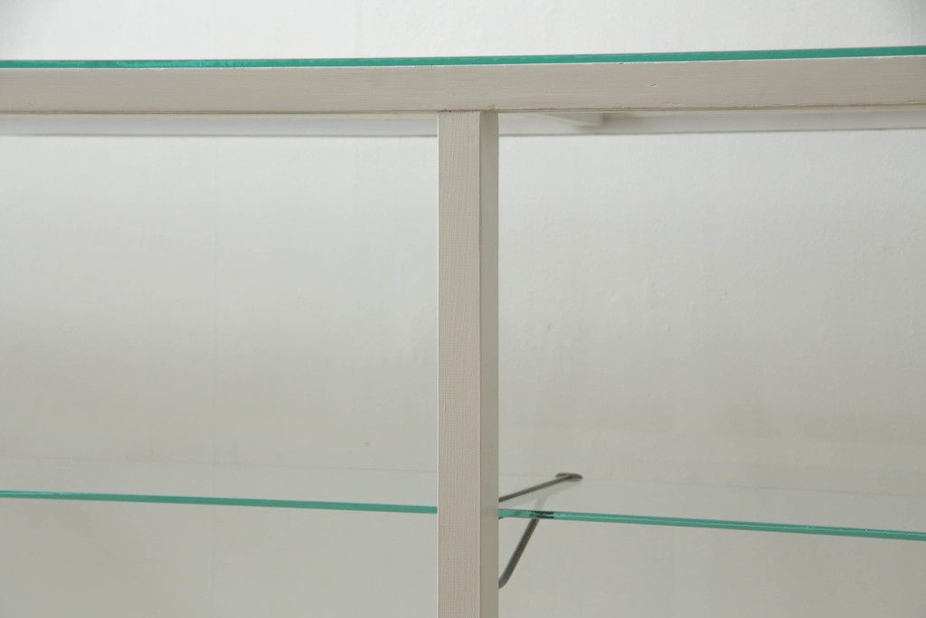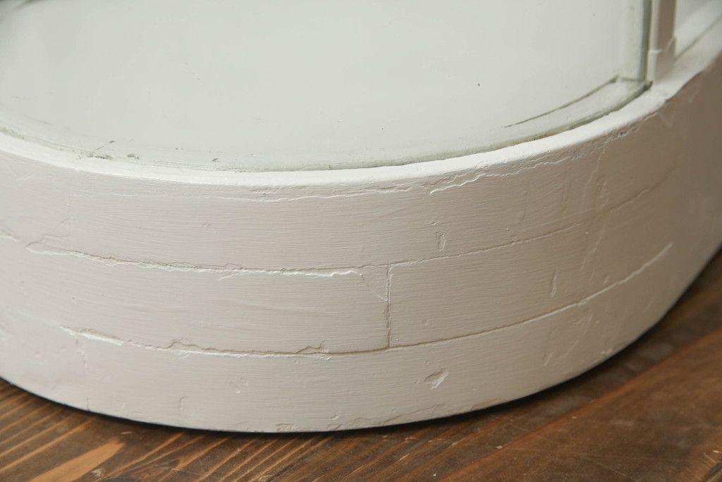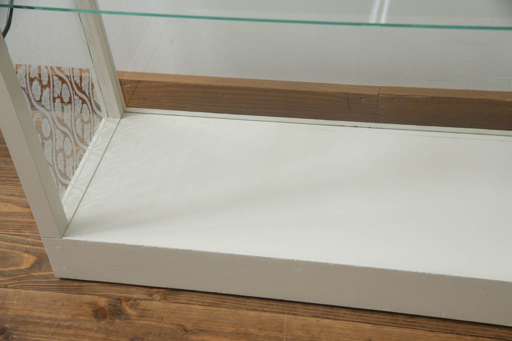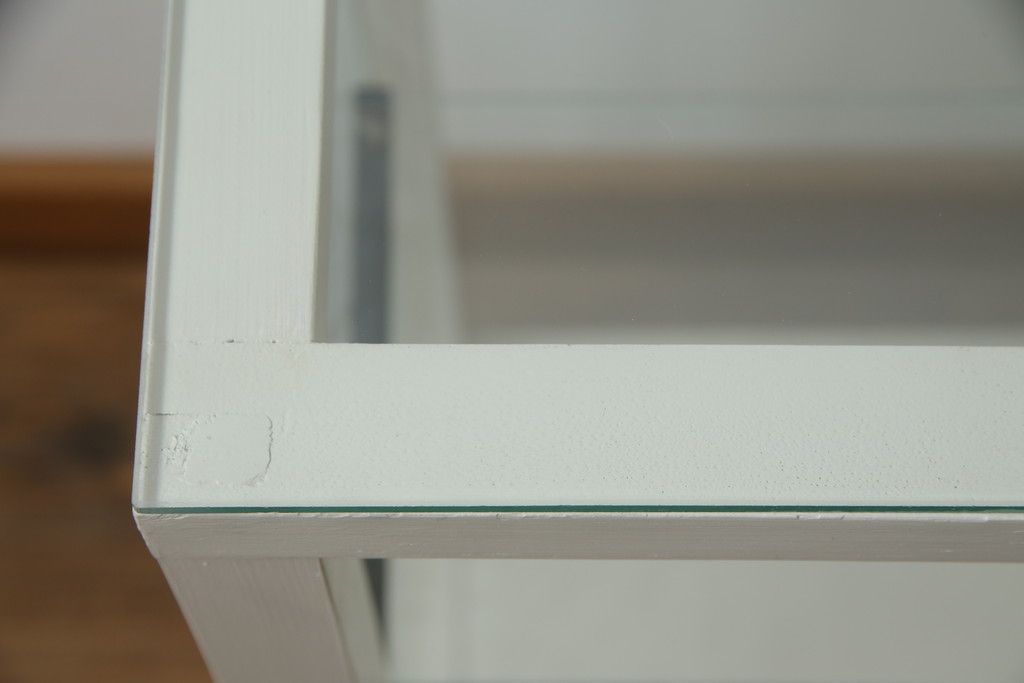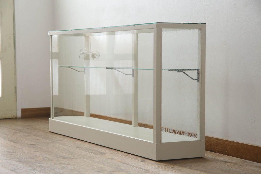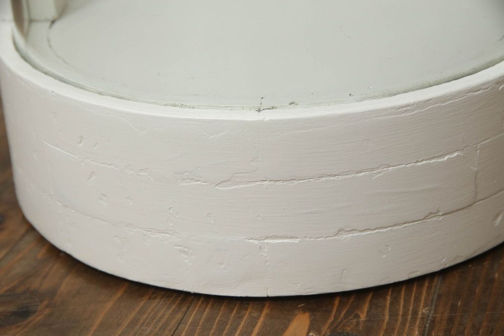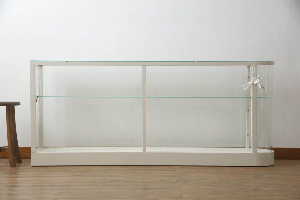 ガラスケース・ショーケース> カウンターショーケース > 昭和中期のオーバルガラスケースをリペア&カスタム!LED照明とクリアキャスターを取り付け、アンティークホワイトでペイント仕上げ。(ショーケース、陳列棚、飾り棚、店舗什器)