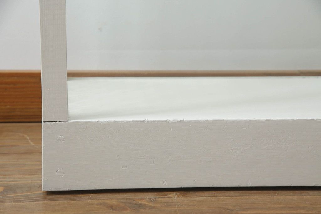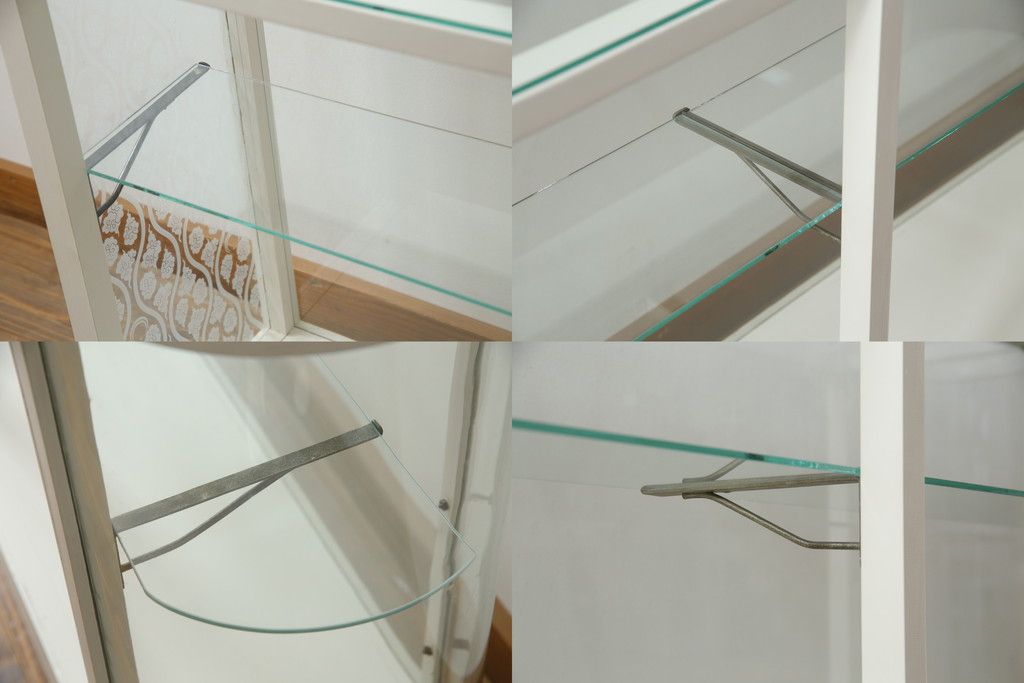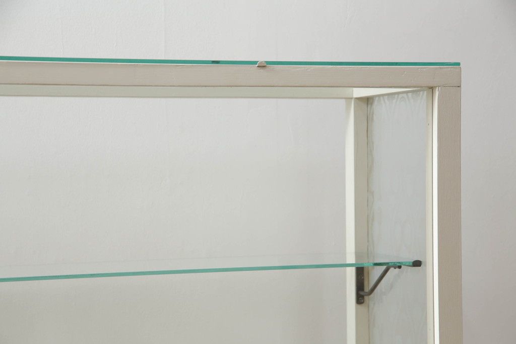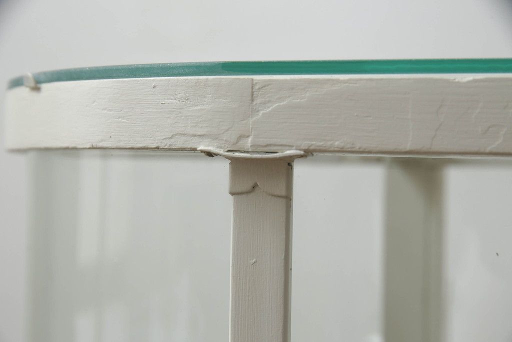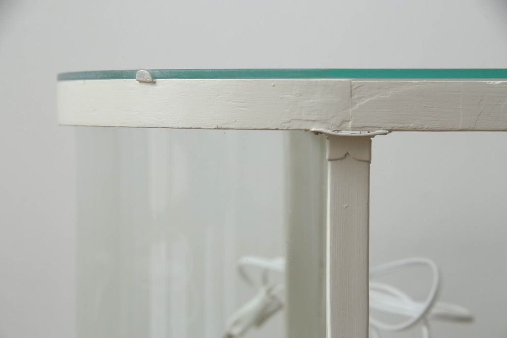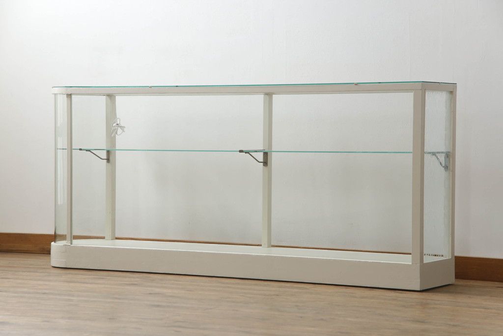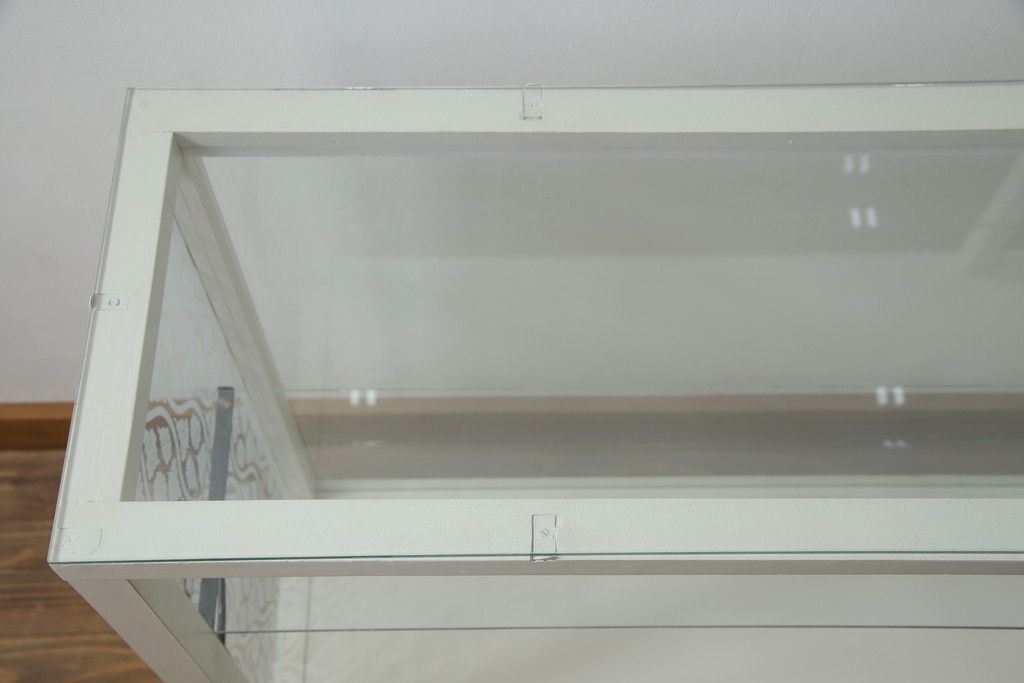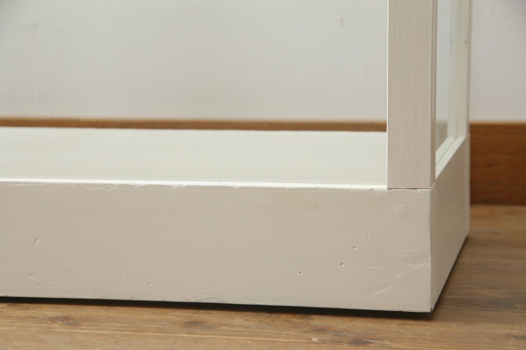 ガラスケース・ショーケース> カウンターショーケース > 昭和中期のオーバルガラスケースをリペア&カスタム!LED照明とクリアキャスターを取り付け、アンティークホワイトでペイント仕上げ。(ショーケース、陳列棚、飾り棚、店舗什器)