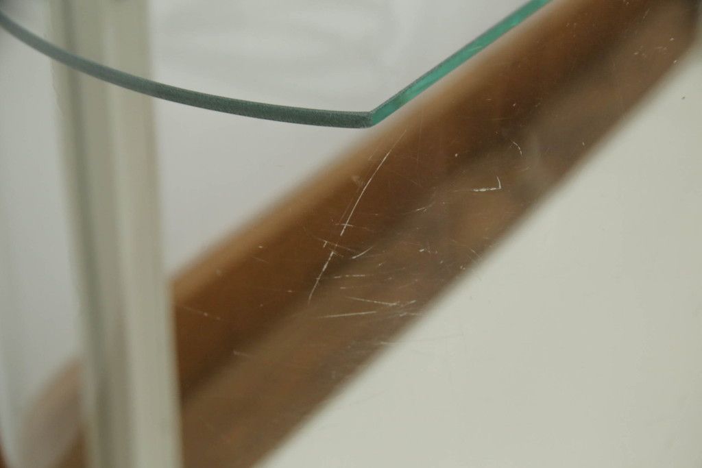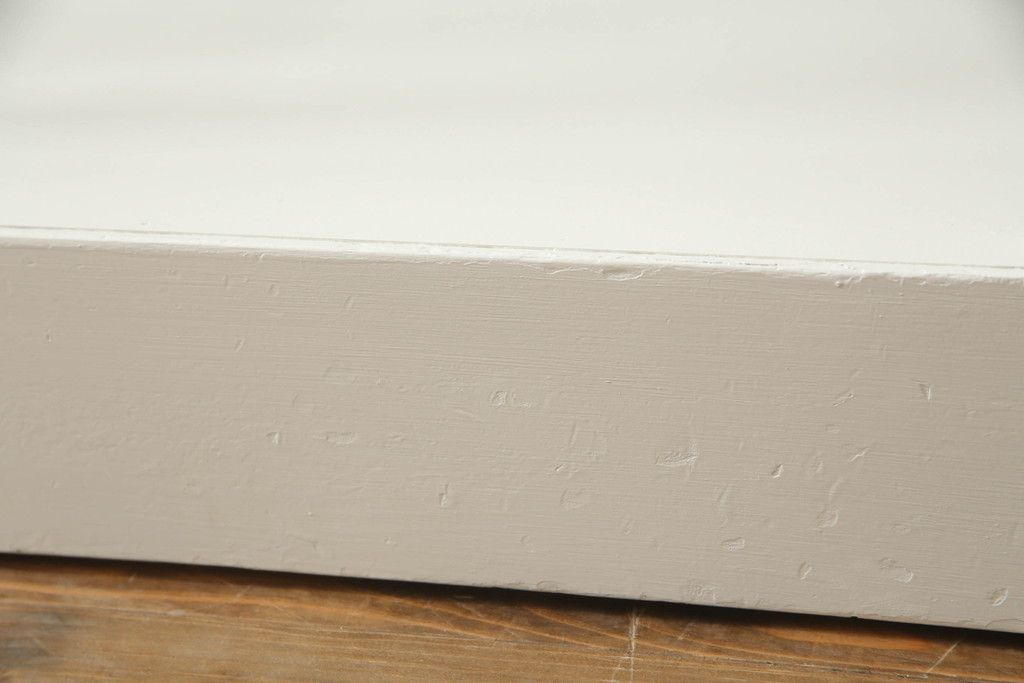 セミオーダー家具実績 > 昭和中期のオーバルガラスケースをリペア&カスタム!LED照明とクリアキャスターを取り付け、アンティークホワイトでペイント仕上げ。(ショーケース、陳列棚、飾り棚、店舗什器)