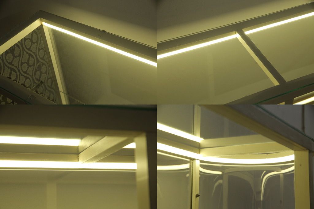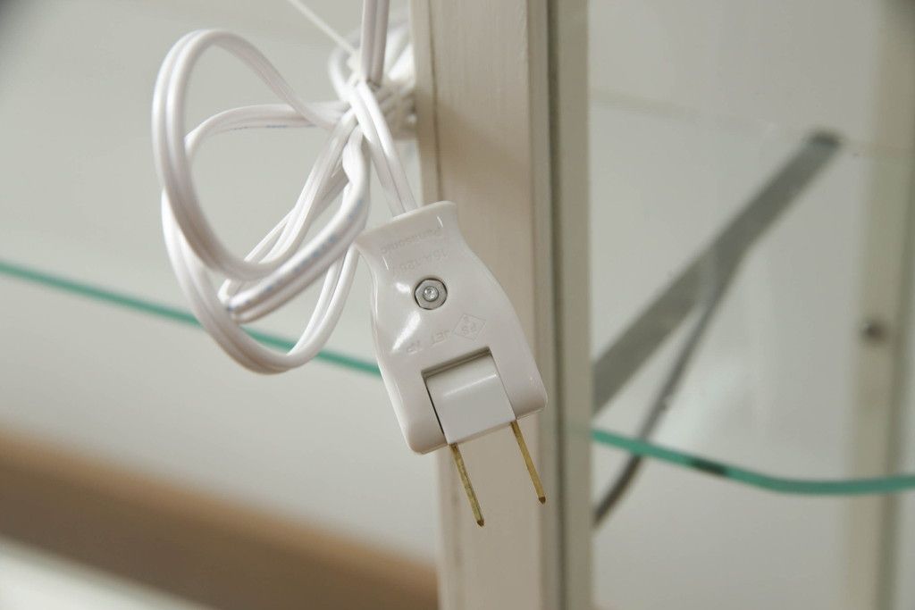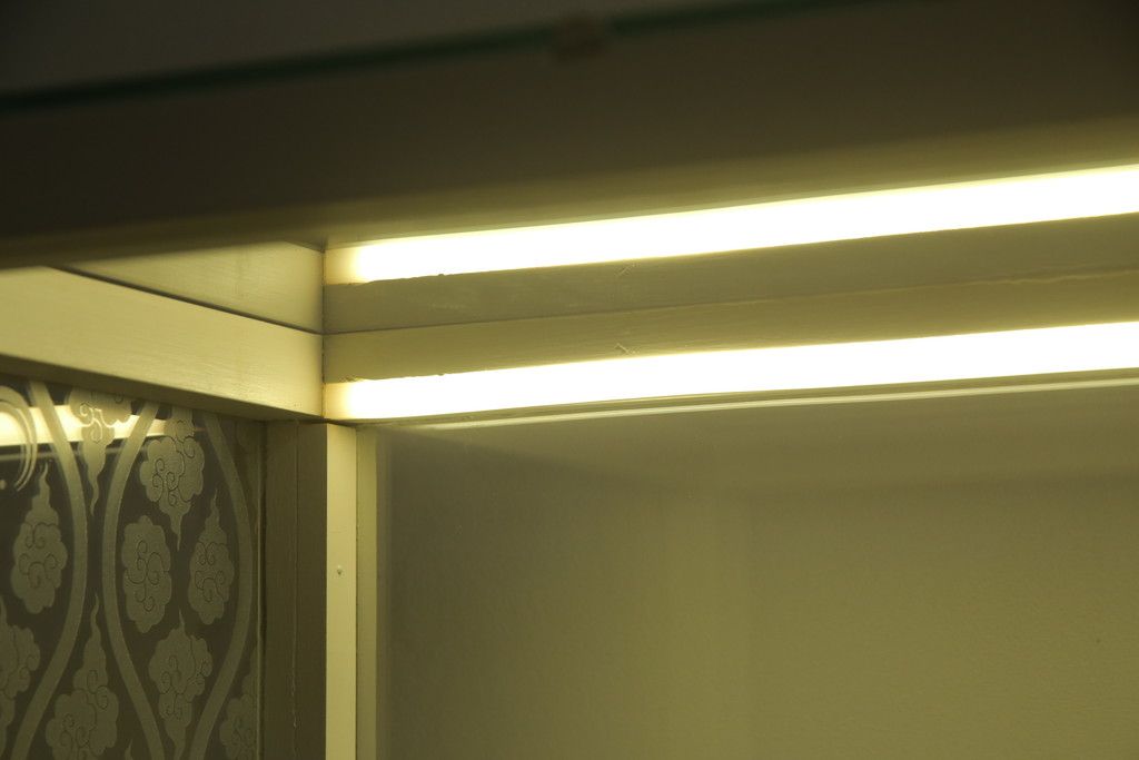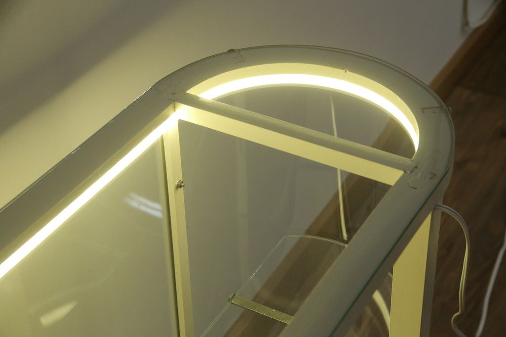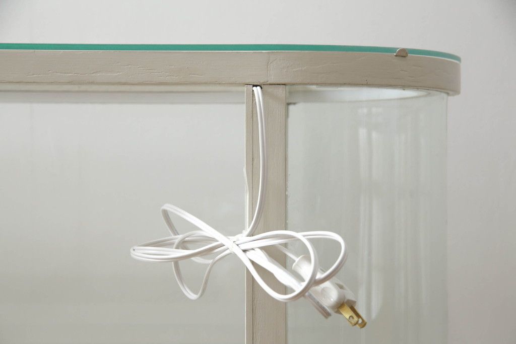 ガラスケース・ショーケース > 昭和中期のオーバルガラスケースをリペア&カスタム!LED照明とクリアキャスターを取り付け、アンティークホワイトでペイント仕上げ。(ショーケース、陳列棚、飾り棚、店舗什器)