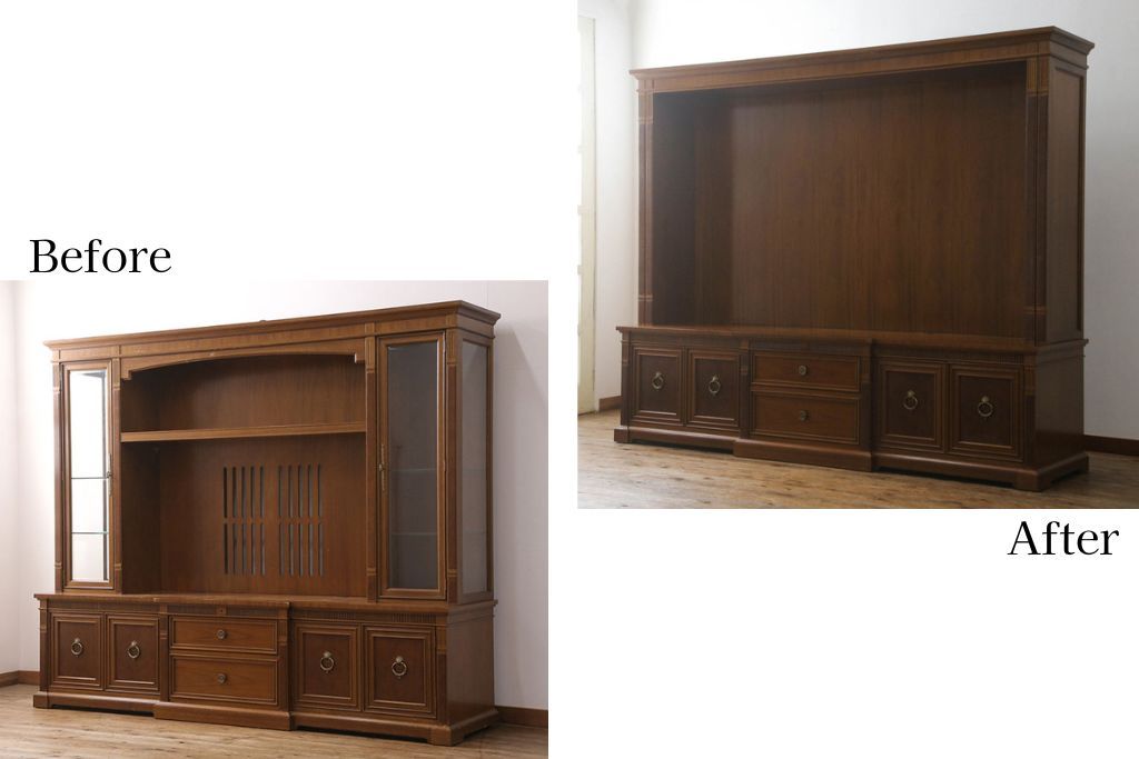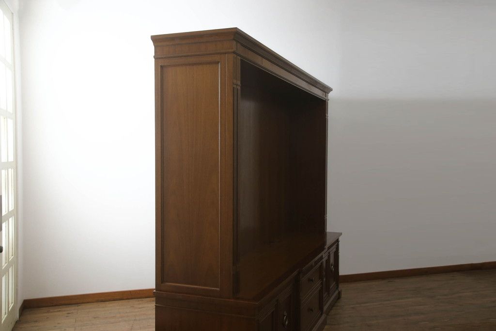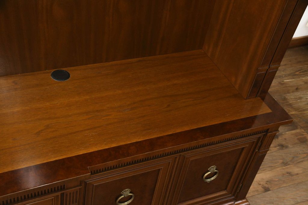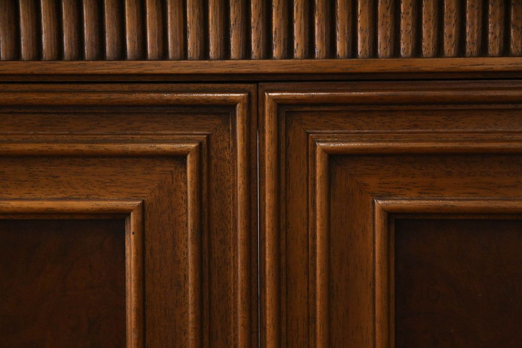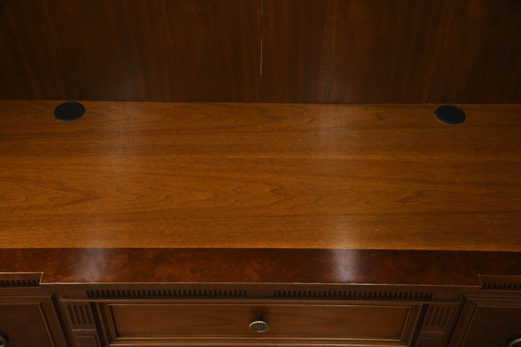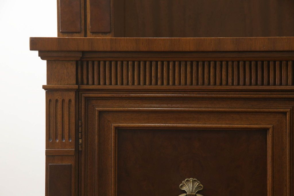ドレクセルヘリテイジの大型キャビネットをリペア&カスタム!テレビを設置できるよう上段の棚を取り除き、装飾を移設。引き出しはフラップダウン式に加工。(テレビ台、AVボード、収納棚、戸棚)