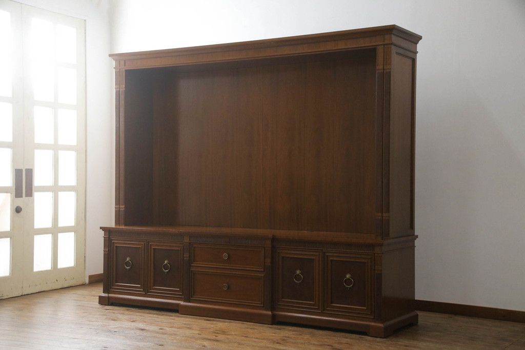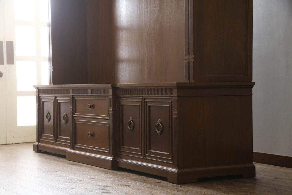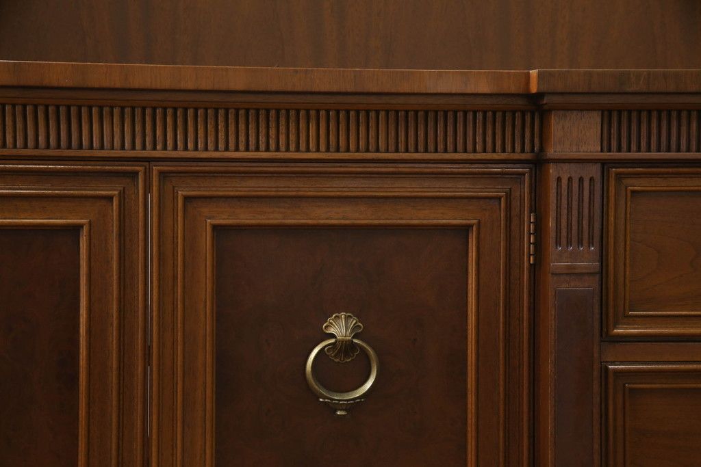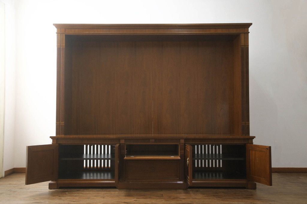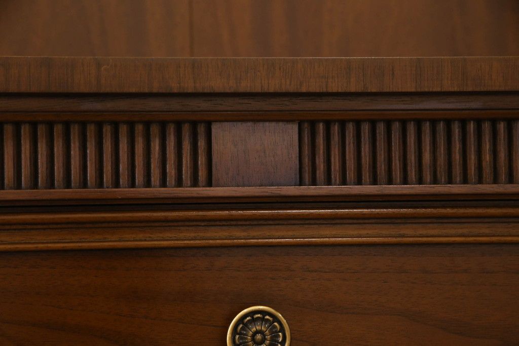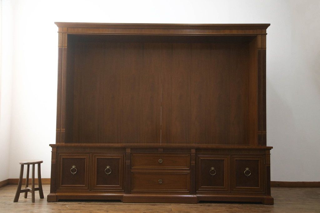 ドレクセルヘリテイジの大型キャビネットをリペア&カスタム!テレビを設置できるよう上段の棚を取り除き、装飾を移設。引き出しはフラップダウン式に加工。(テレビ台、AVボード、収納棚、戸棚)