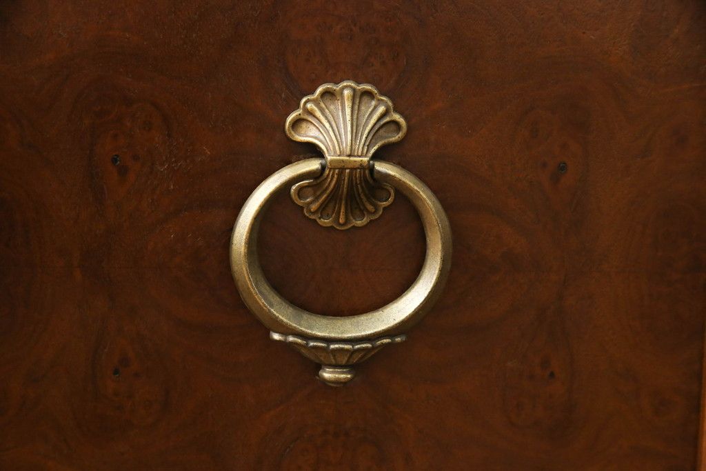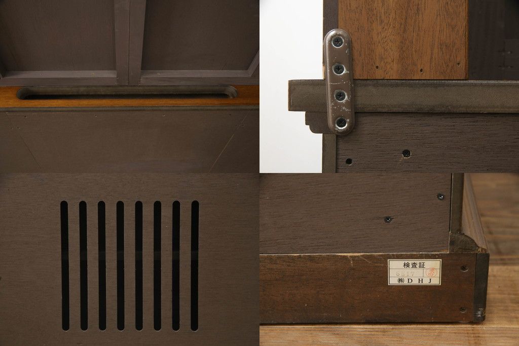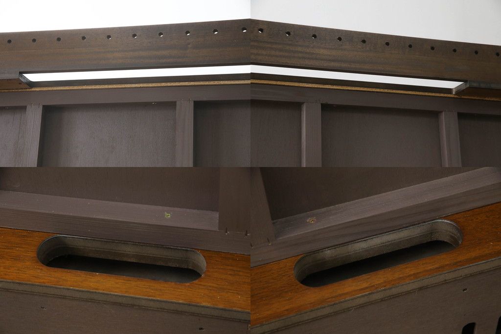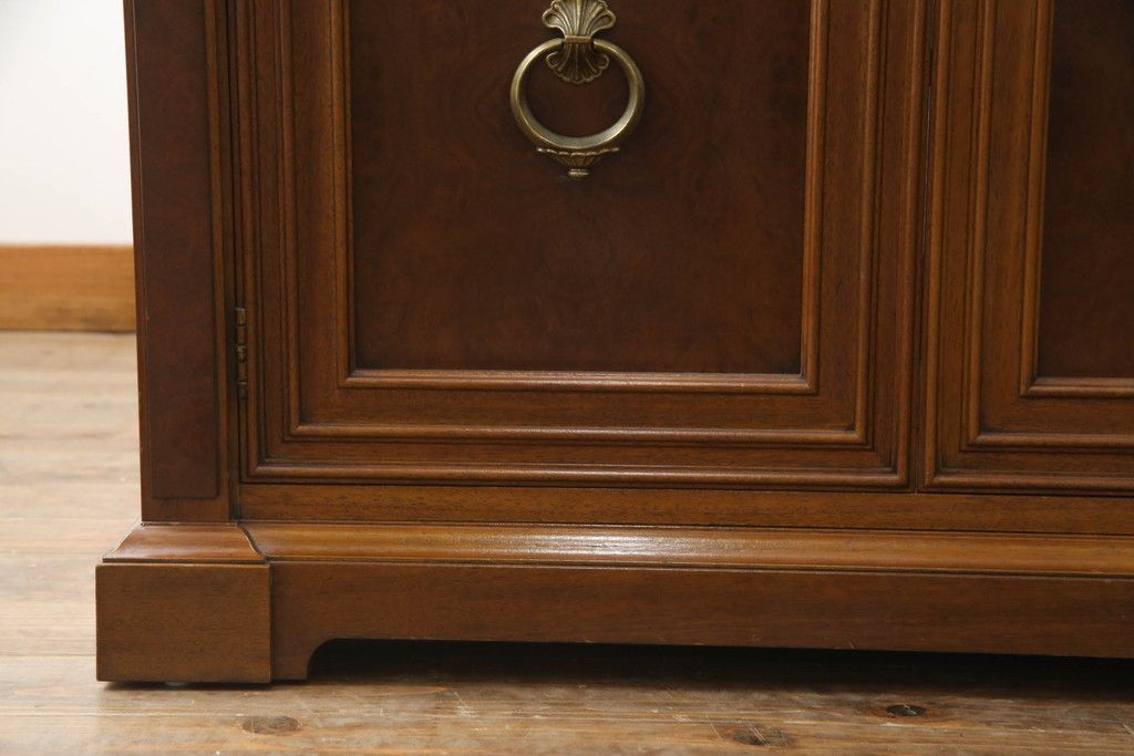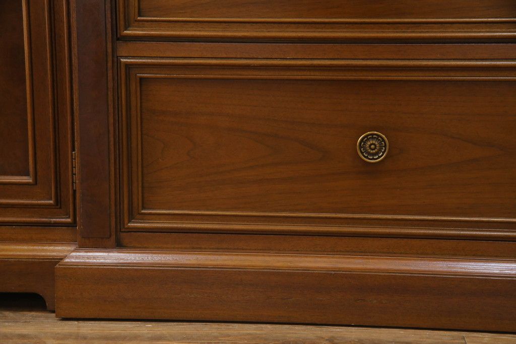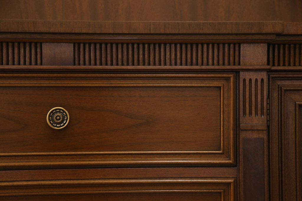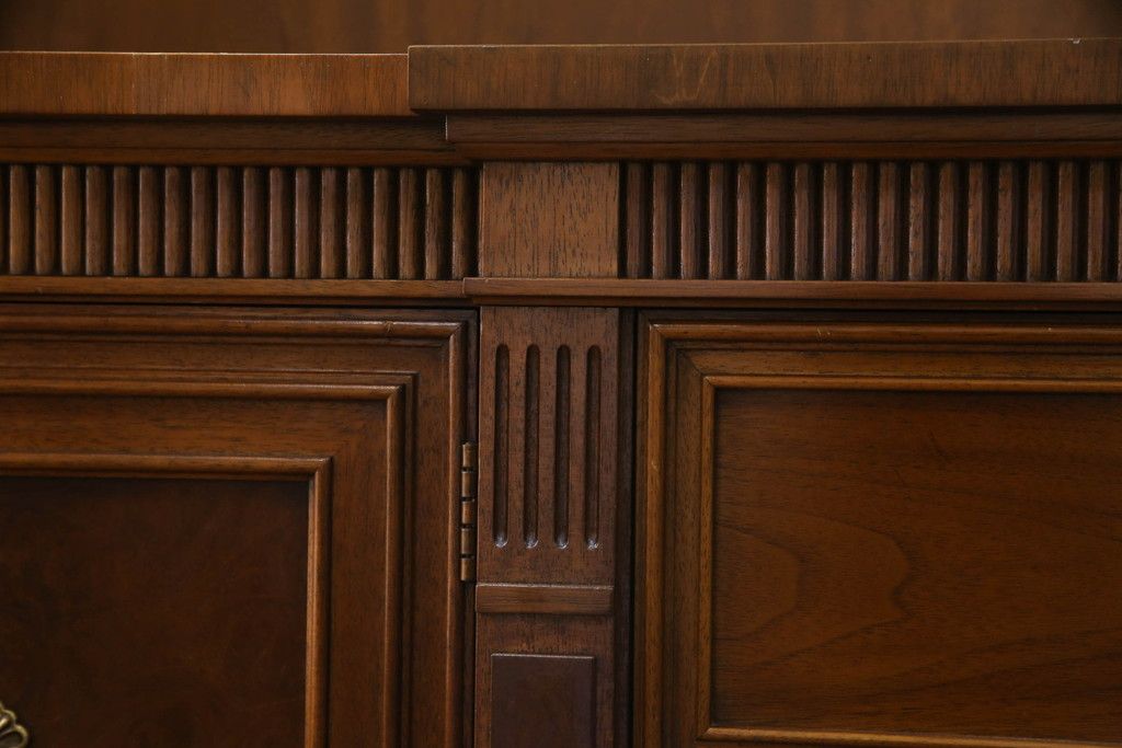 キャビネット・戸棚> テレビ台・ローボード > ドレクセルヘリテイジの大型キャビネットをリペア&カスタム!テレビを設置できるよう上段の棚を取り除き、装飾を移設。引き出しはフラップダウン式に加工。(テレビ台、AVボード、収納棚、戸棚)
