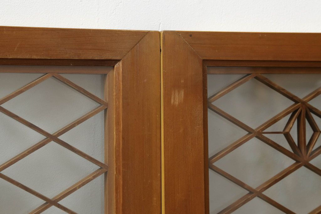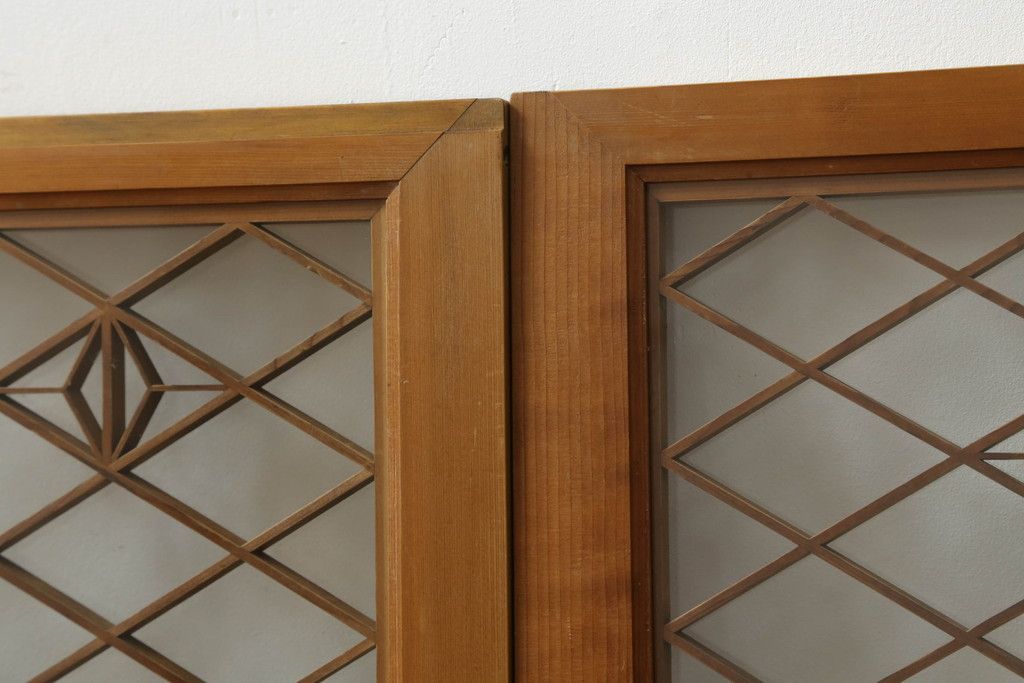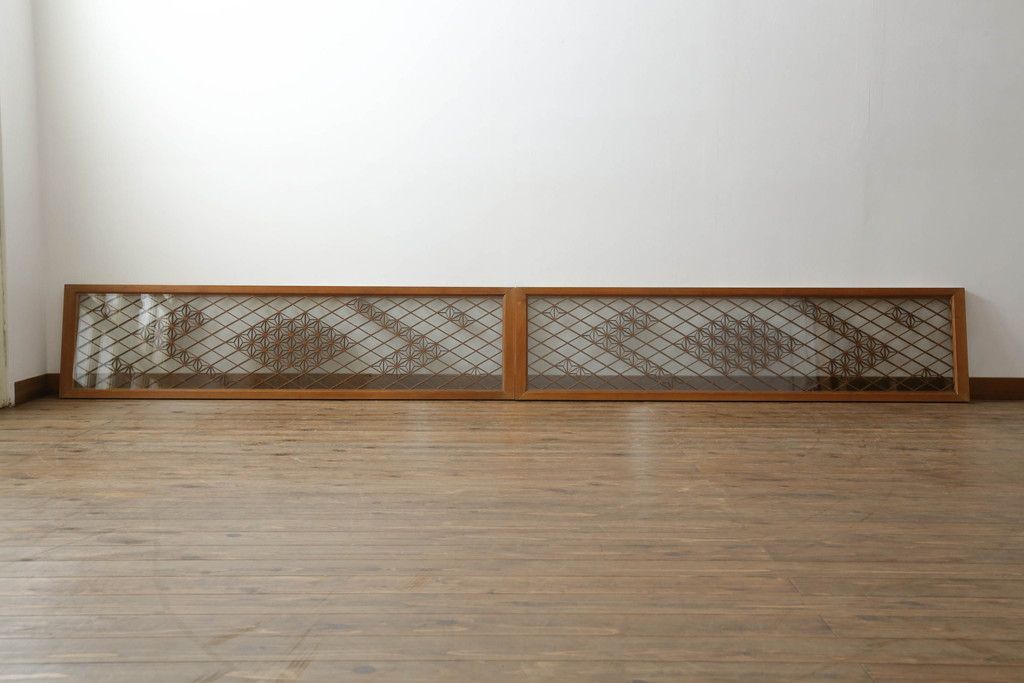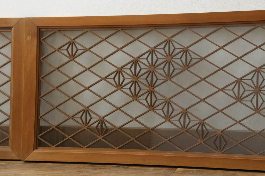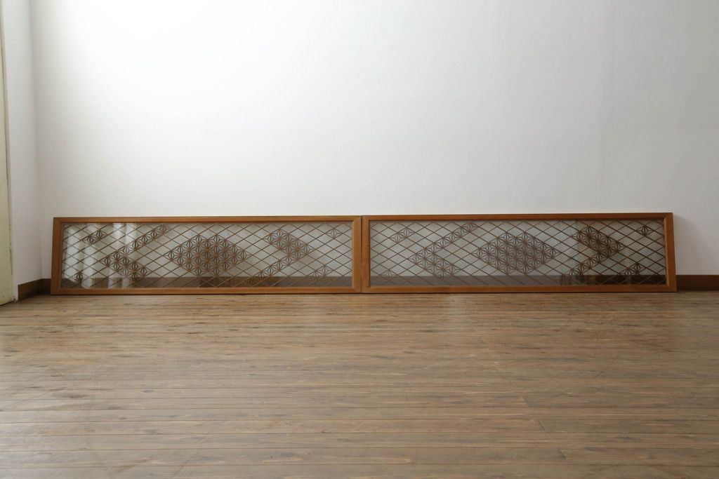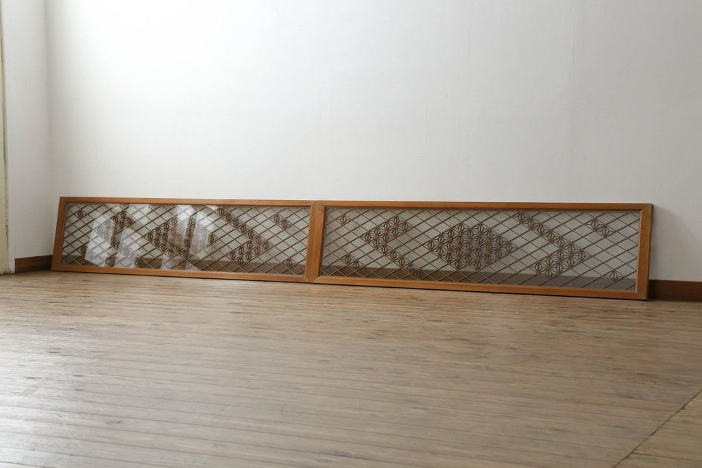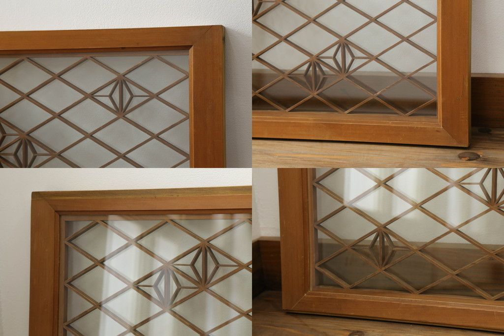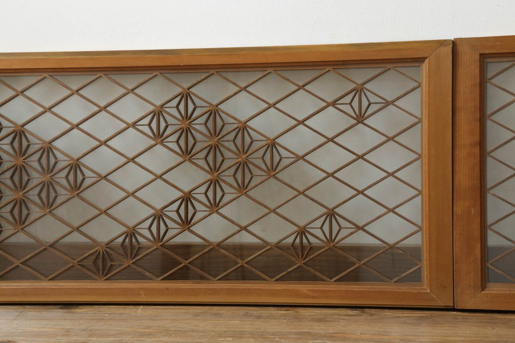 ドア・建具> 2枚・3枚セット > 組子欄間をリペア&カスタム!設置場所に合わせてリサイズし、組子の両面にガラスを取り付け。枠はクリアワックス仕上げ。(明り取り、明かり取り、建具)