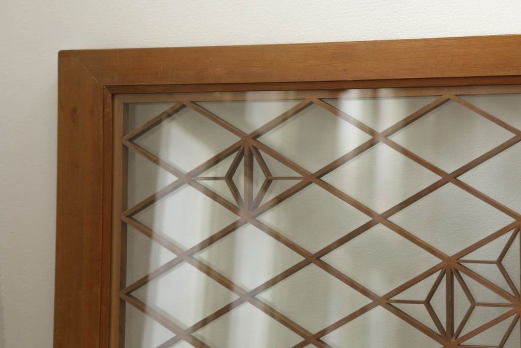 ドア・建具> 組子建具 > 組子欄間をリペア&カスタム!設置場所に合わせてリサイズし、組子の両面にガラスを取り付け。枠はクリアワックス仕上げ。(明り取り、明かり取り、建具)