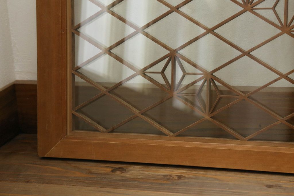 ドア・建具> 明り取り・欄間 > 組子欄間をリペア&カスタム!設置場所に合わせてリサイズし、組子の両面にガラスを取り付け。枠はクリアワックス仕上げ。(明り取り、明かり取り、建具)