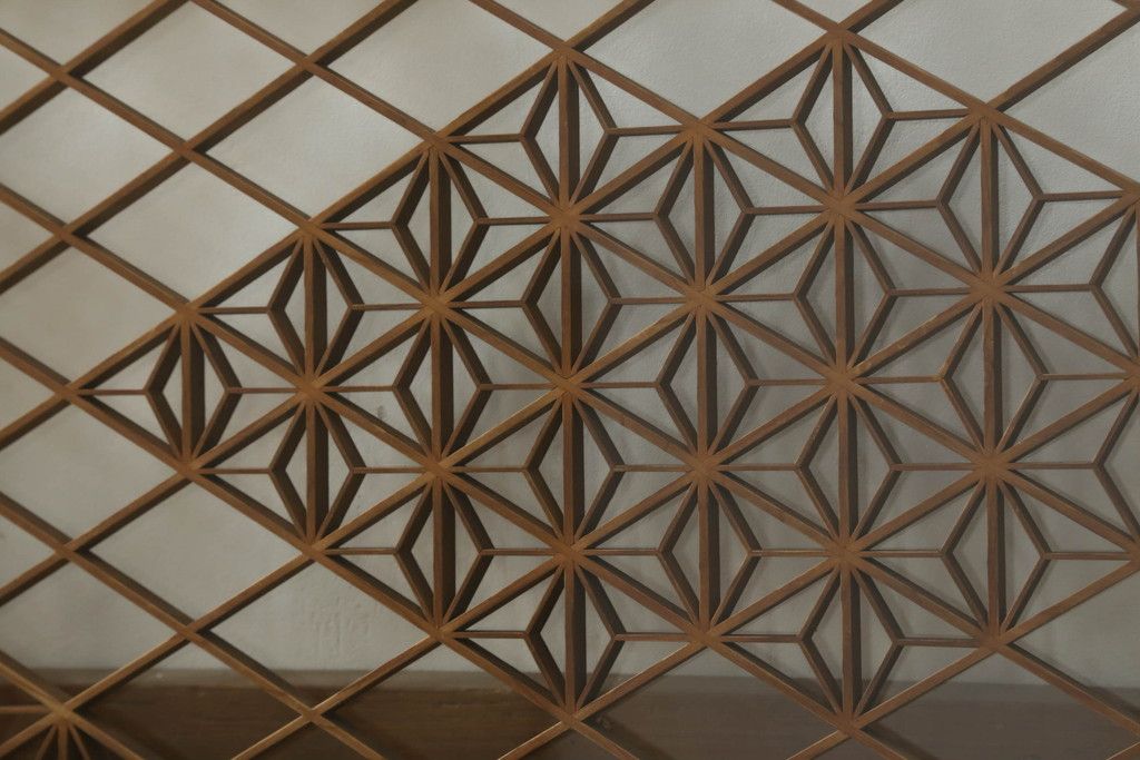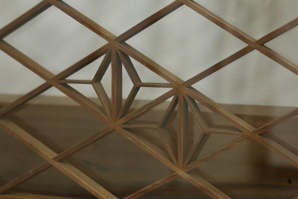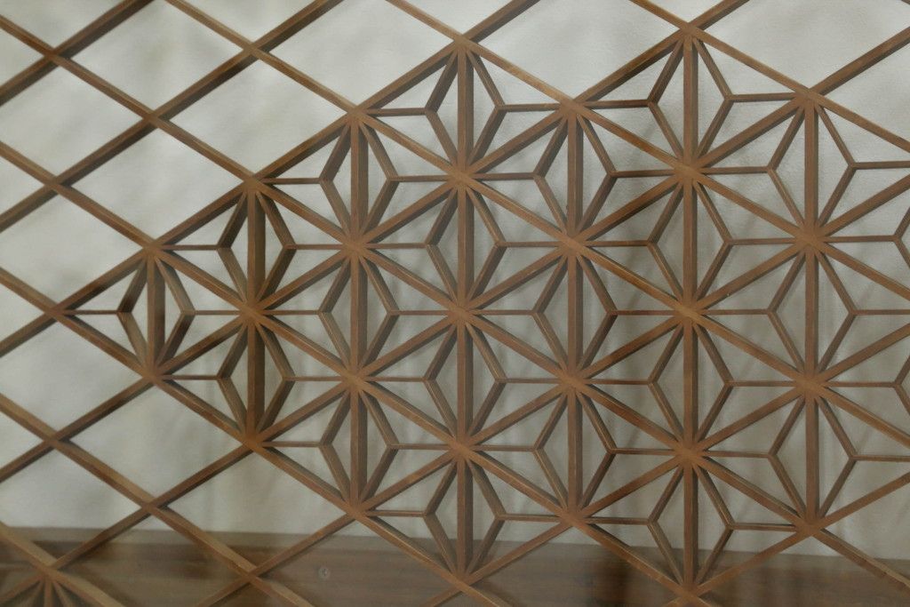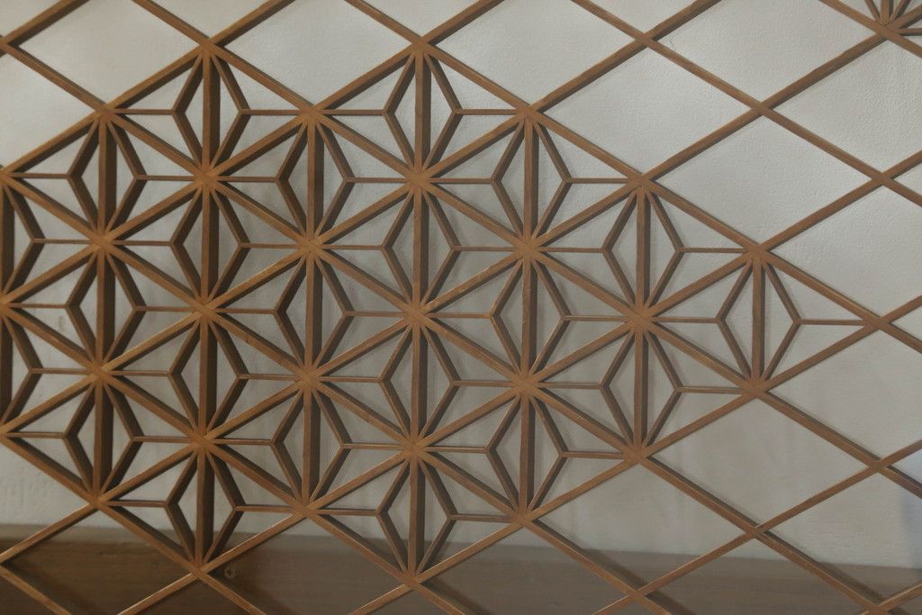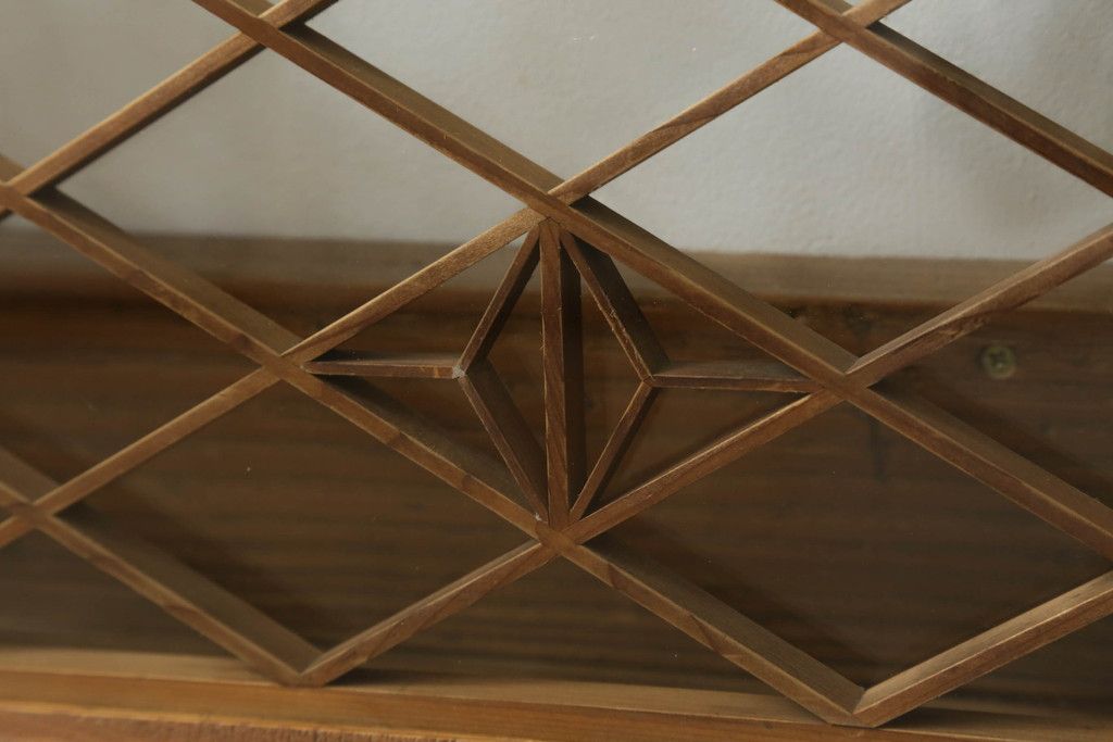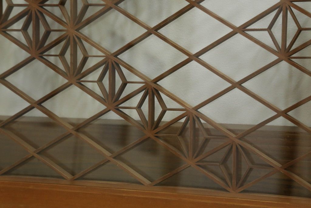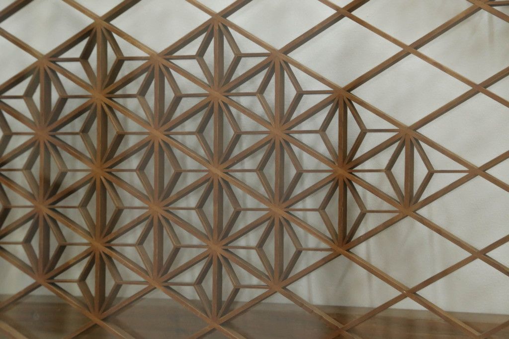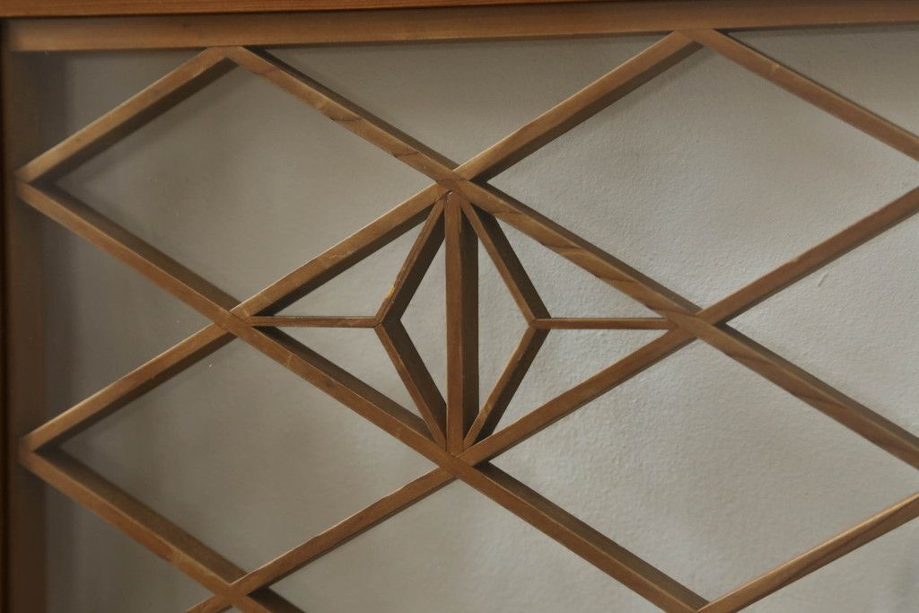 セミオーダー家具実績 > 組子欄間をリペア&カスタム!設置場所に合わせてリサイズし、組子の両面にガラスを取り付け。枠はクリアワックス仕上げ。(明り取り、明かり取り、建具)