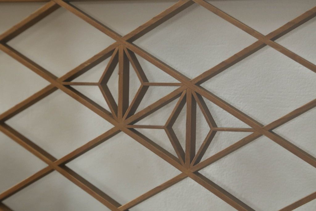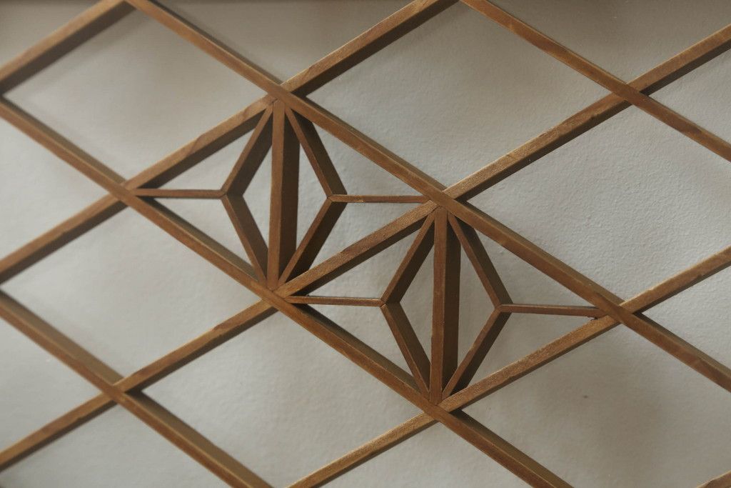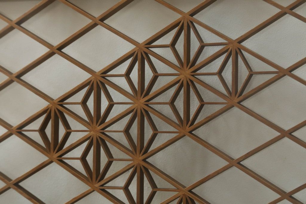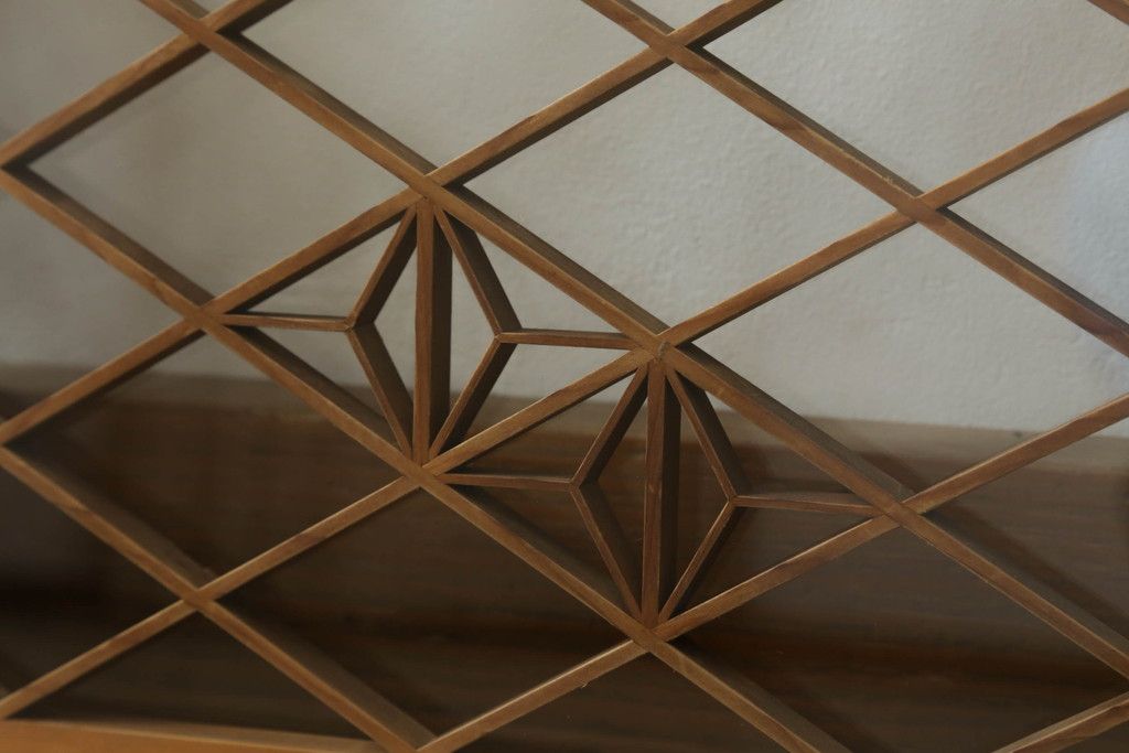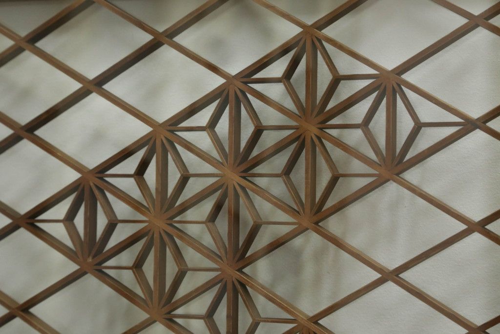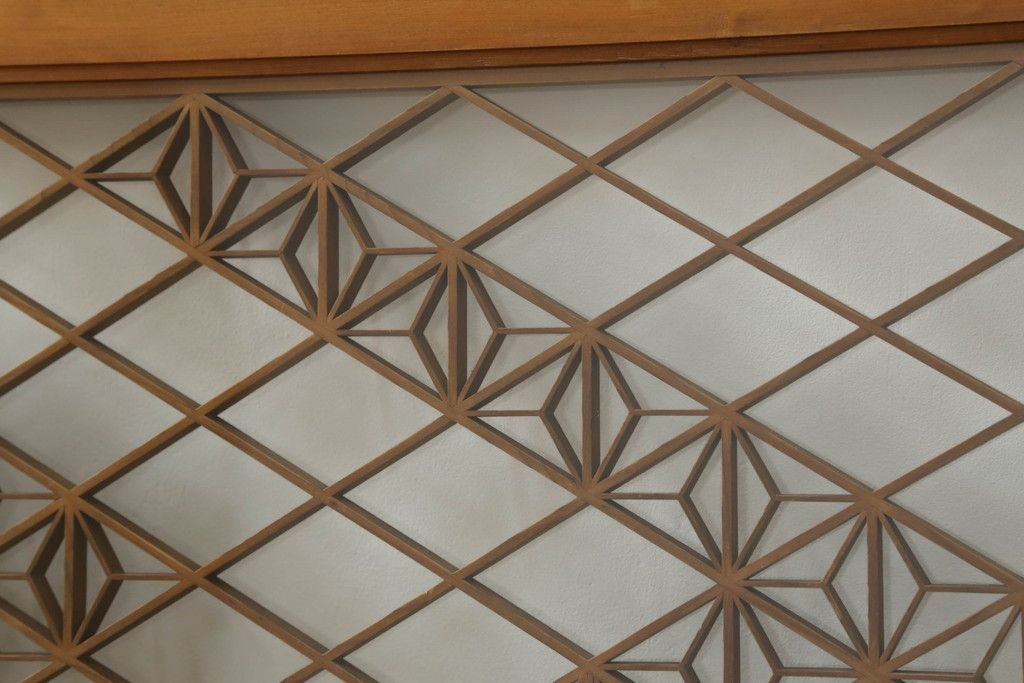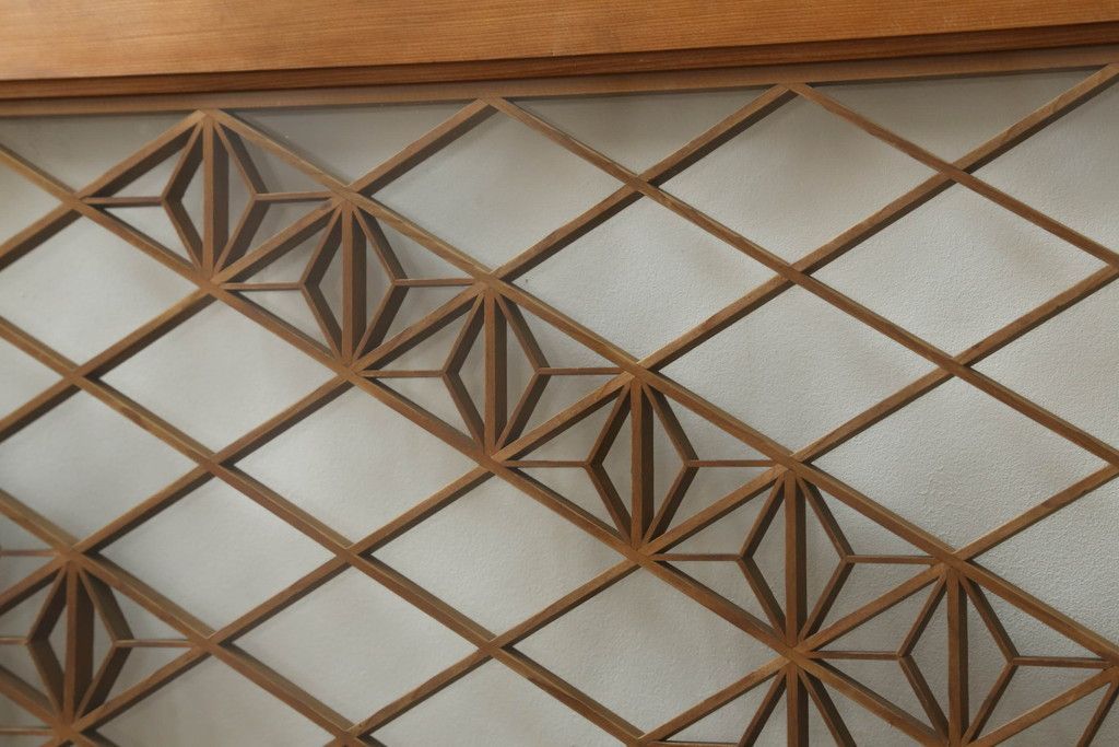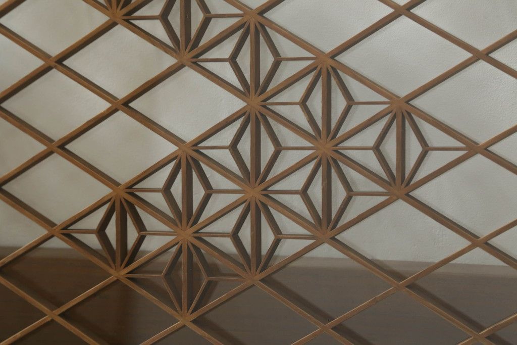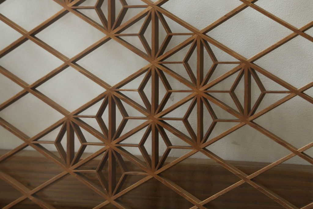セミオーダー家具実績 > 組子欄間をリペア&カスタム!設置場所に合わせてリサイズし、組子の両面にガラスを取り付け。枠はクリアワックス仕上げ。(明り取り、明かり取り、建具)