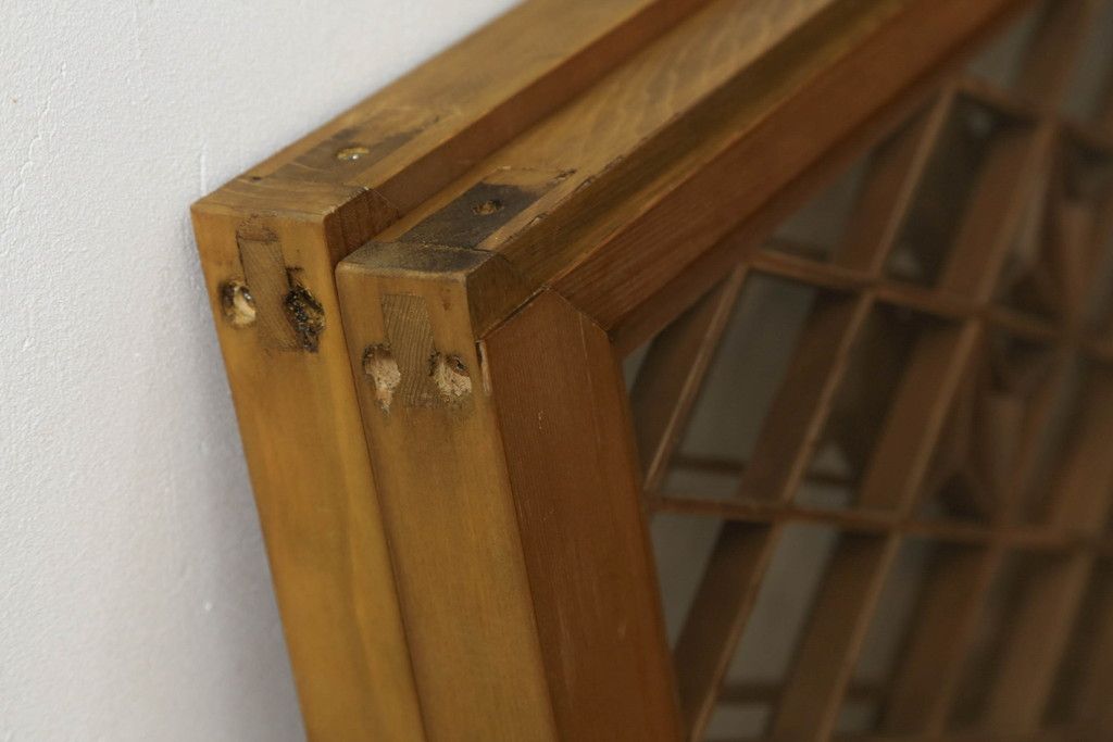 組子欄間をリペア&カスタム!設置場所に合わせてリサイズし、組子の両面にガラスを取り付け。枠はクリアワックス仕上げ。(明り取り、明かり取り、建具)