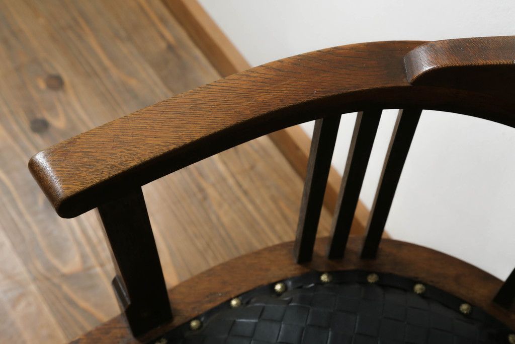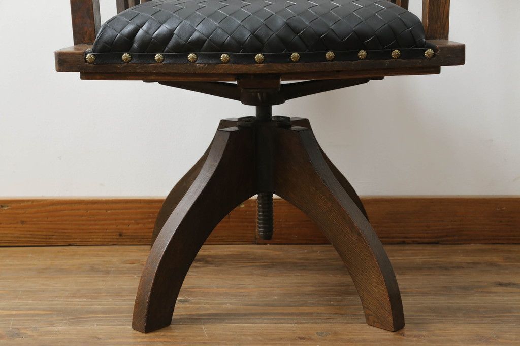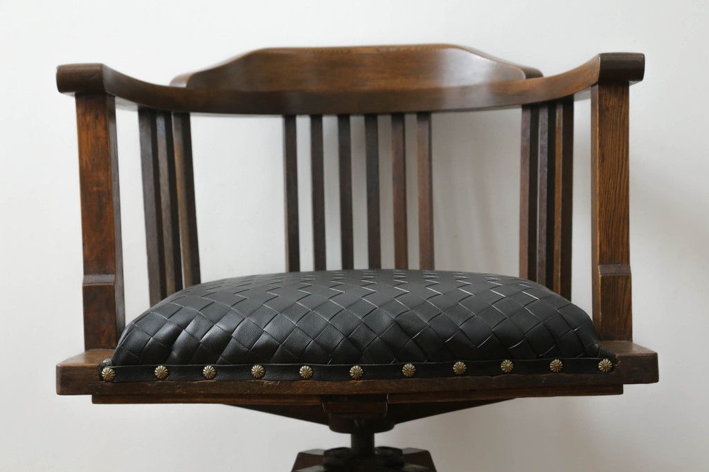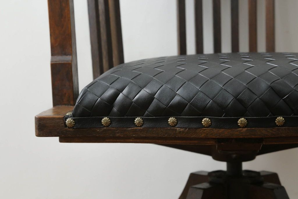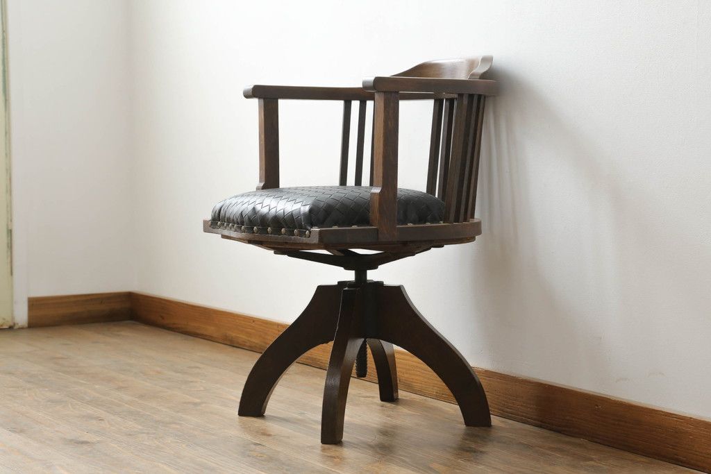 回転チェアをリペア&カスタム!座面を張替え、木部は1トーン落ち着いた色味に着色仕上げ。(回転椅子、イス、ドクターチェア、アームチェア、オフィスチェア、デスクチェア)