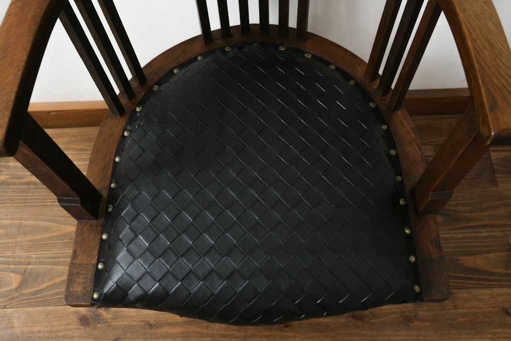 椅子・ベンチ> アームチェア > 回転チェアをリペア&カスタム!座面を張替え、木部は1トーン落ち着いた色味に着色仕上げ。(回転椅子、イス、ドクターチェア、アームチェア、オフィスチェア、デスクチェア)