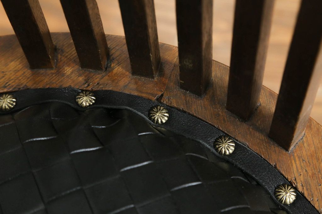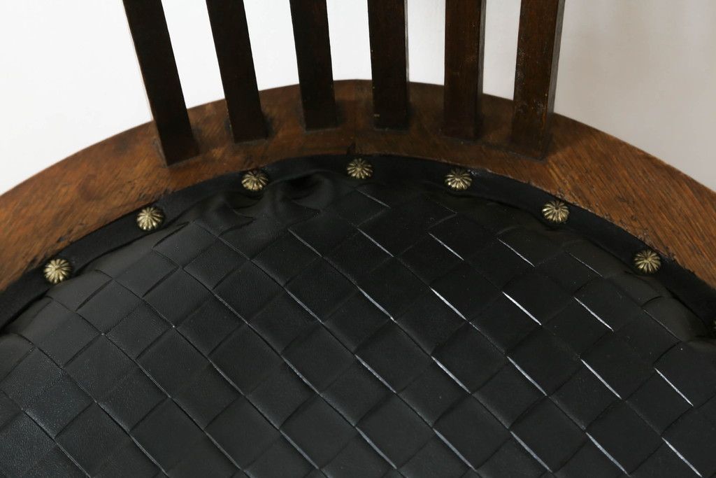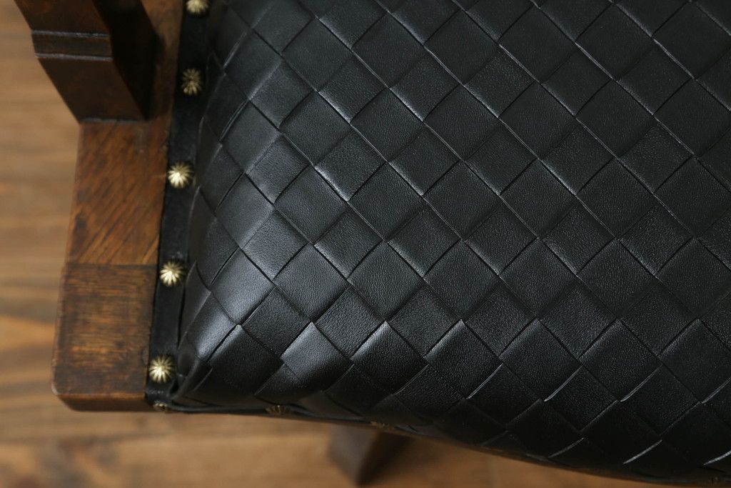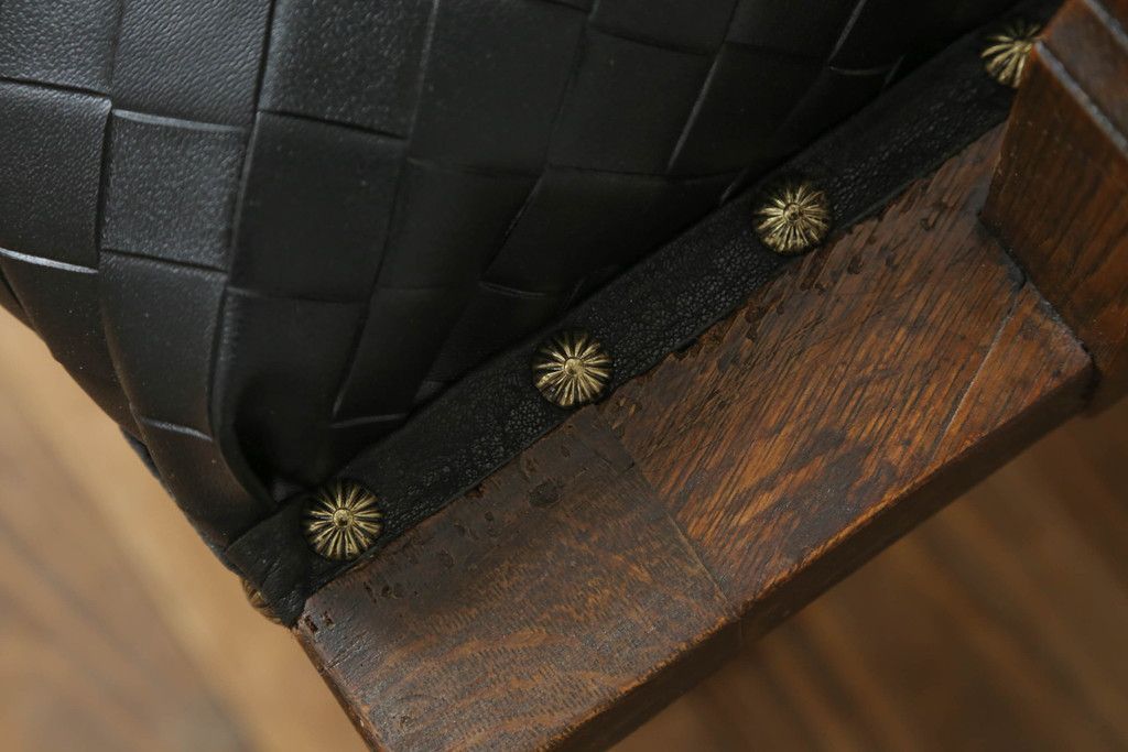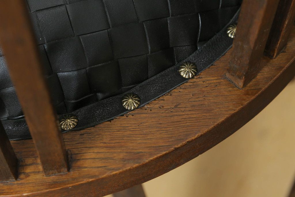 ・座面の生地を留めるため縁に黒の革テープを取り付け