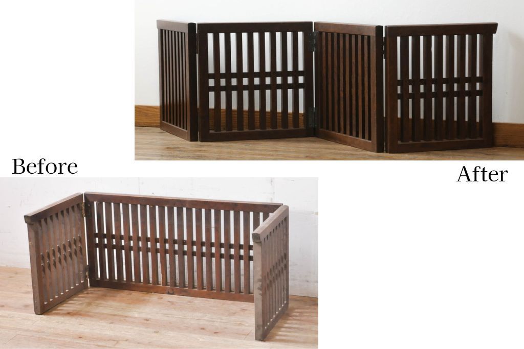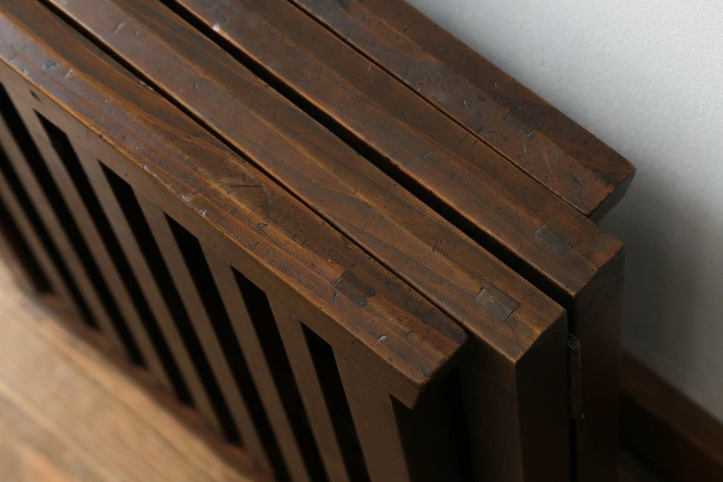 セミオーダー家具実績 > 帳場格子をリペア&カスタム!中央部を切断し、3つ折りから4つ折りへ加工。1トーン落ち着いた色味に着色仕上げ。(パーテーション、衝立て、つい立て)