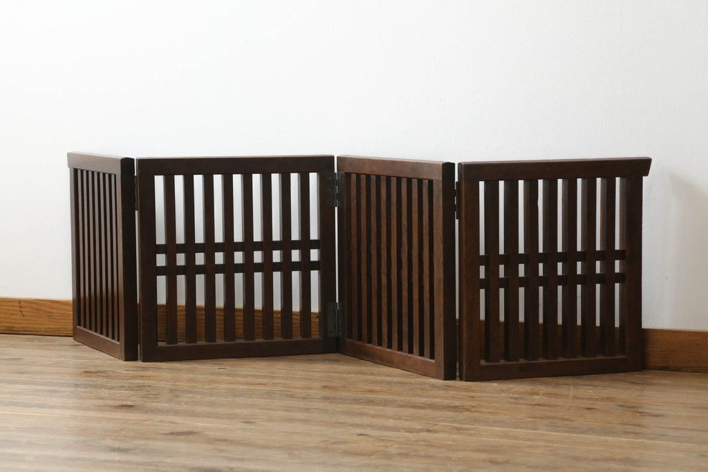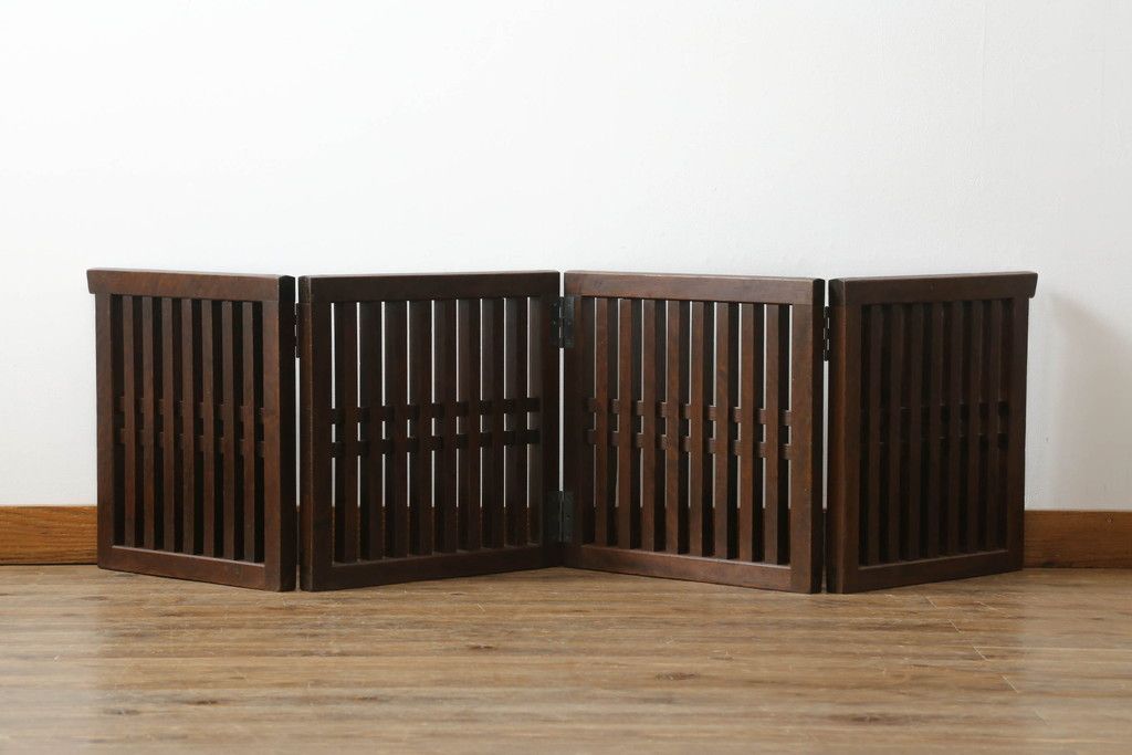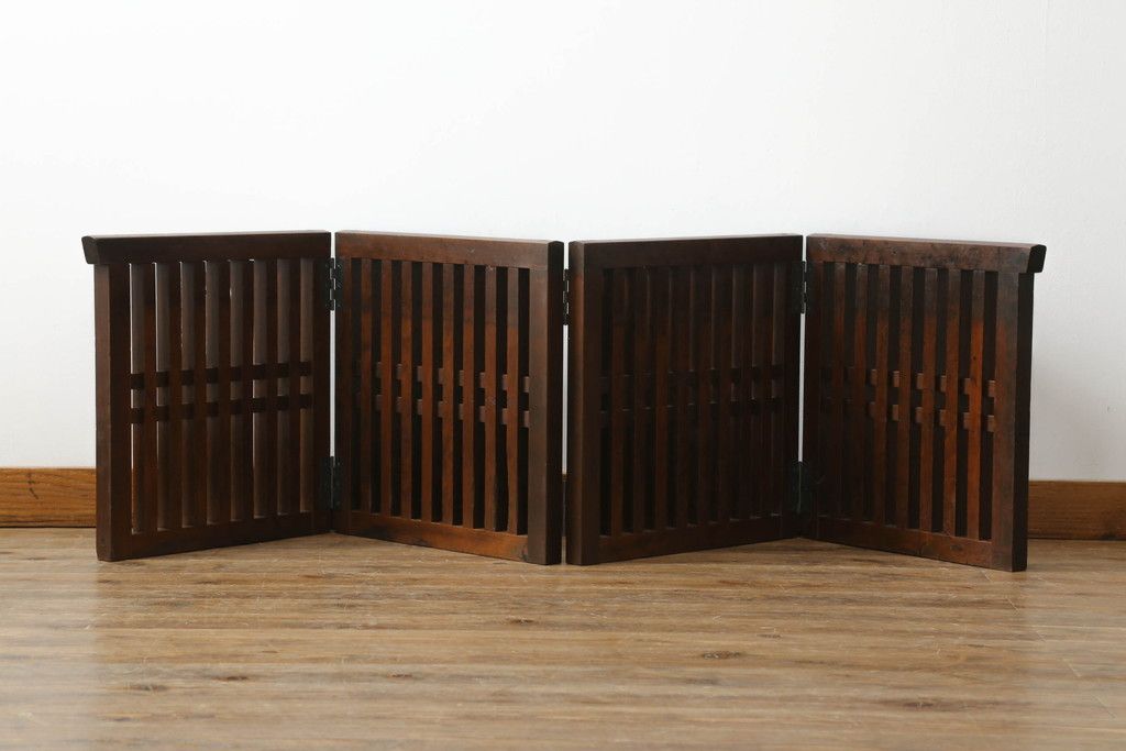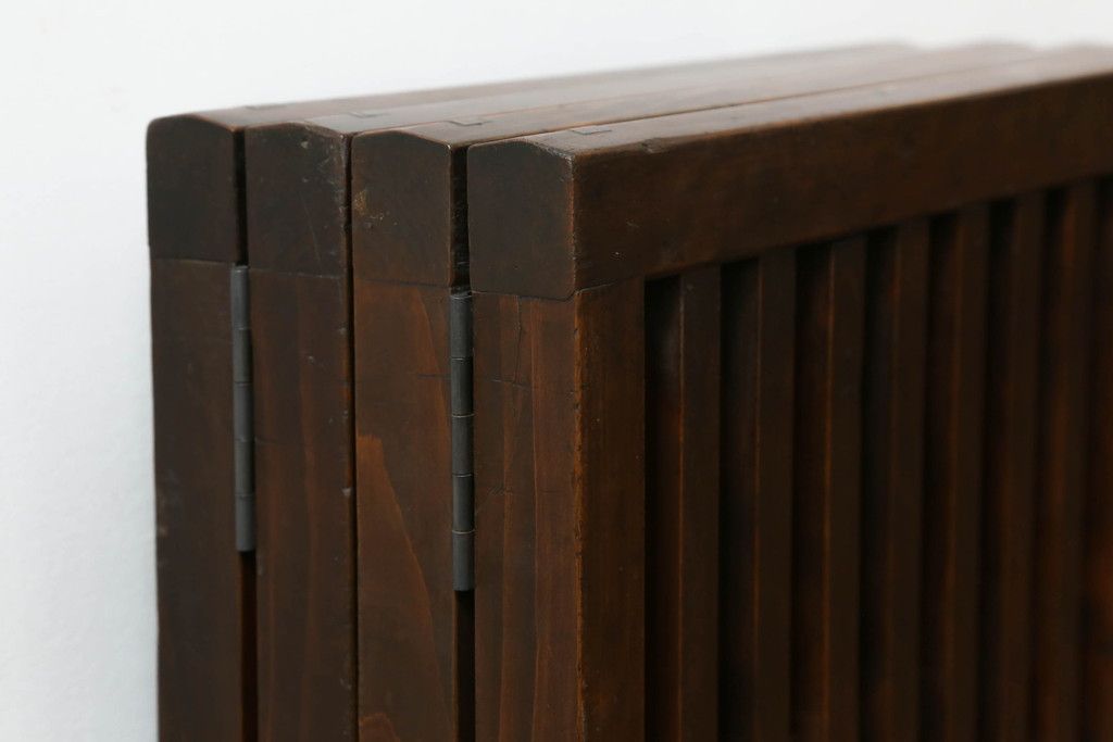 衝立・パーテーション > 帳場格子をリペア&カスタム!中央部を切断し、3つ折りから4つ折りへ加工。1トーン落ち着いた色味に着色仕上げ。(パーテーション、衝立て、つい立て)