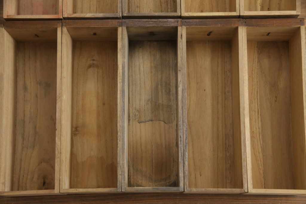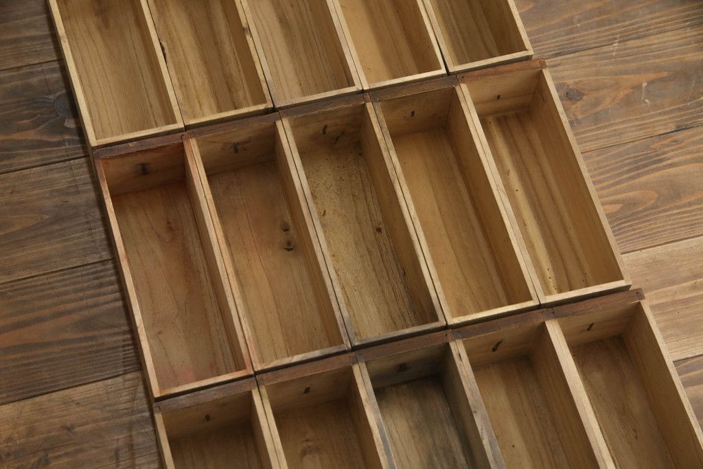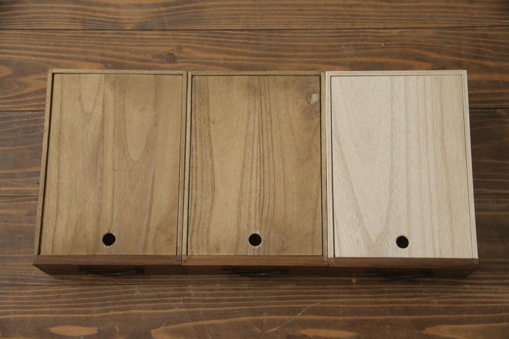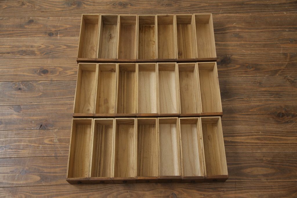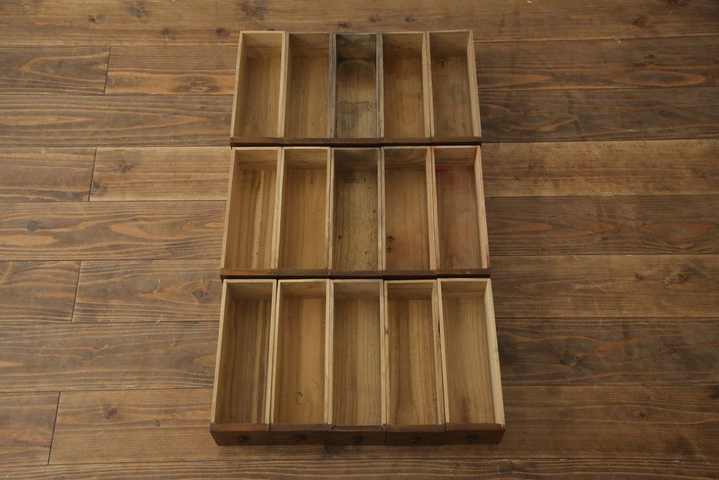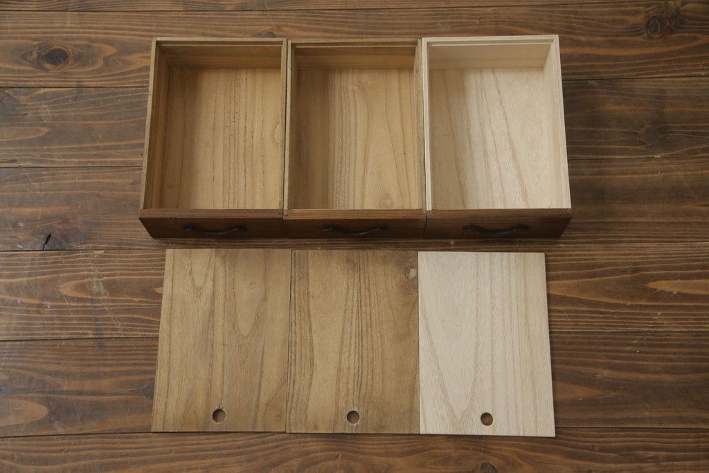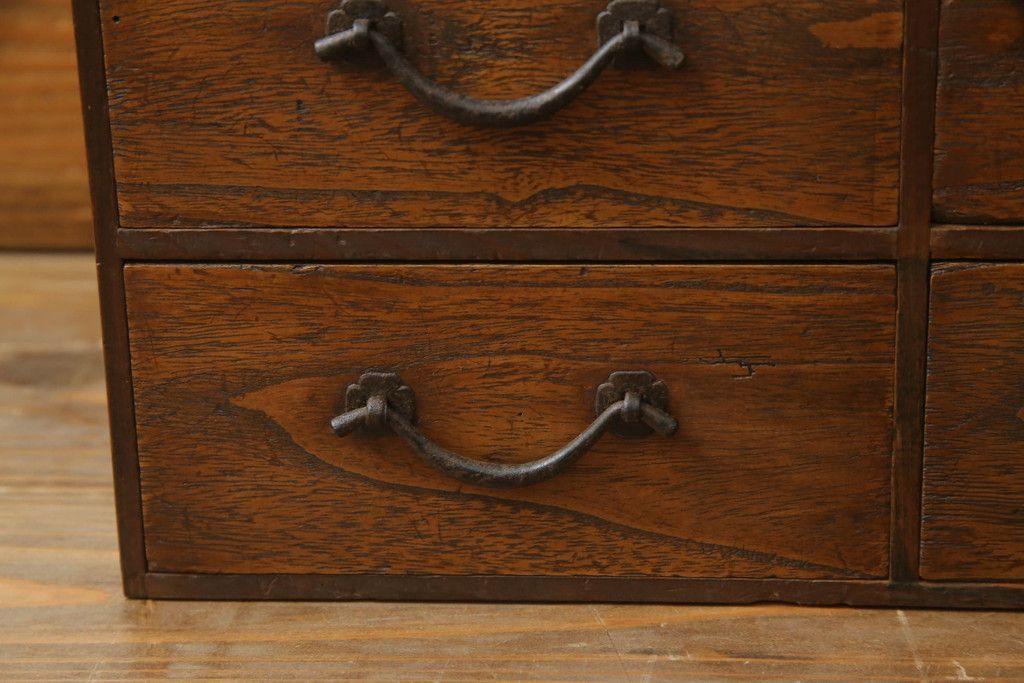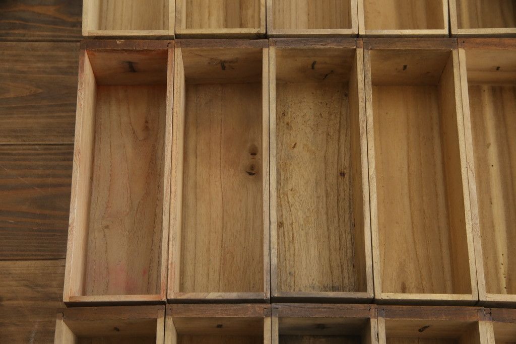 店舗什器 > 薬箪笥をリペア&カスタム!高品質リペアを施し、天板の墨書きは残したままに1トーン落ち着いた色味に着色仕上げ。(薬タンス、小間物箪笥、百目箪笥、引き出し、小物収納、店舗什器、ローチェスト、ドロワーチェスト)