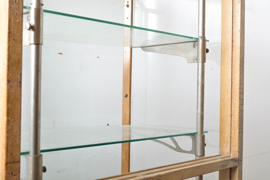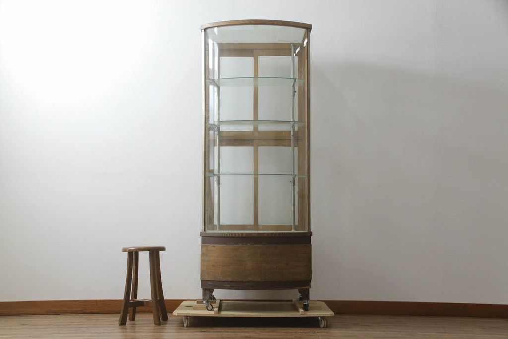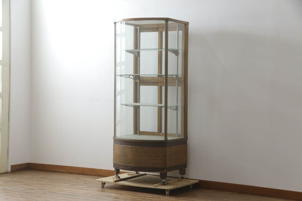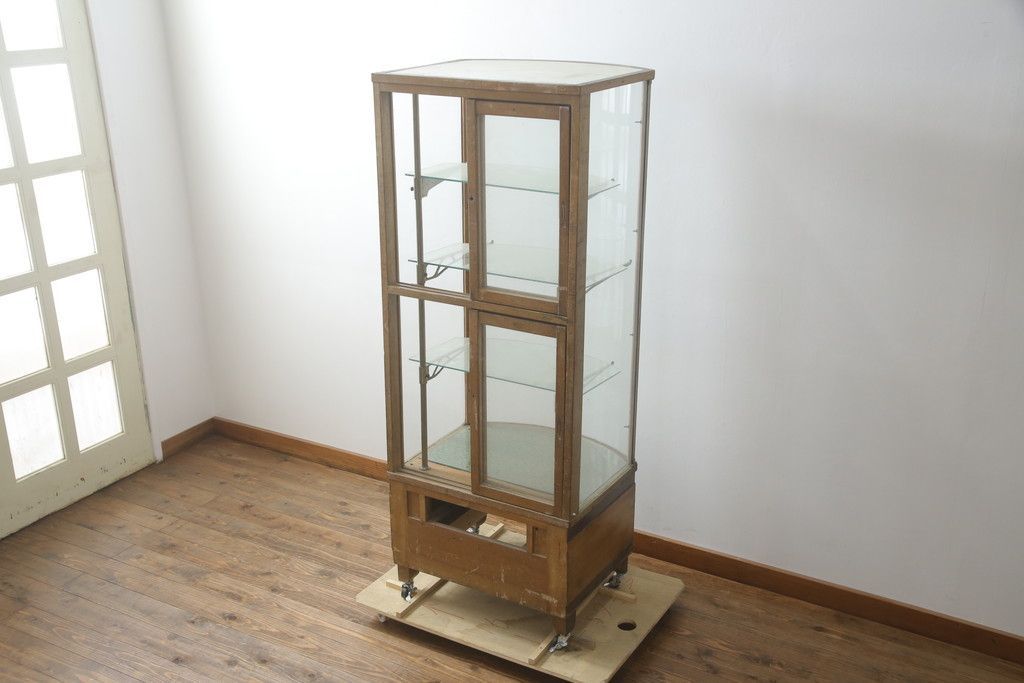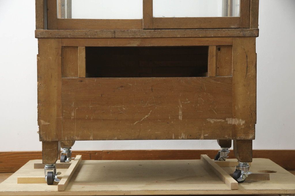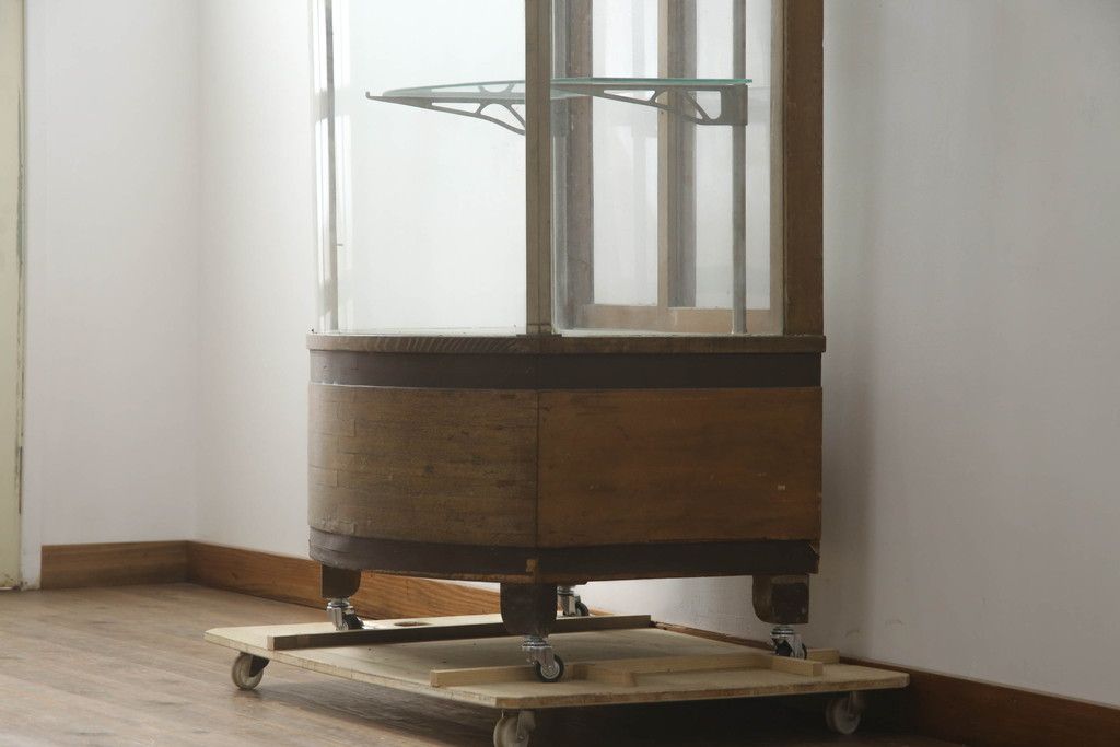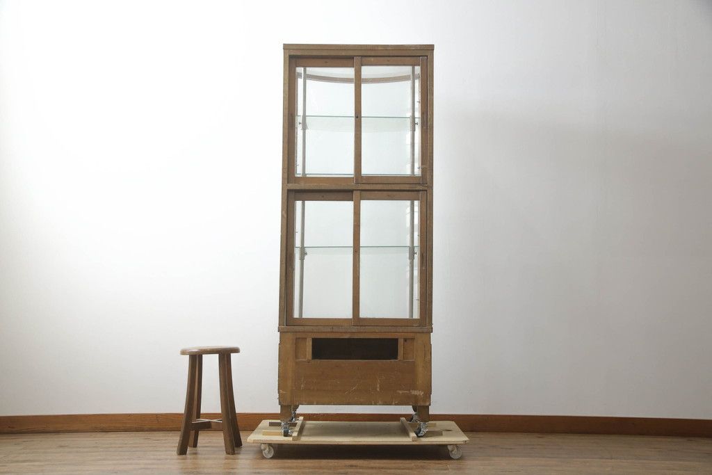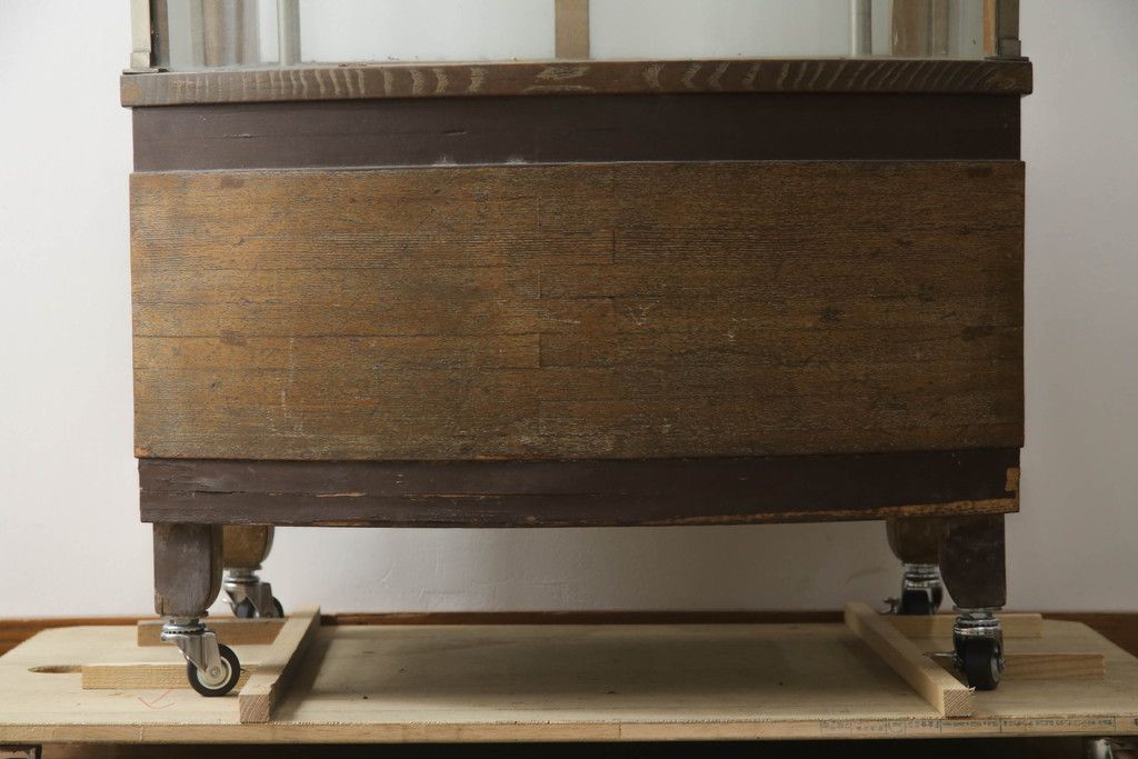 ガラスケース・ショーケース > 昭和中期の縦型ガラスケースをリペア&カスタム!キャスターを取り付け。(ショーケース、飾り棚、陳列棚、収納棚、店舗什器)