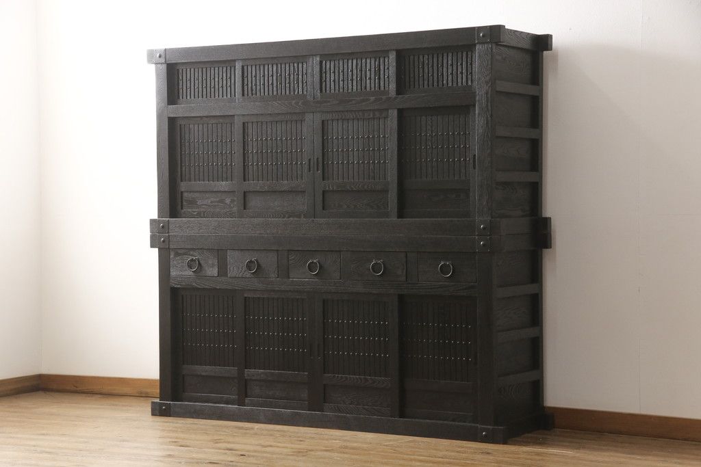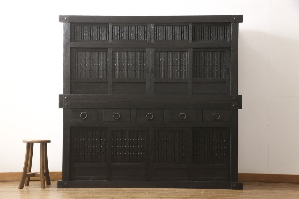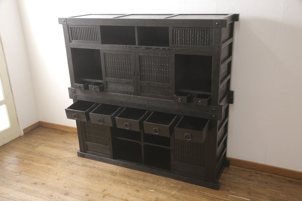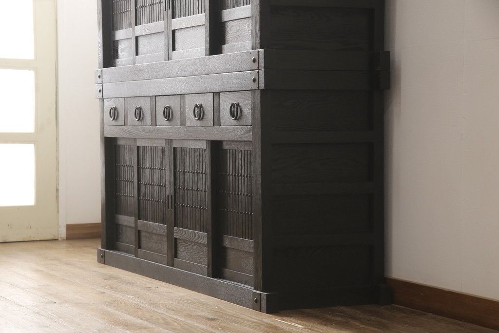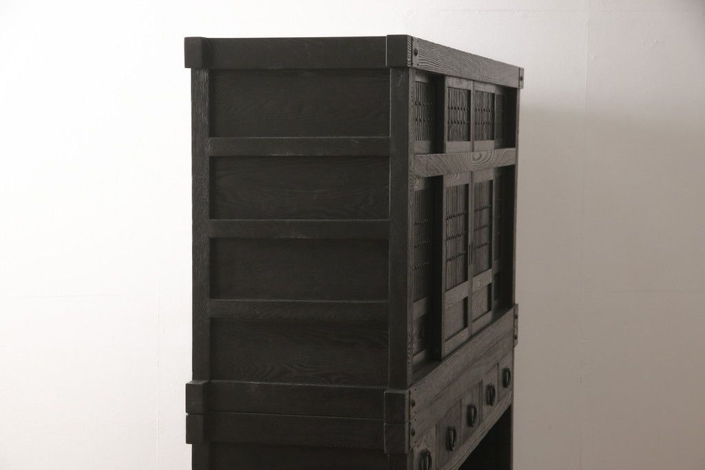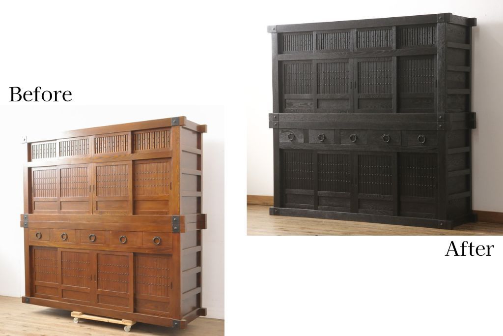 水屋箪笥をリペア&カスタム!全体を剥離し、黒色で再着色。(収納箪笥、重ね箪笥、食器棚、収納棚)