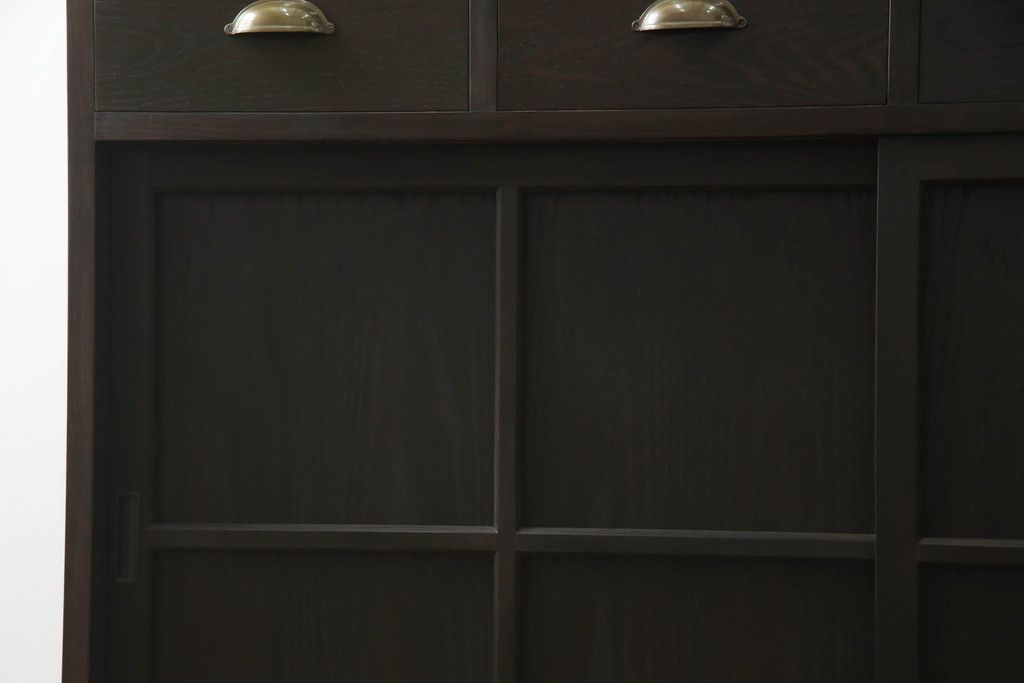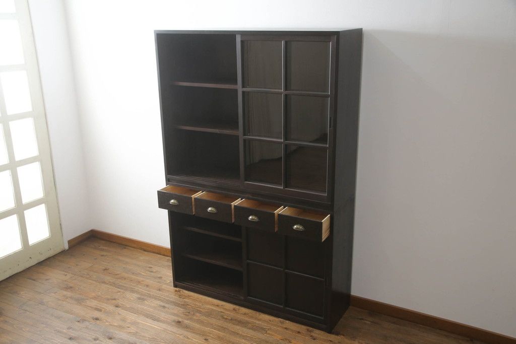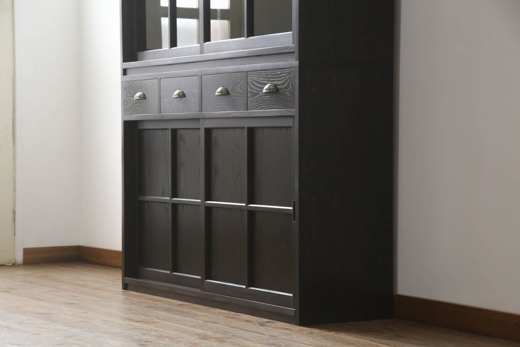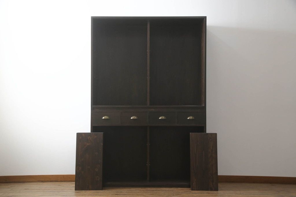 キャビネット・戸棚> 食器棚・カップボード > 重ね戸棚を新規製作!棚や引き出し位置をご希望に合わせて製作し、色は参考商品に合わせて濃い茶色で着色仕上げ。(食器棚、収納棚、カップボード、キャビネット、飾り棚、引き出し)