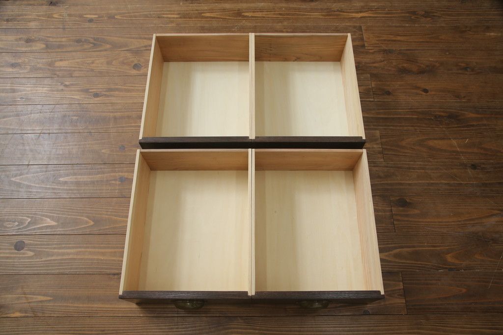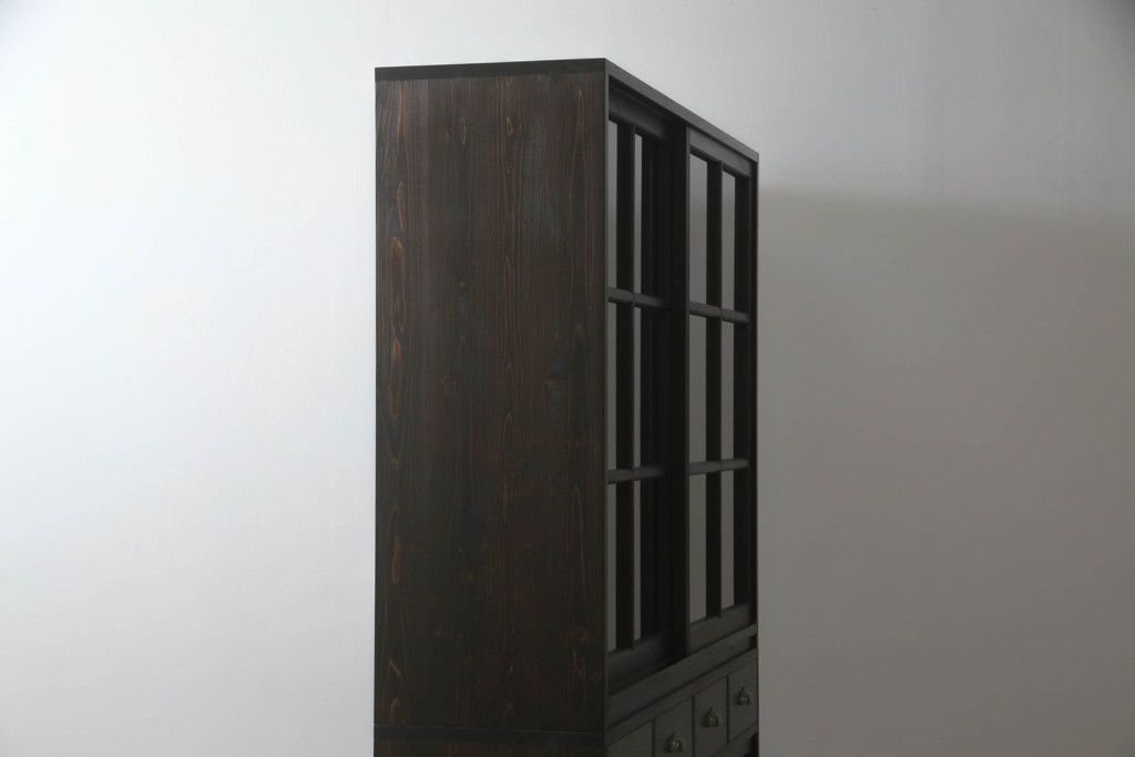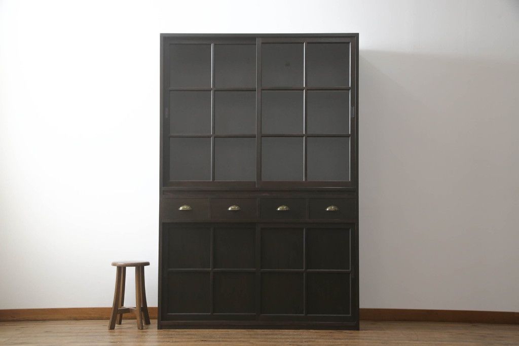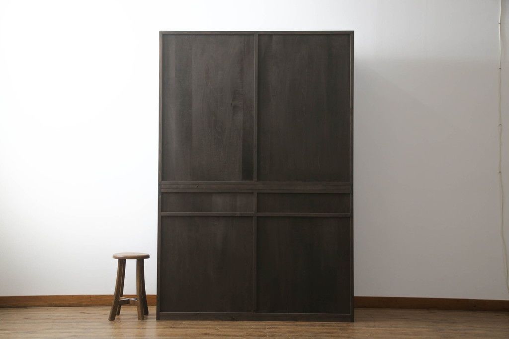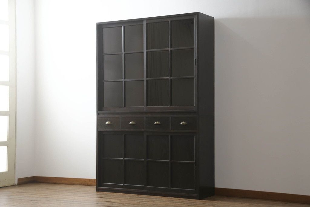 キャビネット・戸棚> 食器棚・カップボード > 重ね戸棚を新規製作!棚や引き出し位置をご希望に合わせて製作し、色は参考商品に合わせて濃い茶色で着色仕上げ。(食器棚、収納棚、カップボード、キャビネット、飾り棚、引き出し)
