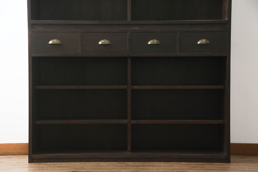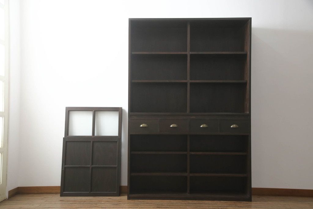 重ね戸棚を新規製作!棚や引き出し位置をご希望に合わせて製作し、色は参考商品に合わせて濃い茶色で着色仕上げ。(食器棚、収納棚、カップボード、キャビネット、飾り棚、引き出し)