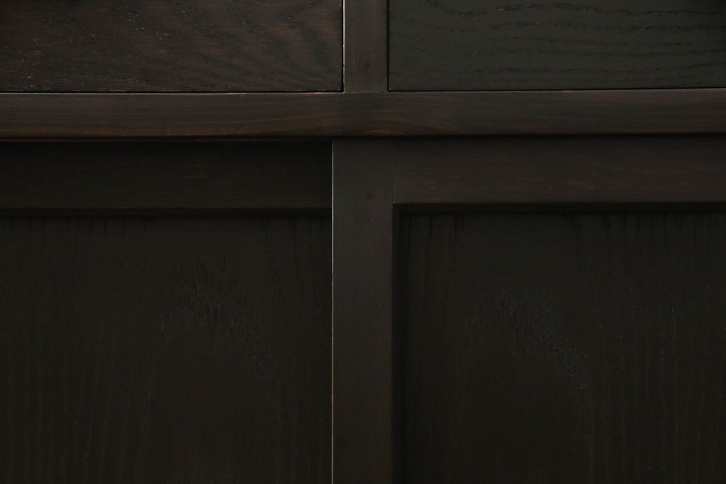 フルオーダー家具実績 > 重ね戸棚を新規製作!棚や引き出し位置をご希望に合わせて製作し、色は参考商品に合わせて濃い茶色で着色仕上げ。(食器棚、収納棚、カップボード、キャビネット、飾り棚、引き出し)